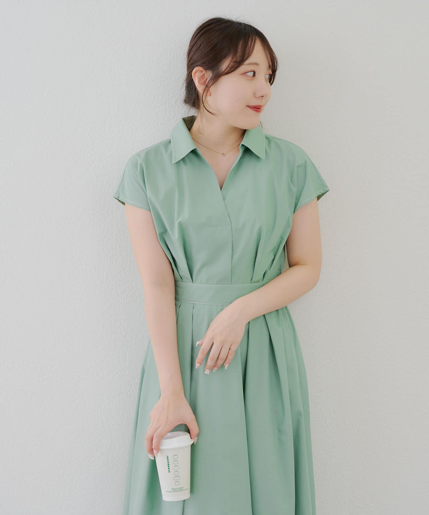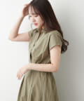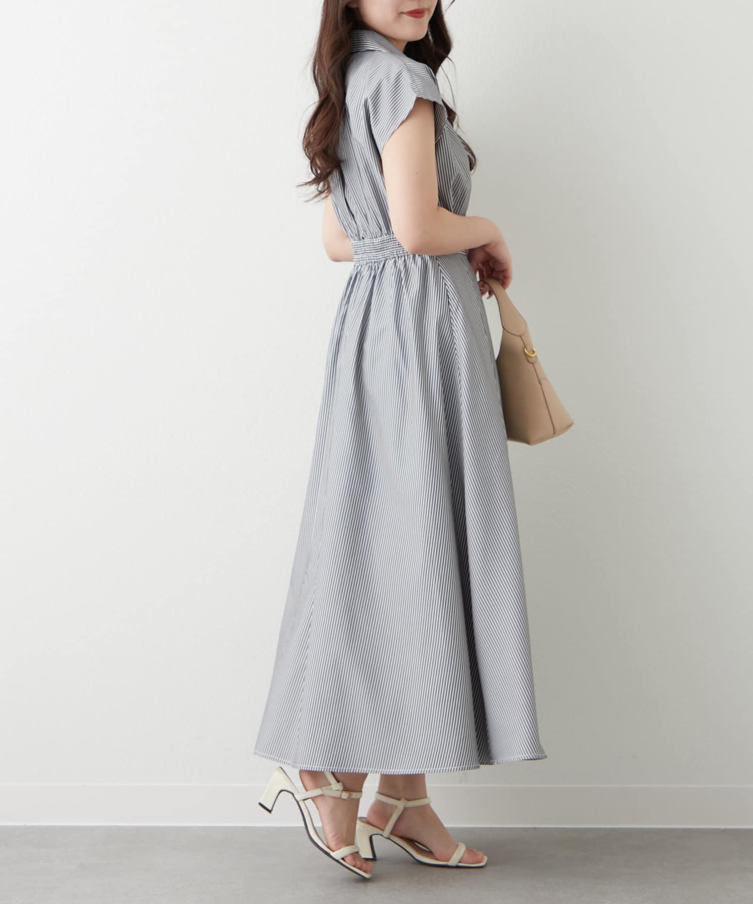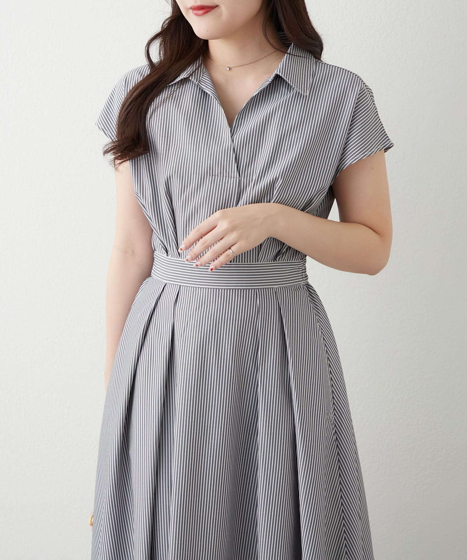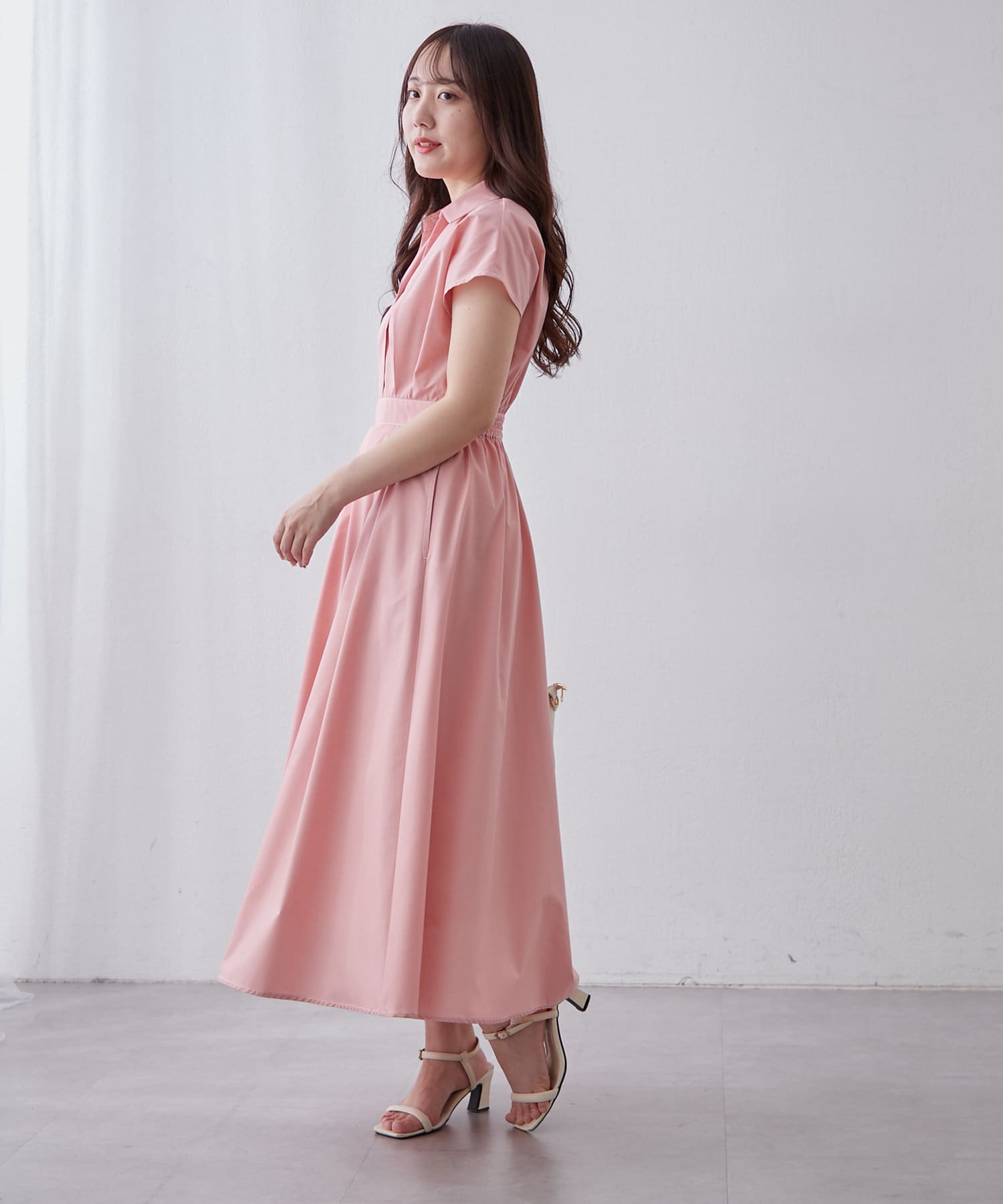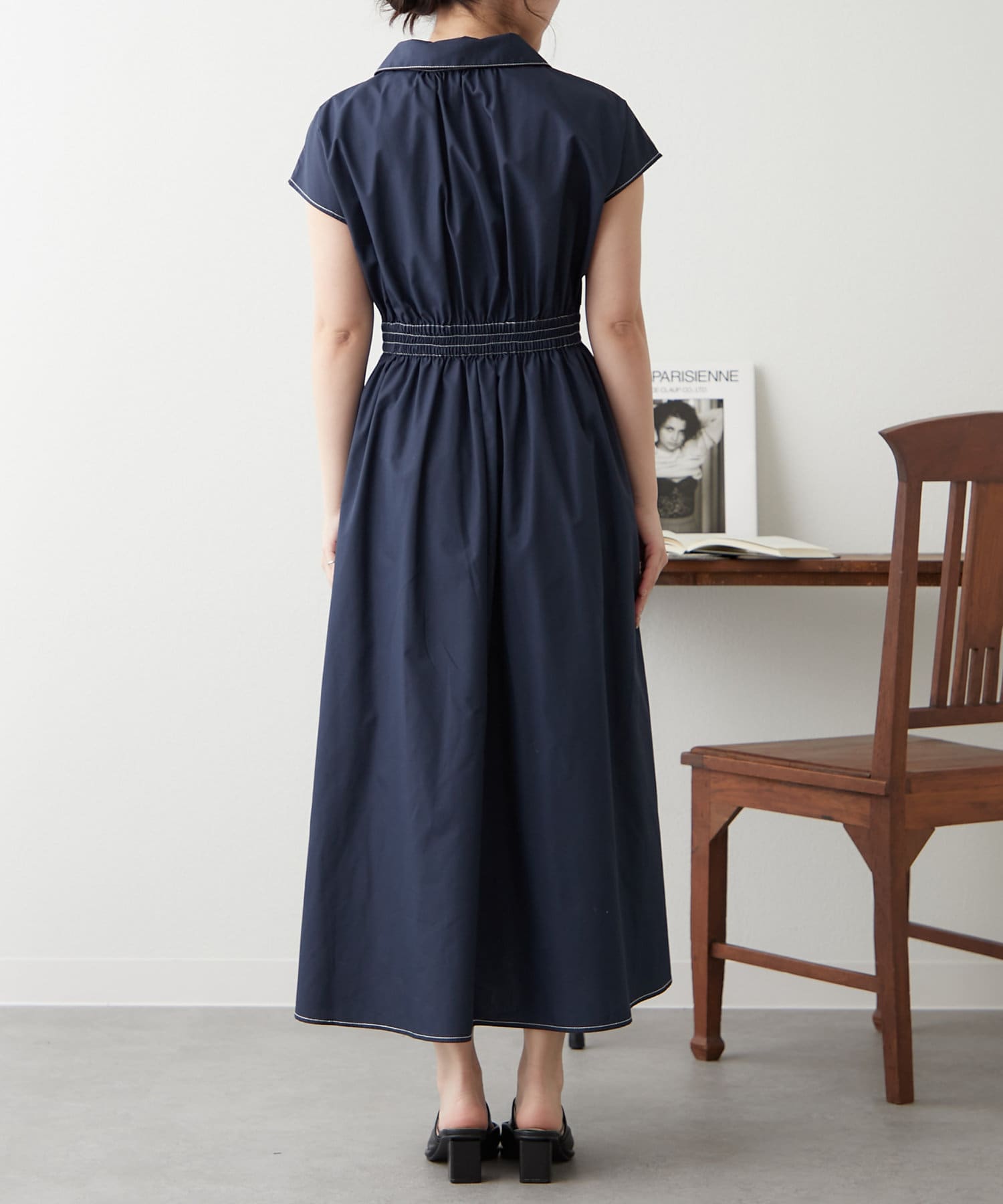 ・スキッパー襟が大人っぽい印象のロング丈ワンピース