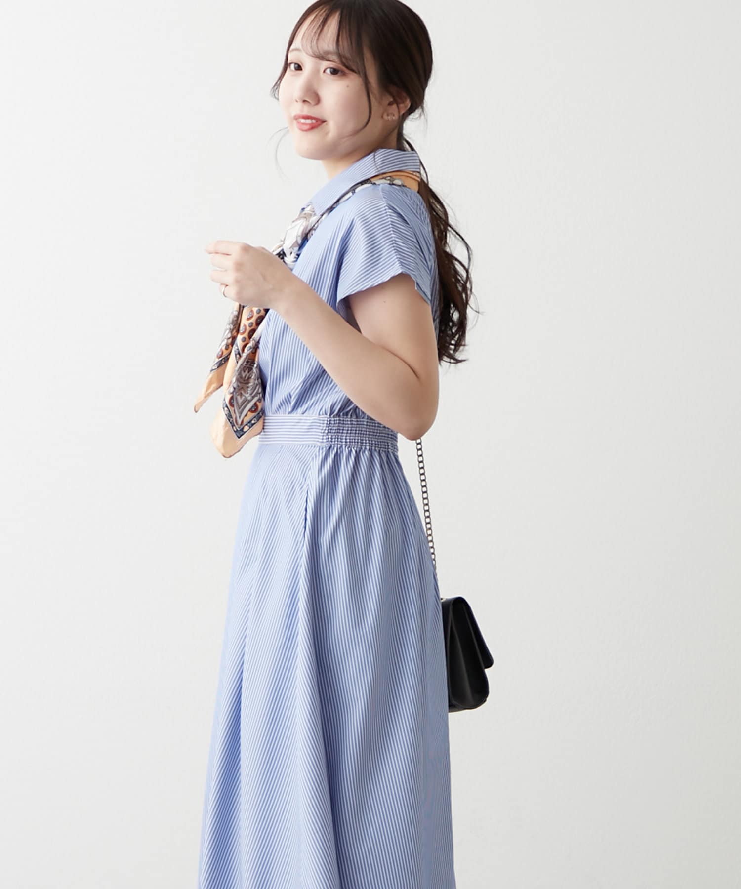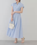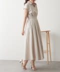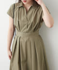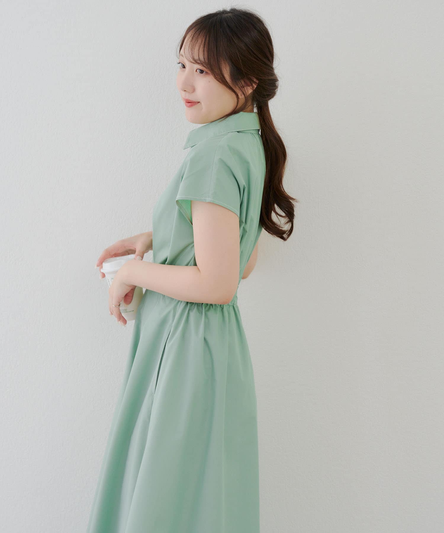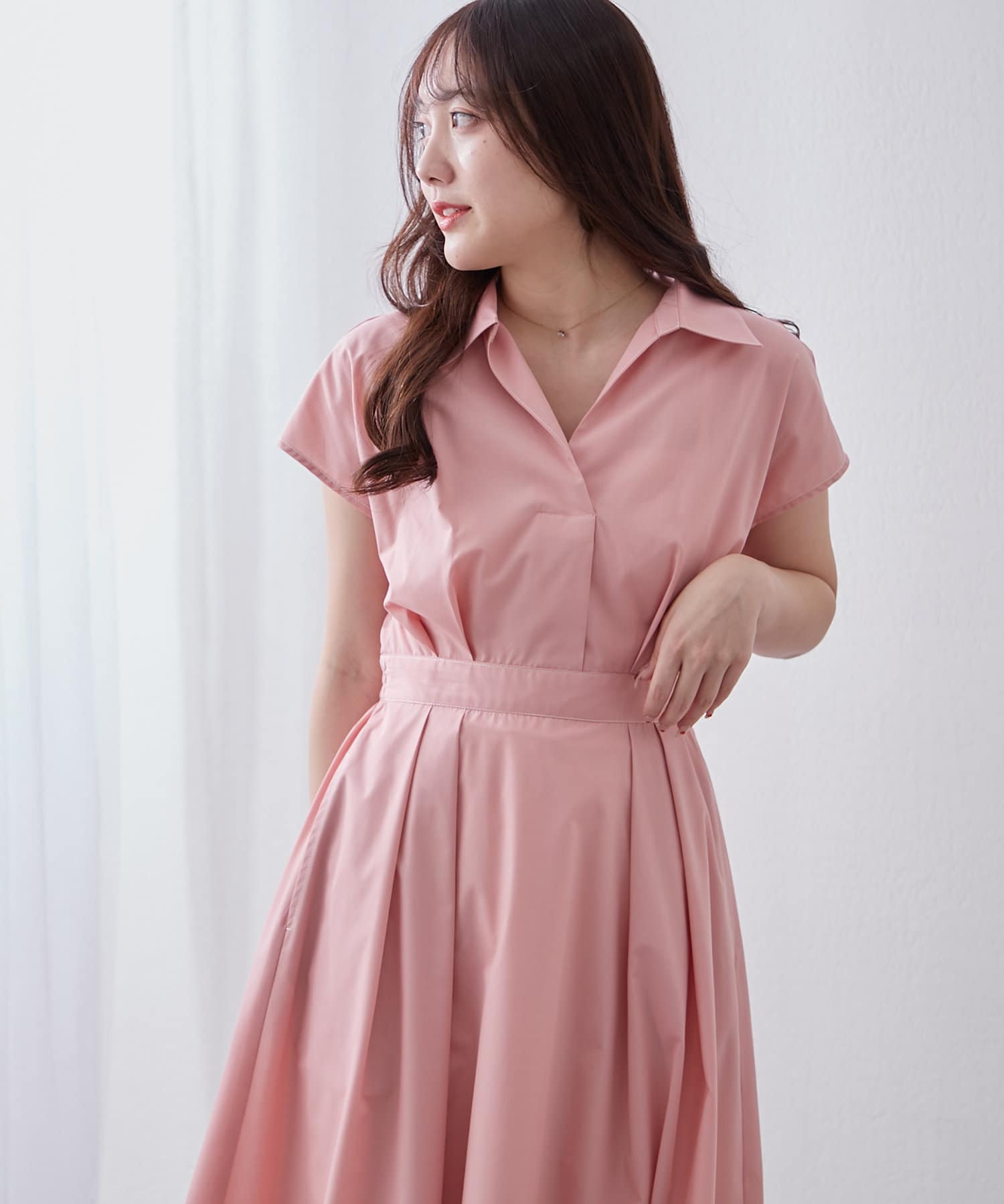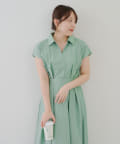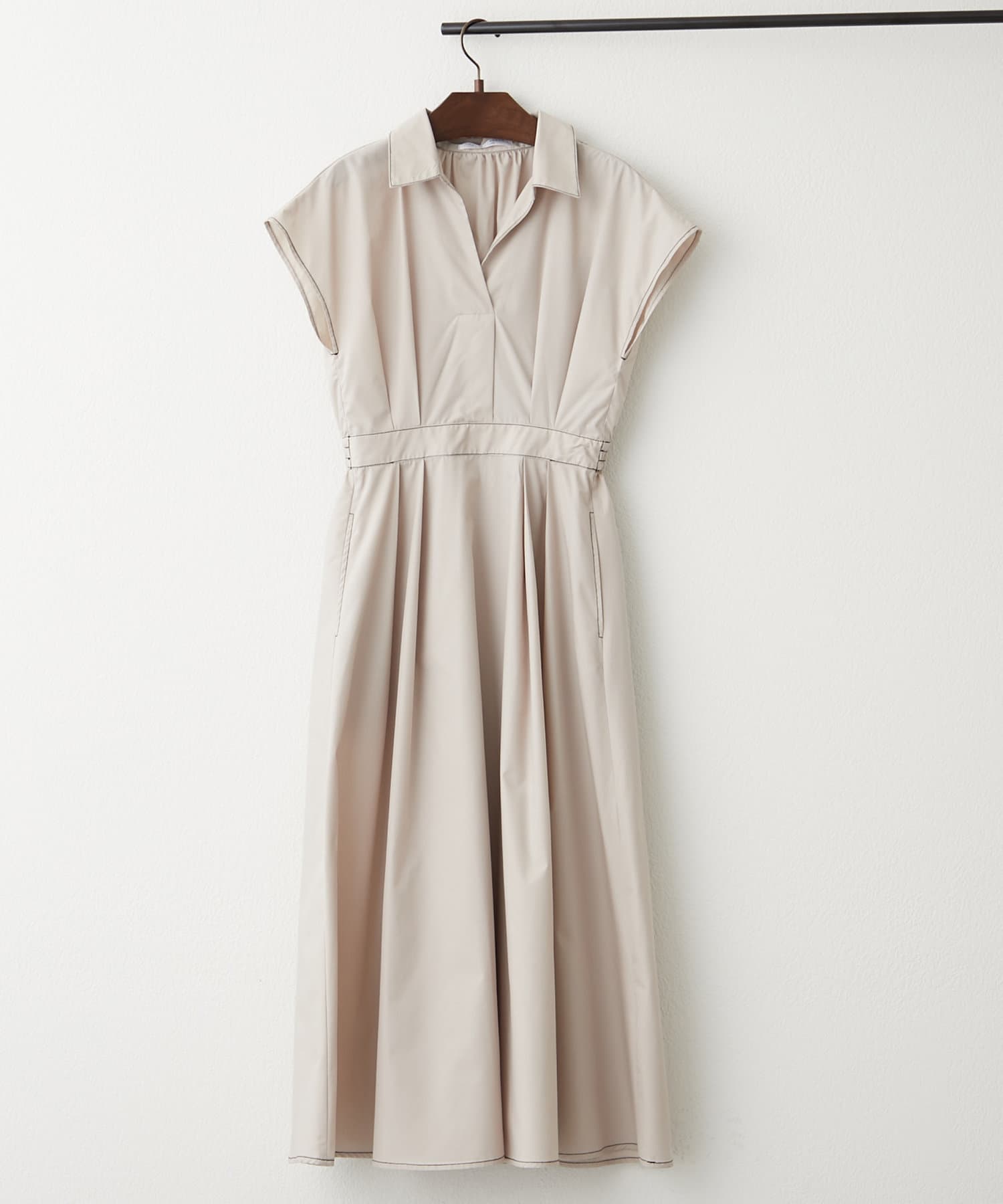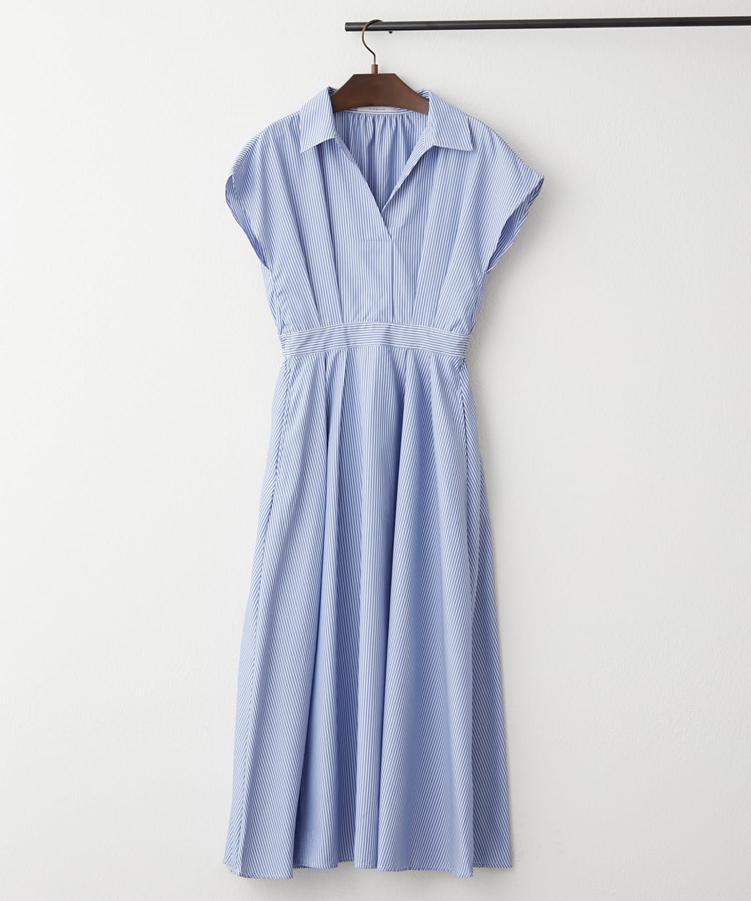 ・スキッパー襟が大人っぽい印象のロング丈ワンピース