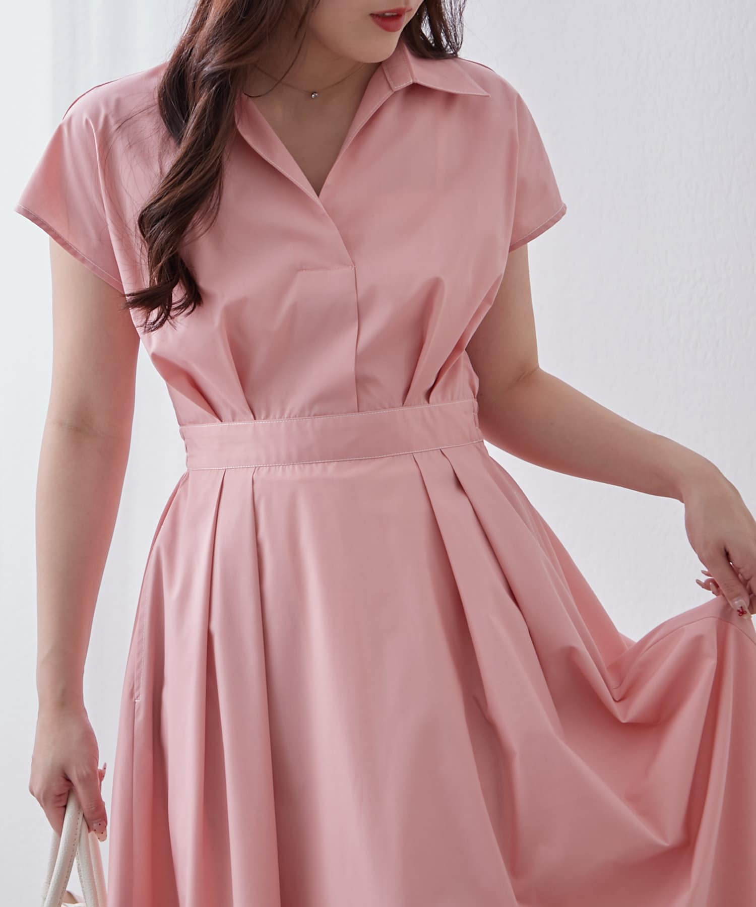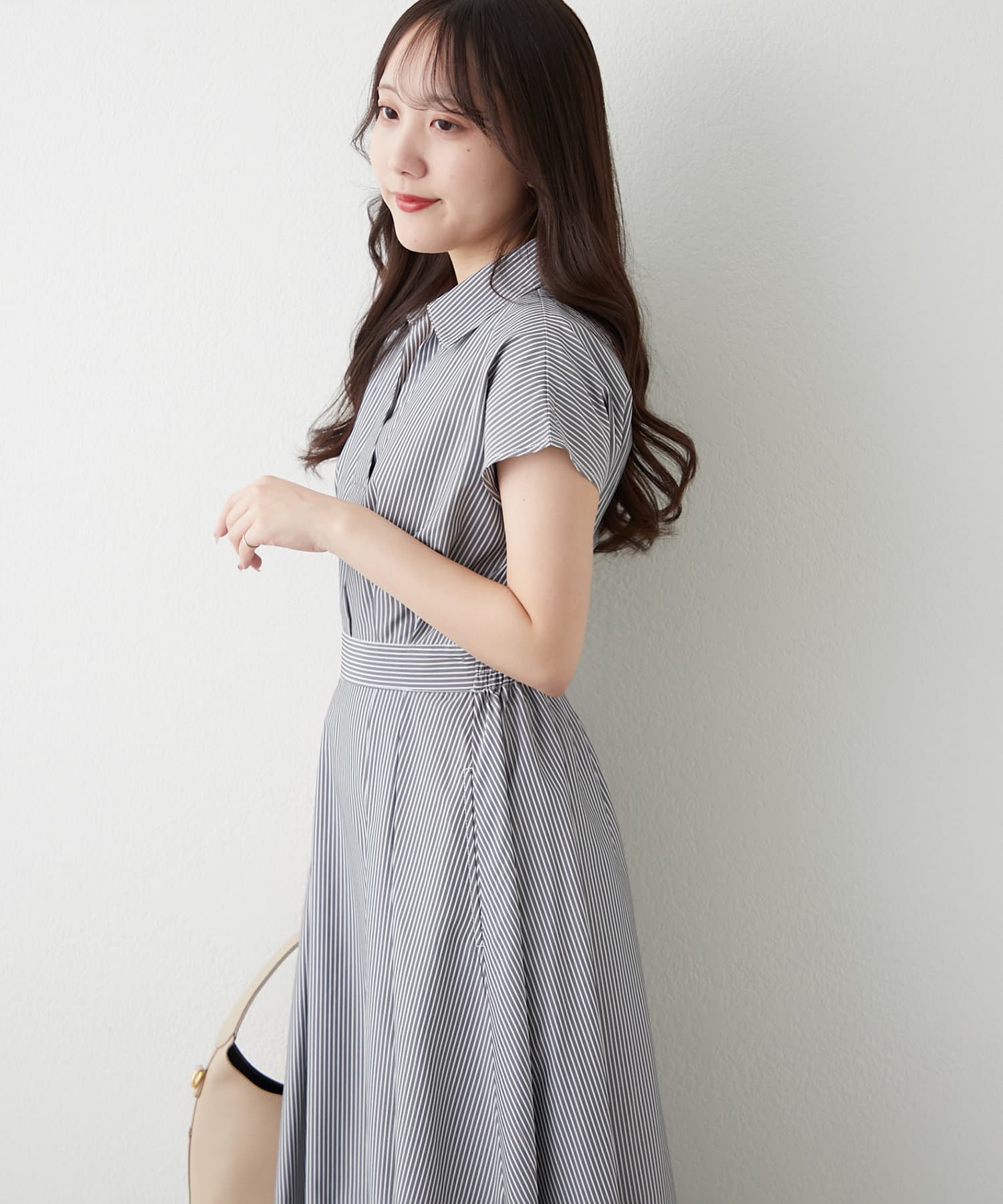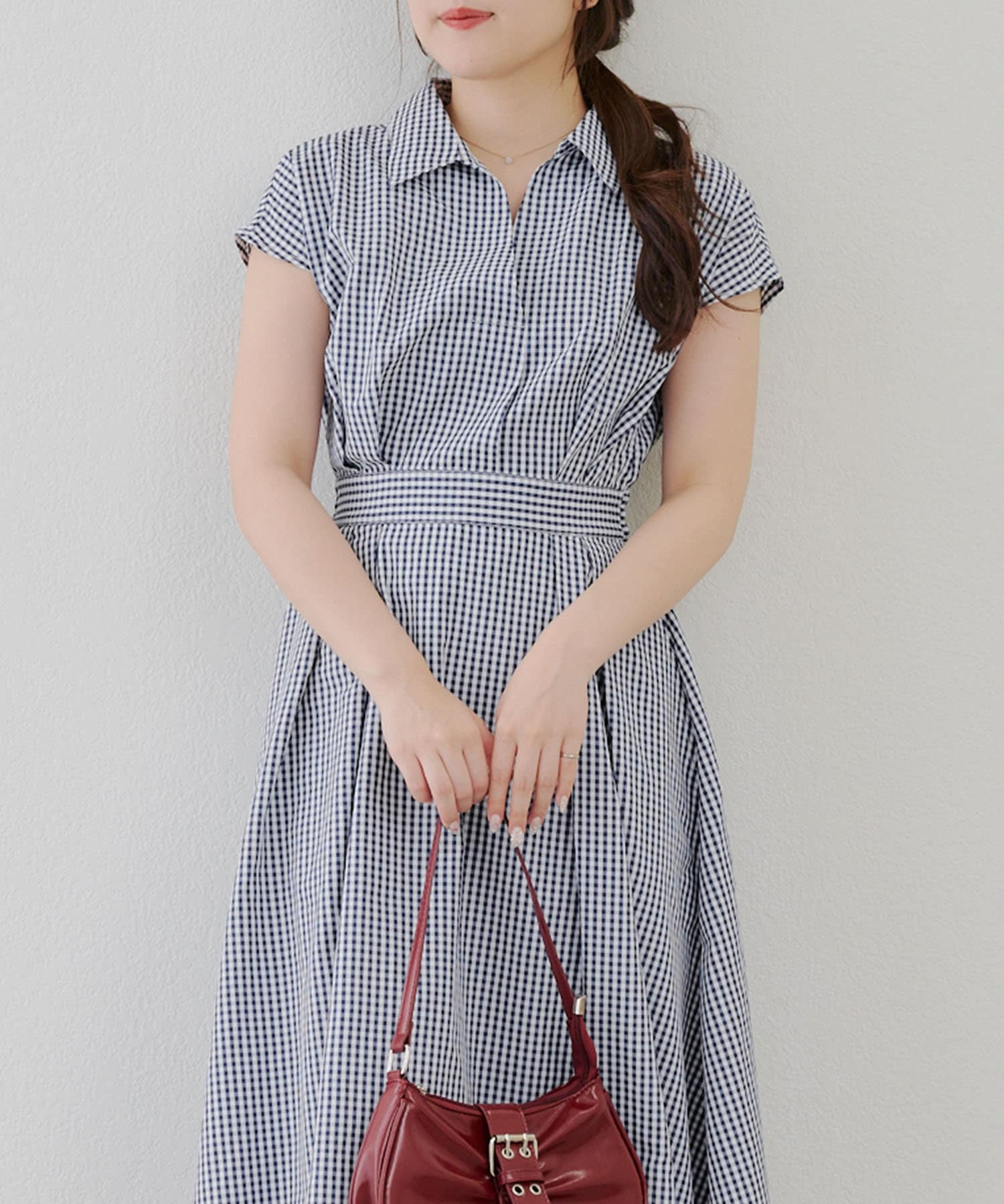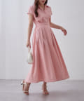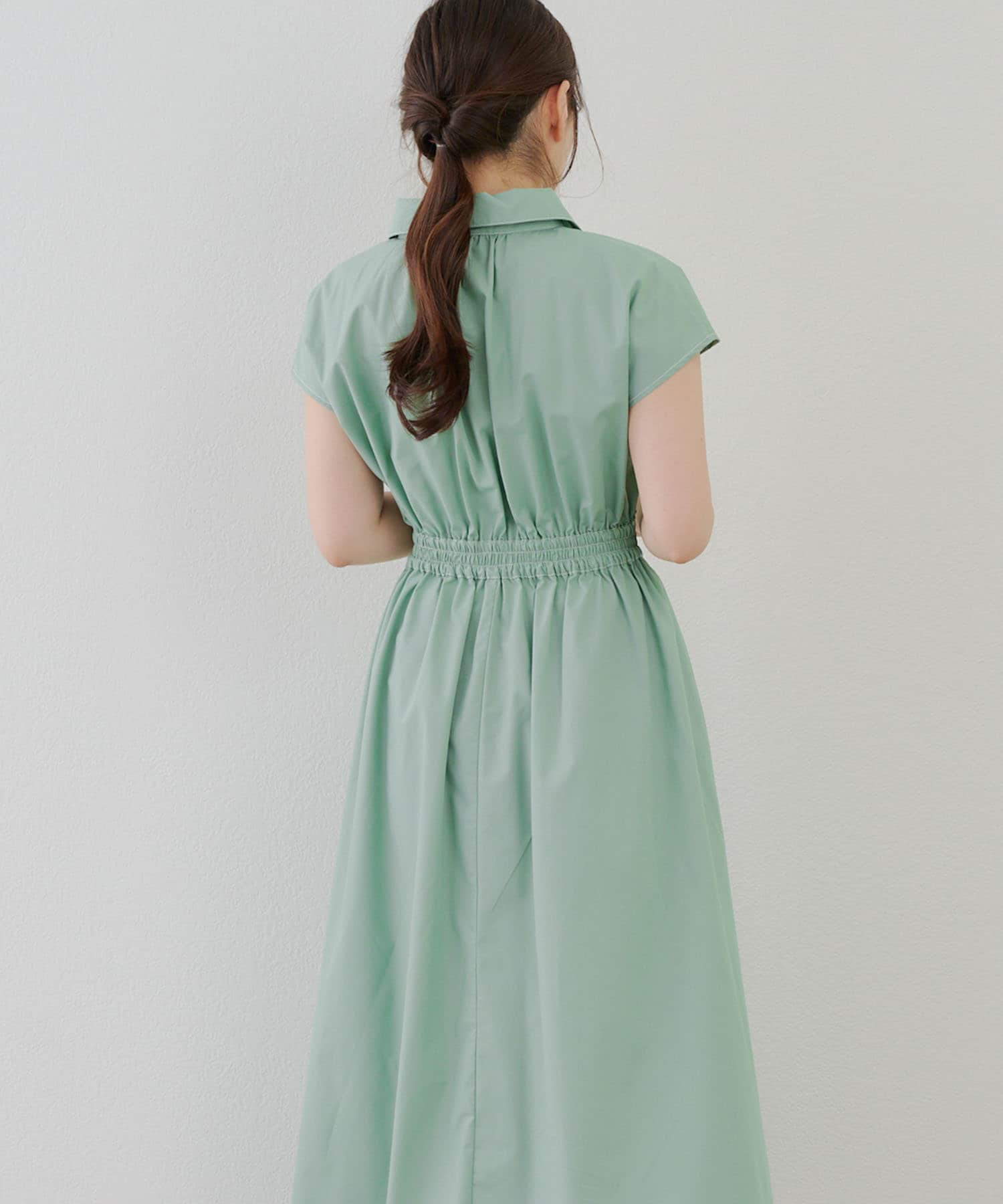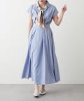 ・スキッパー襟が大人っぽい印象のロング丈ワンピース