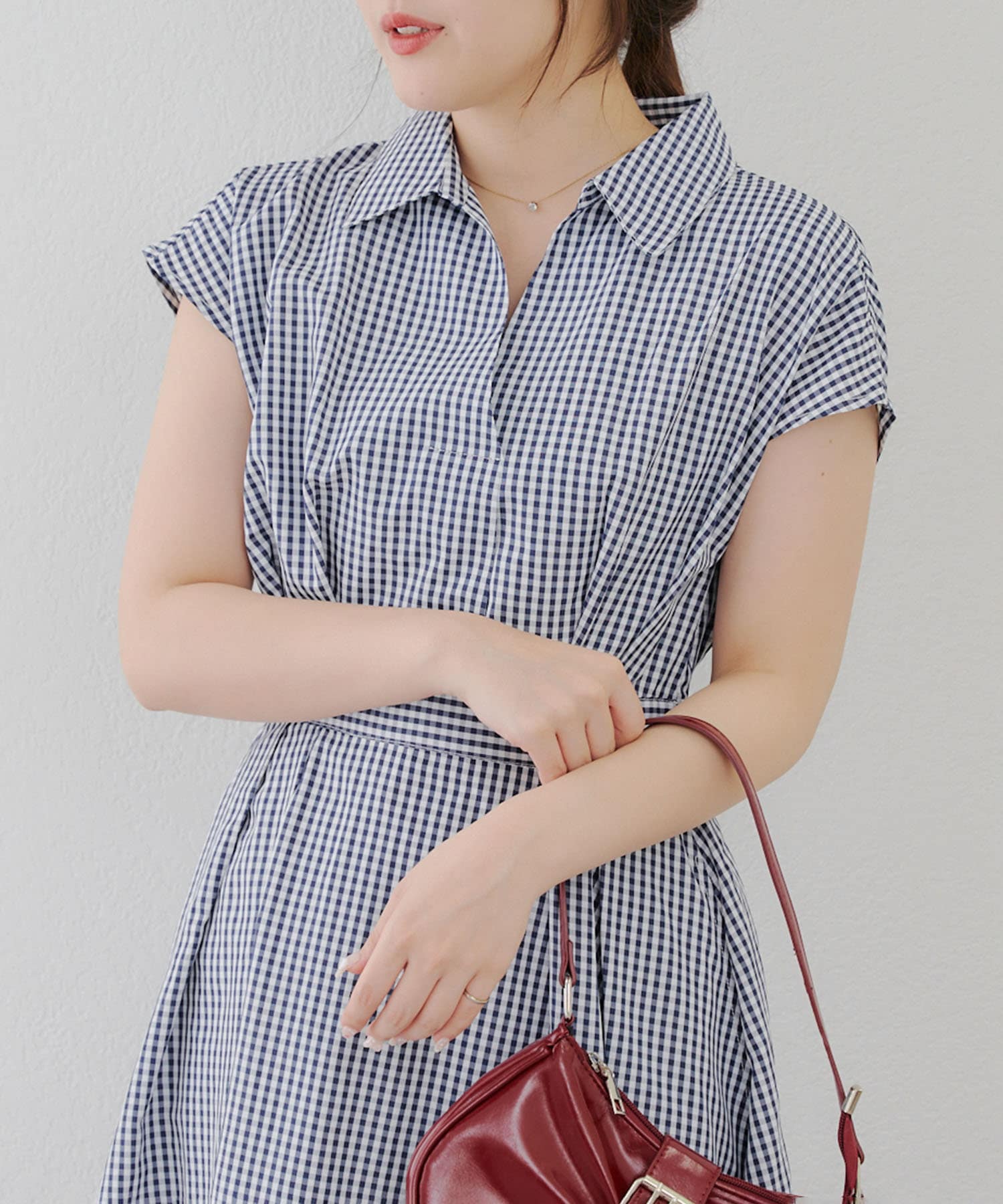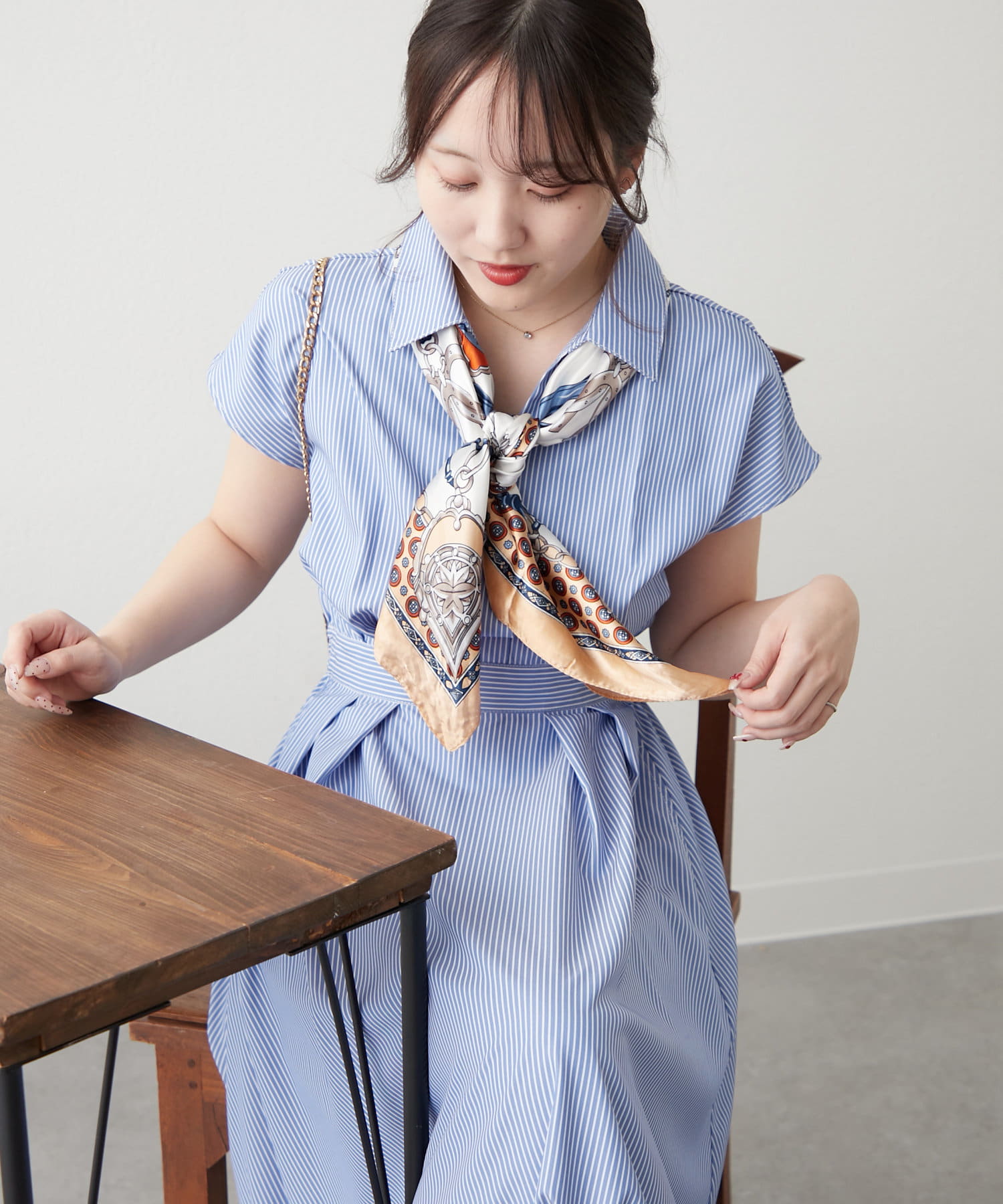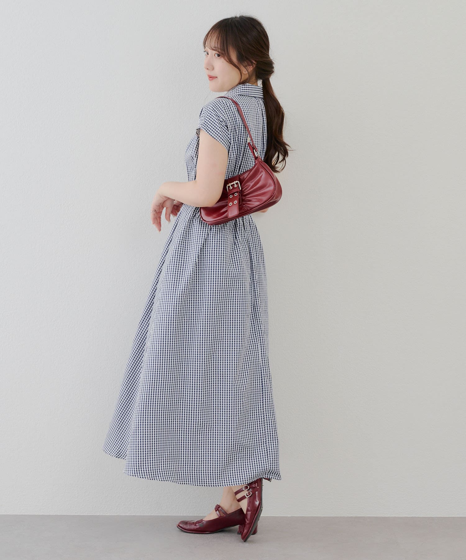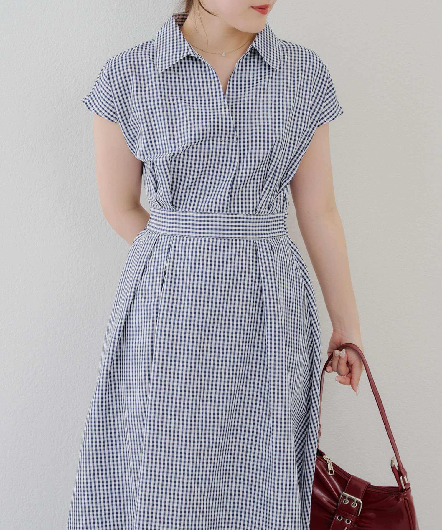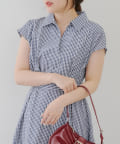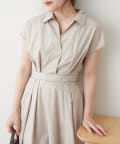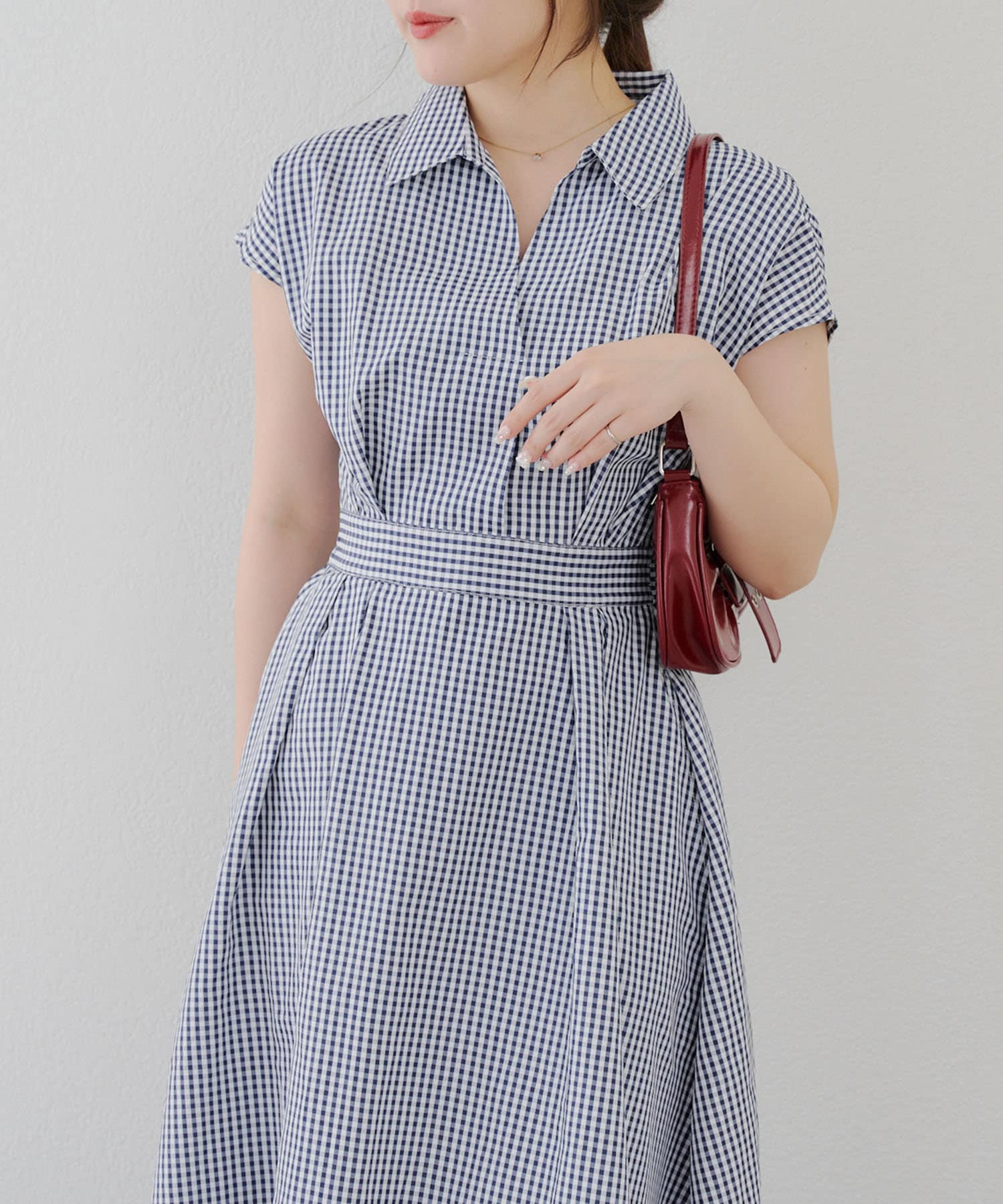 ・スキッパー襟が大人っぽい印象のロング丈ワンピース