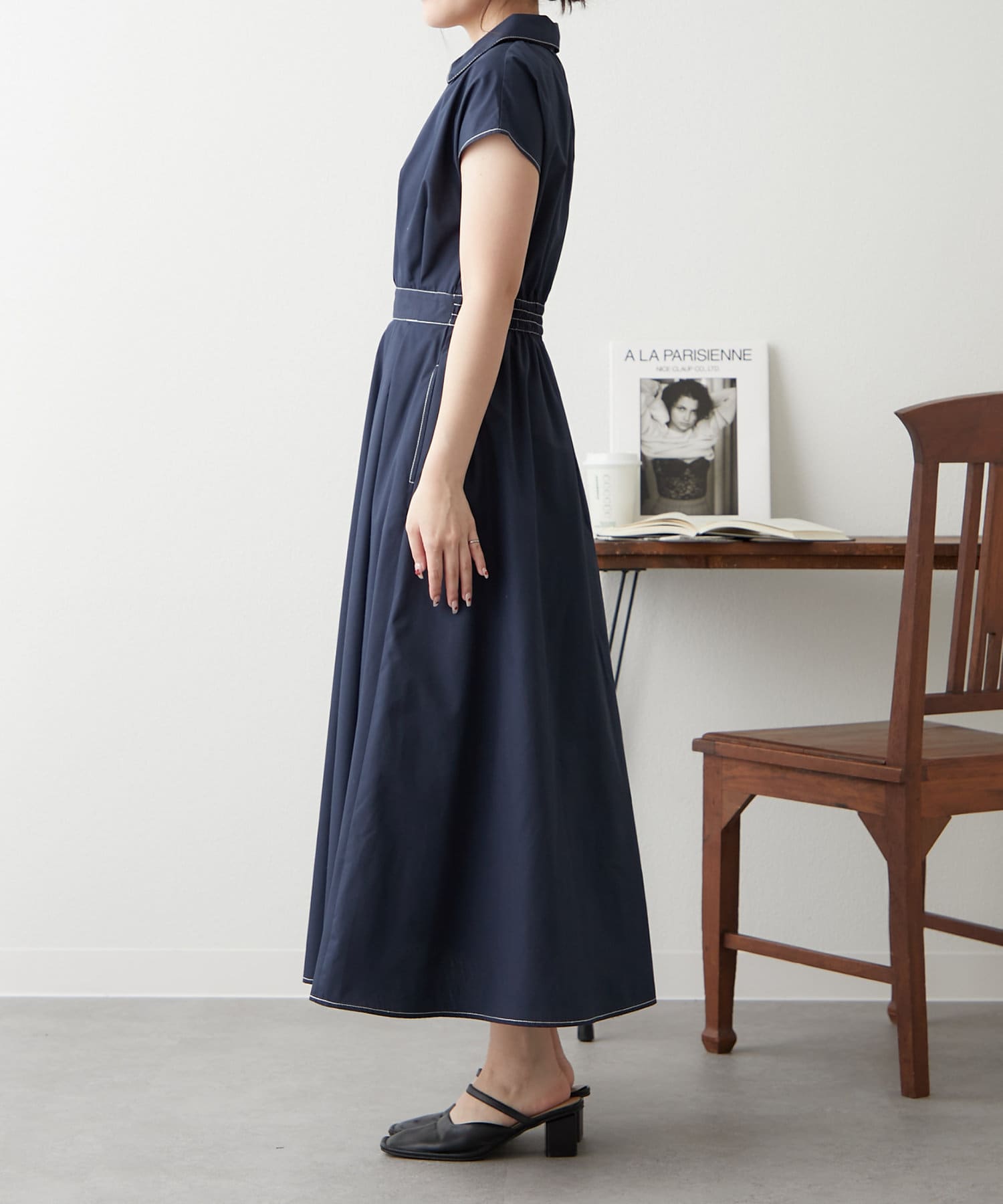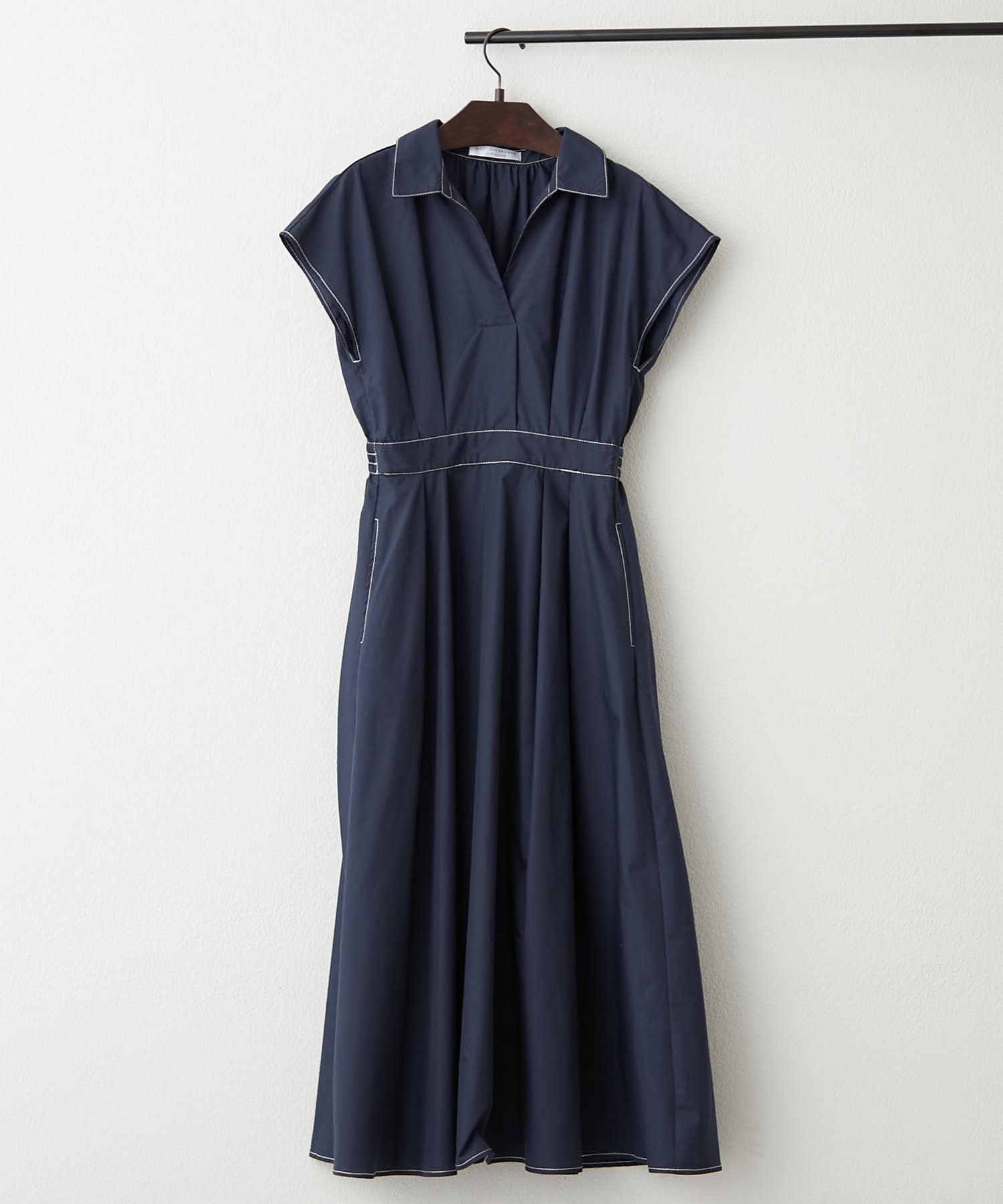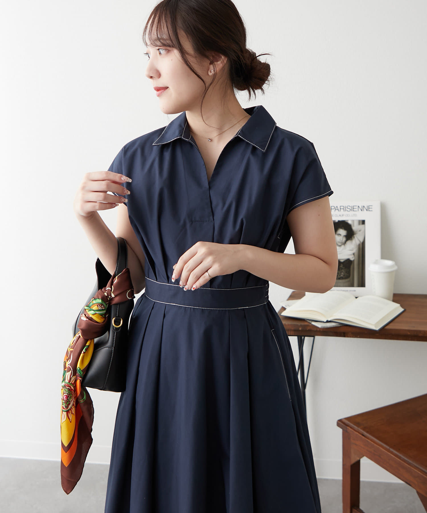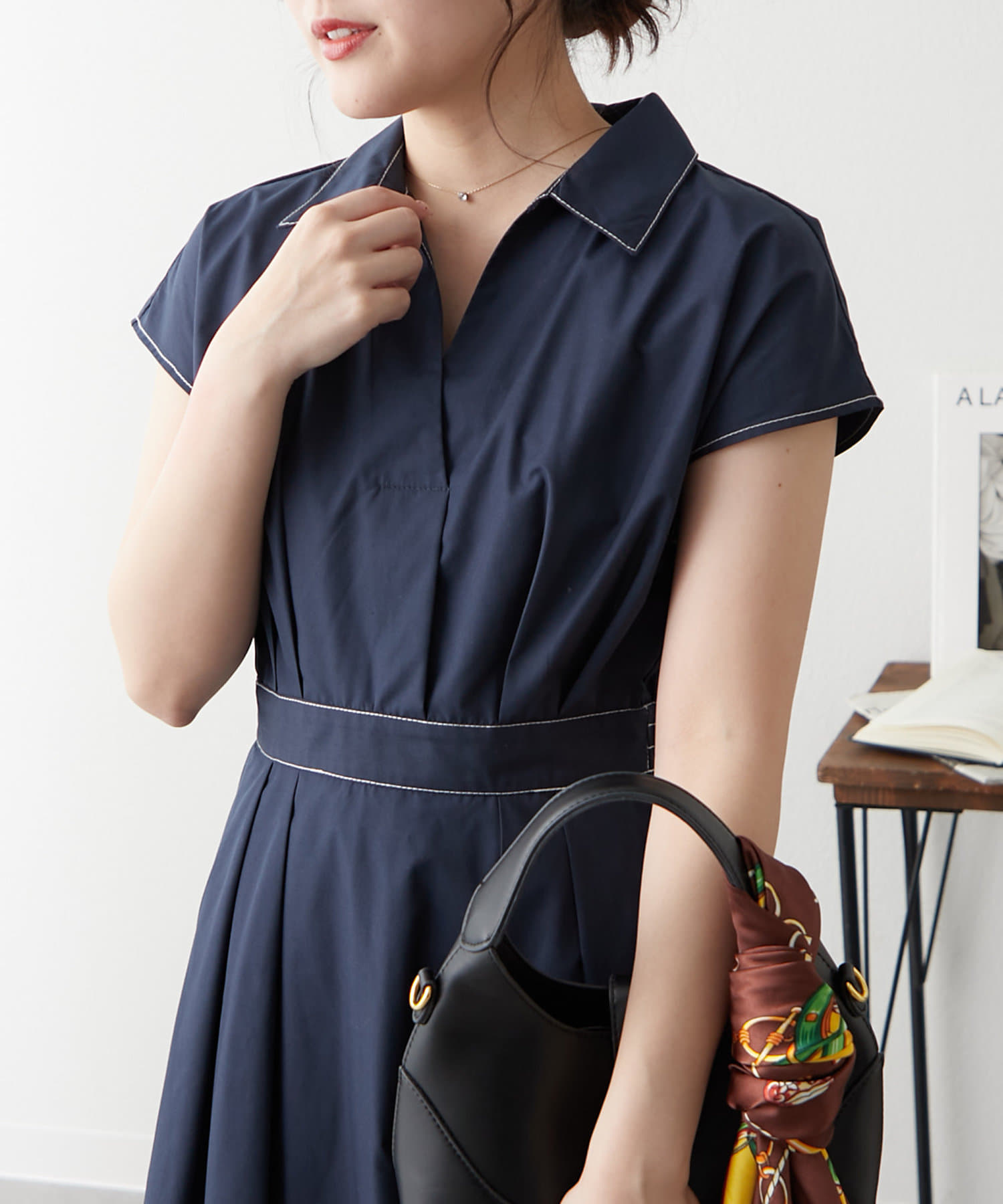 【一枚でレディな印象に】配色ステッチスキッパーワンピ