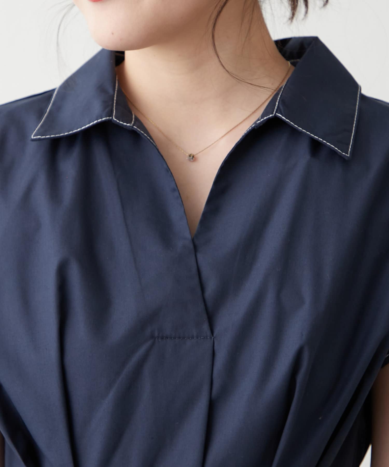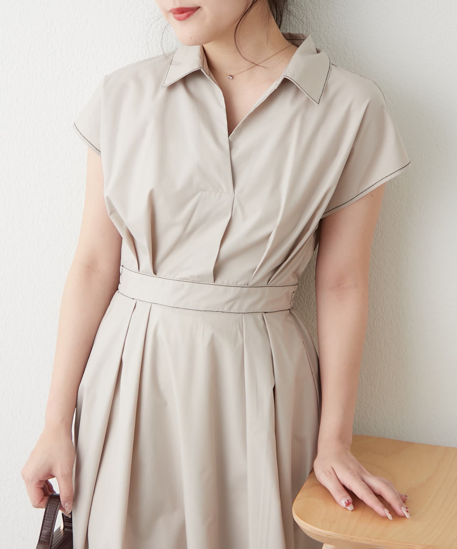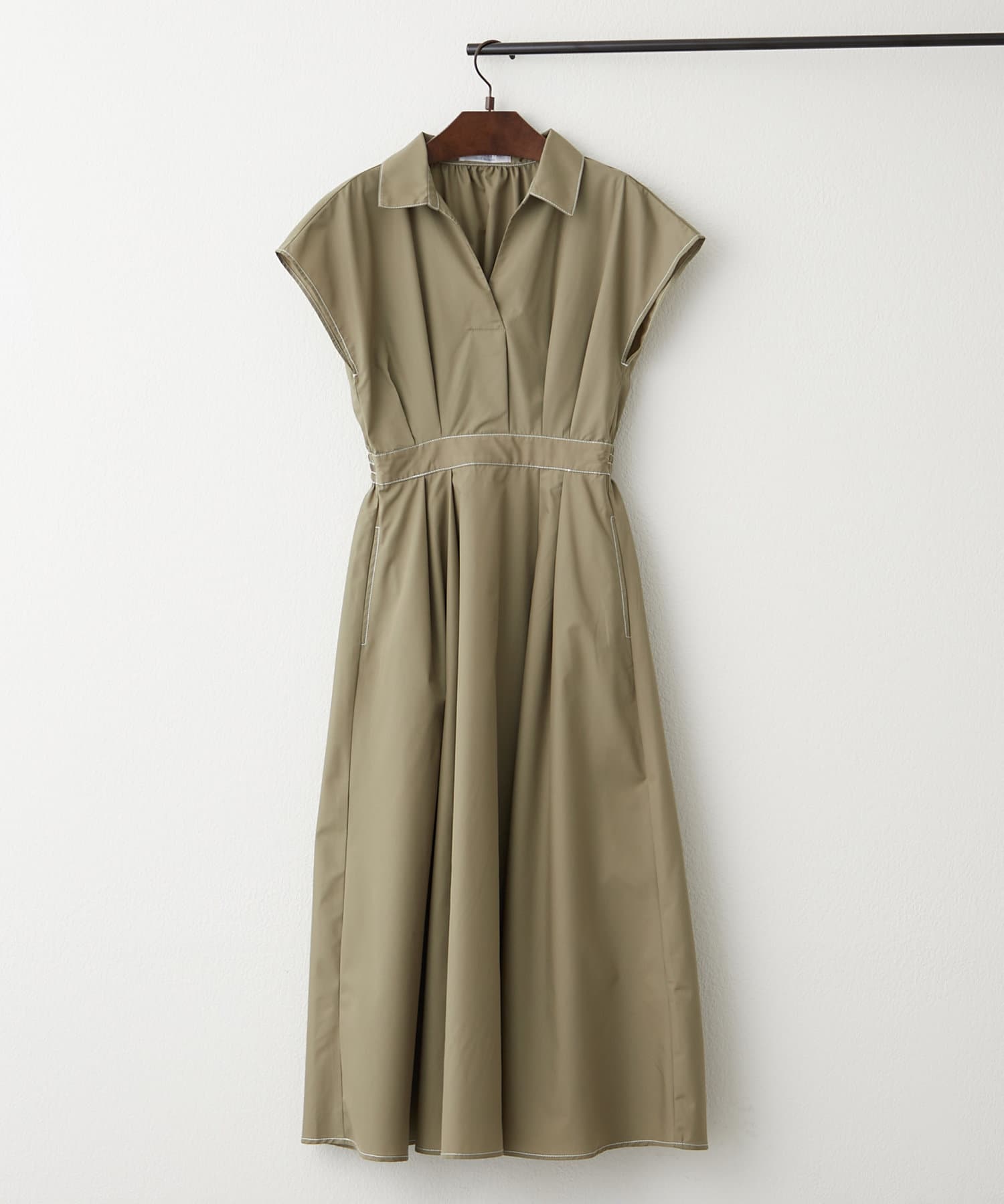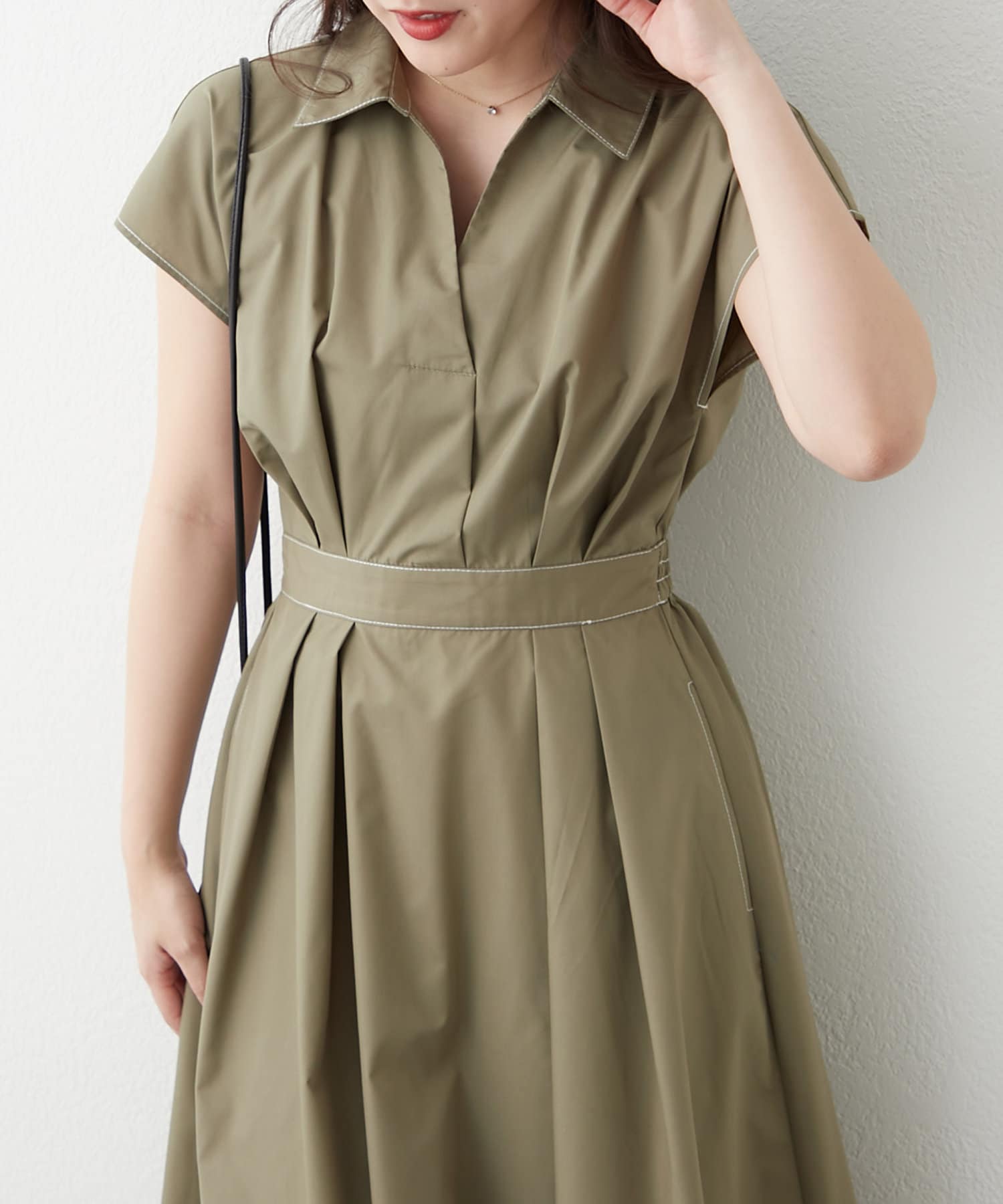 【一枚でレディな印象に】配色ステッチスキッパーワンピ
