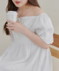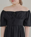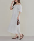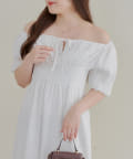 ・襟ぐりがゴムが入っているので肩を落としてオフショルとしても着用していただける2wayワンピース。