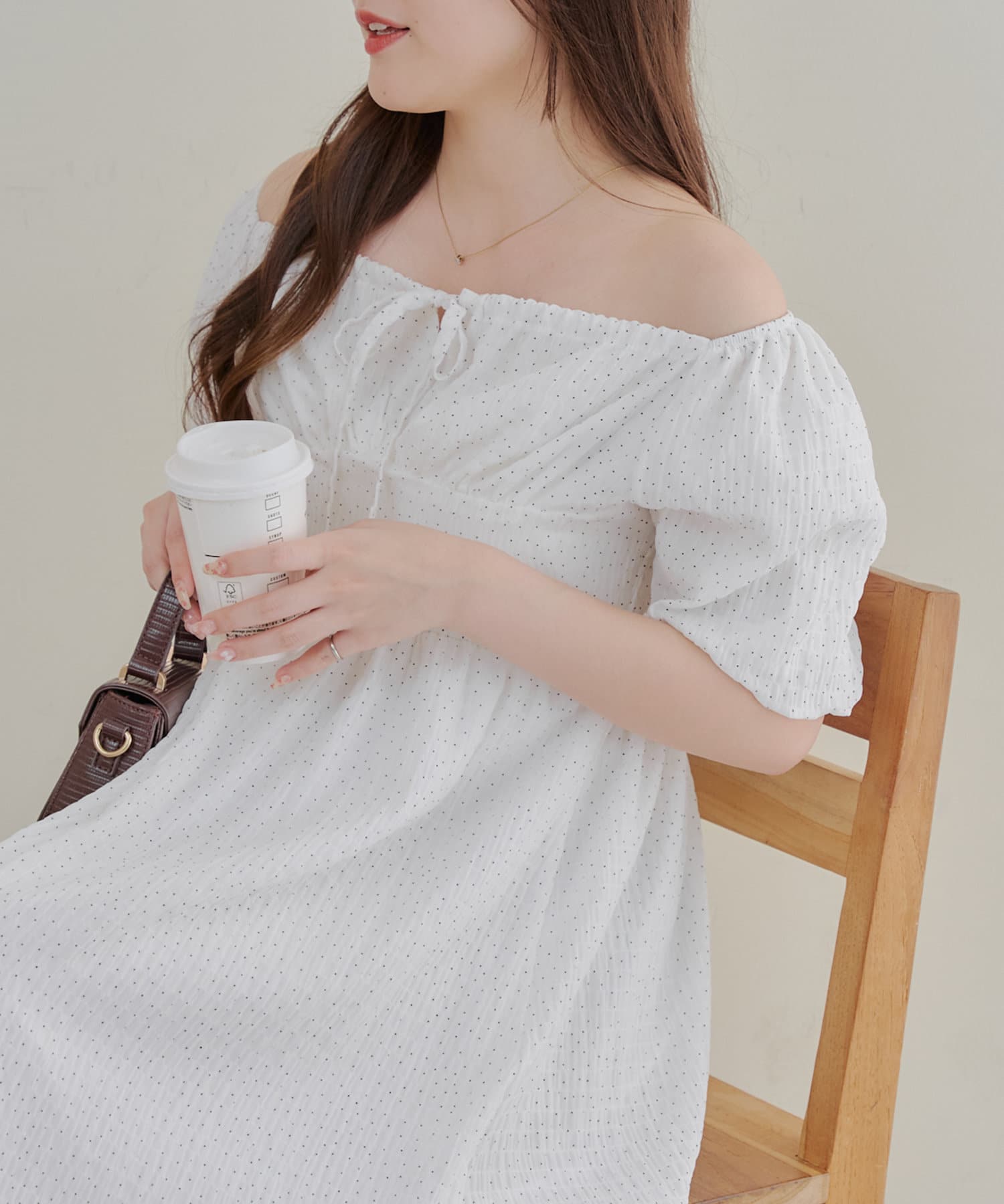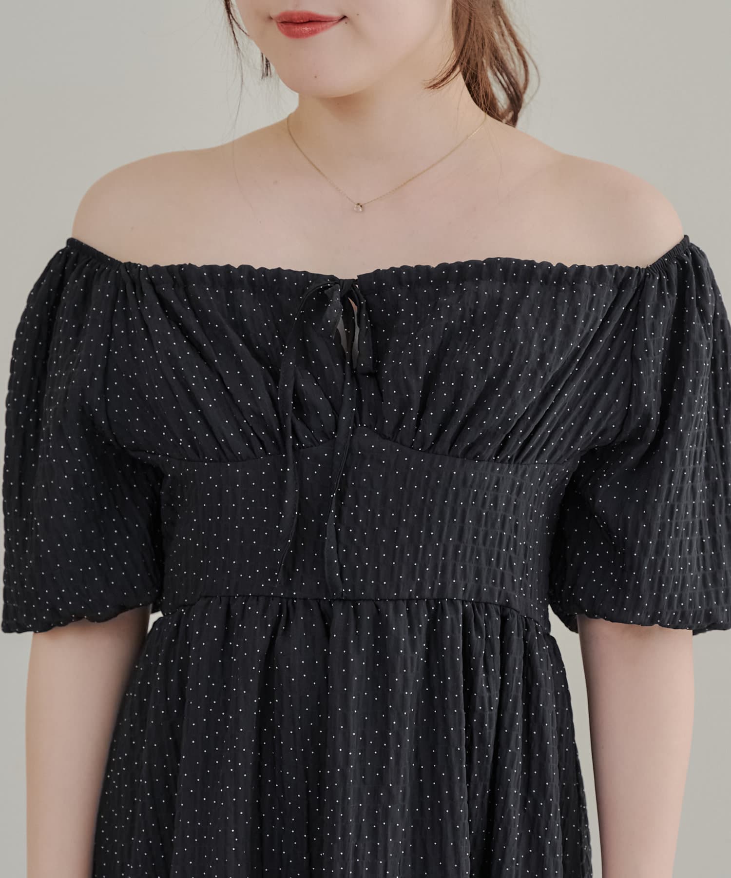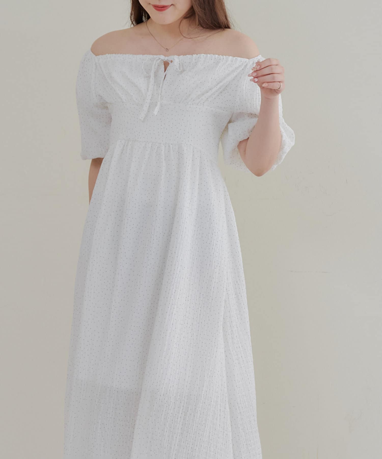 【お出かけコーデにぴったり!】ドットオフショルワンピース