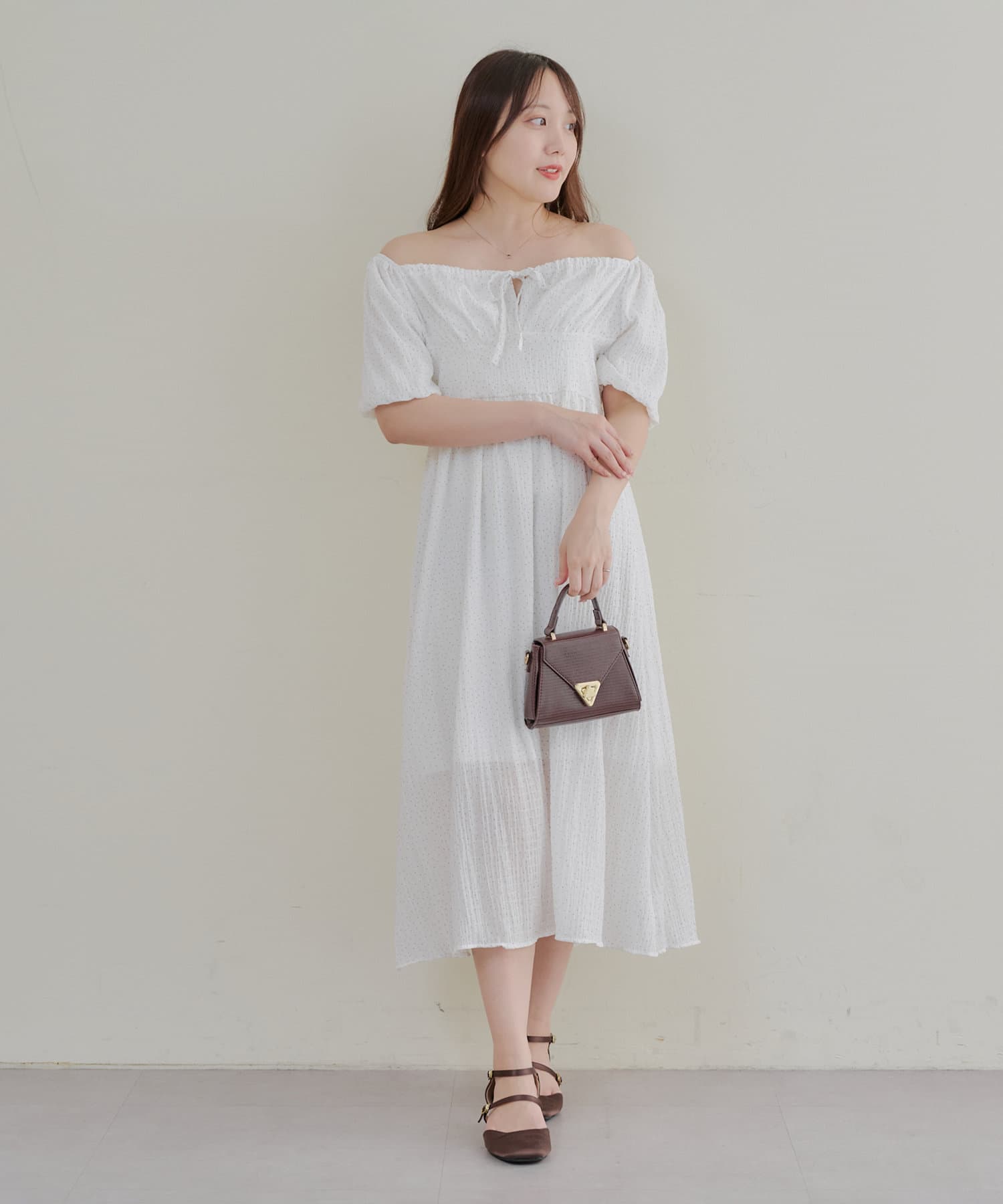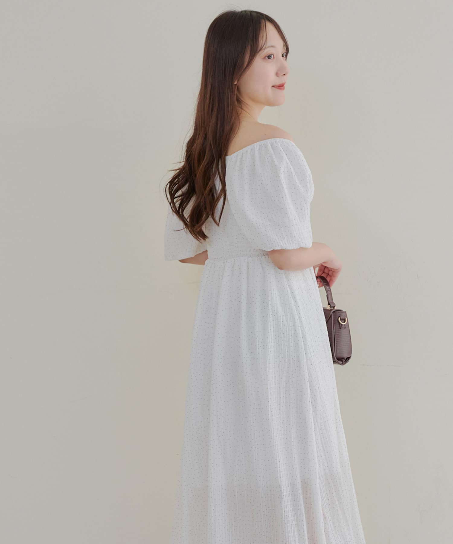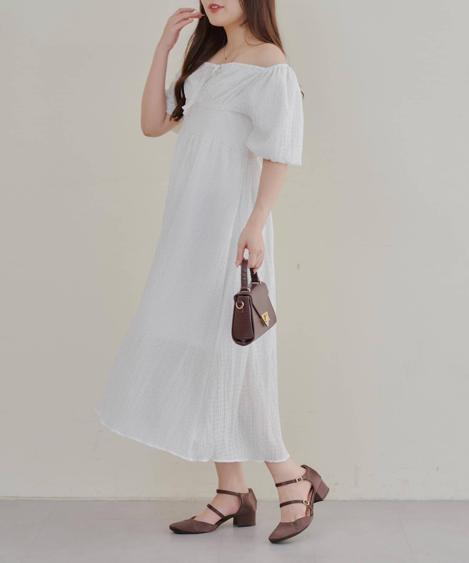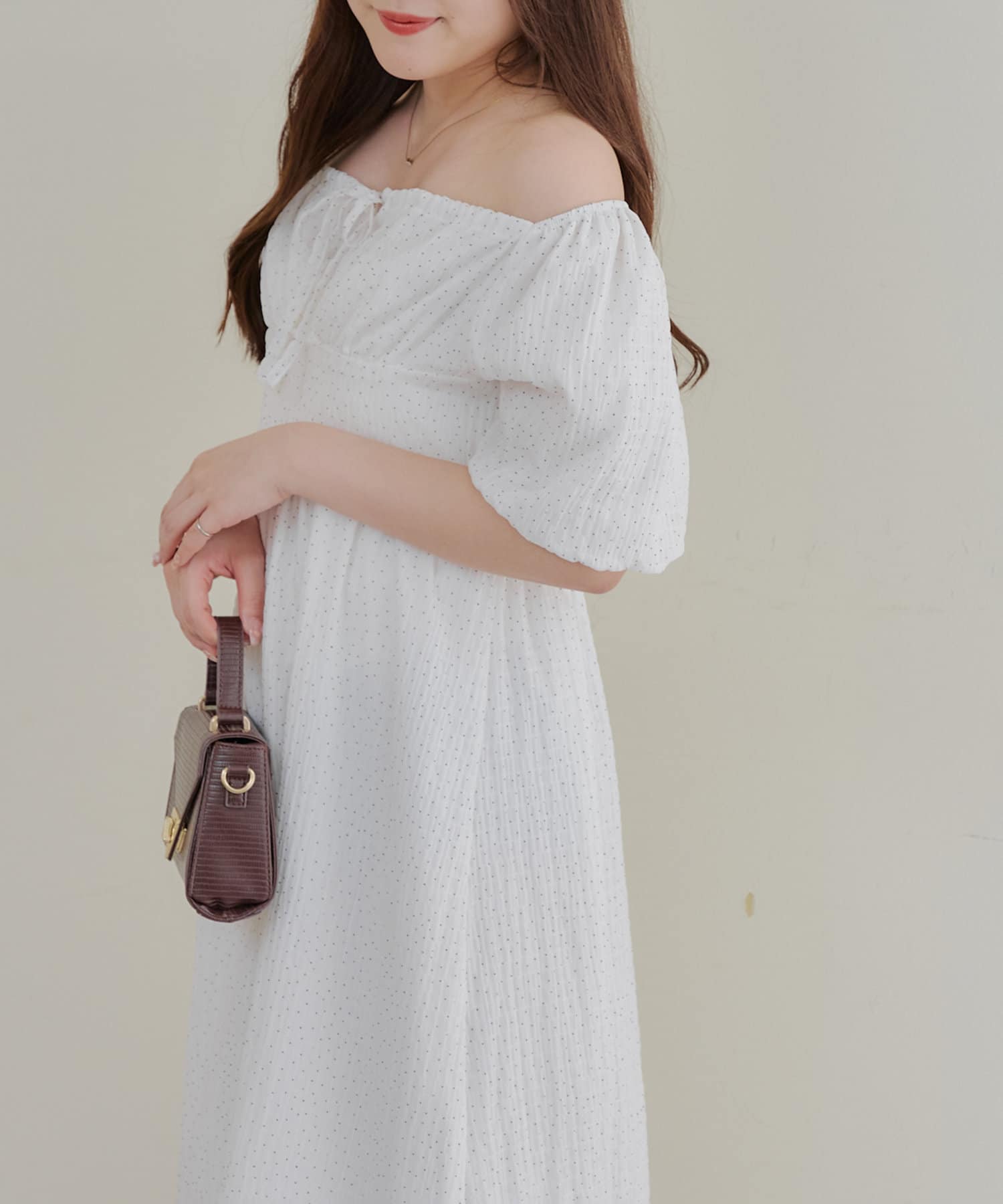【お出かけコーデにぴったり!】ドットオフショルワンピース