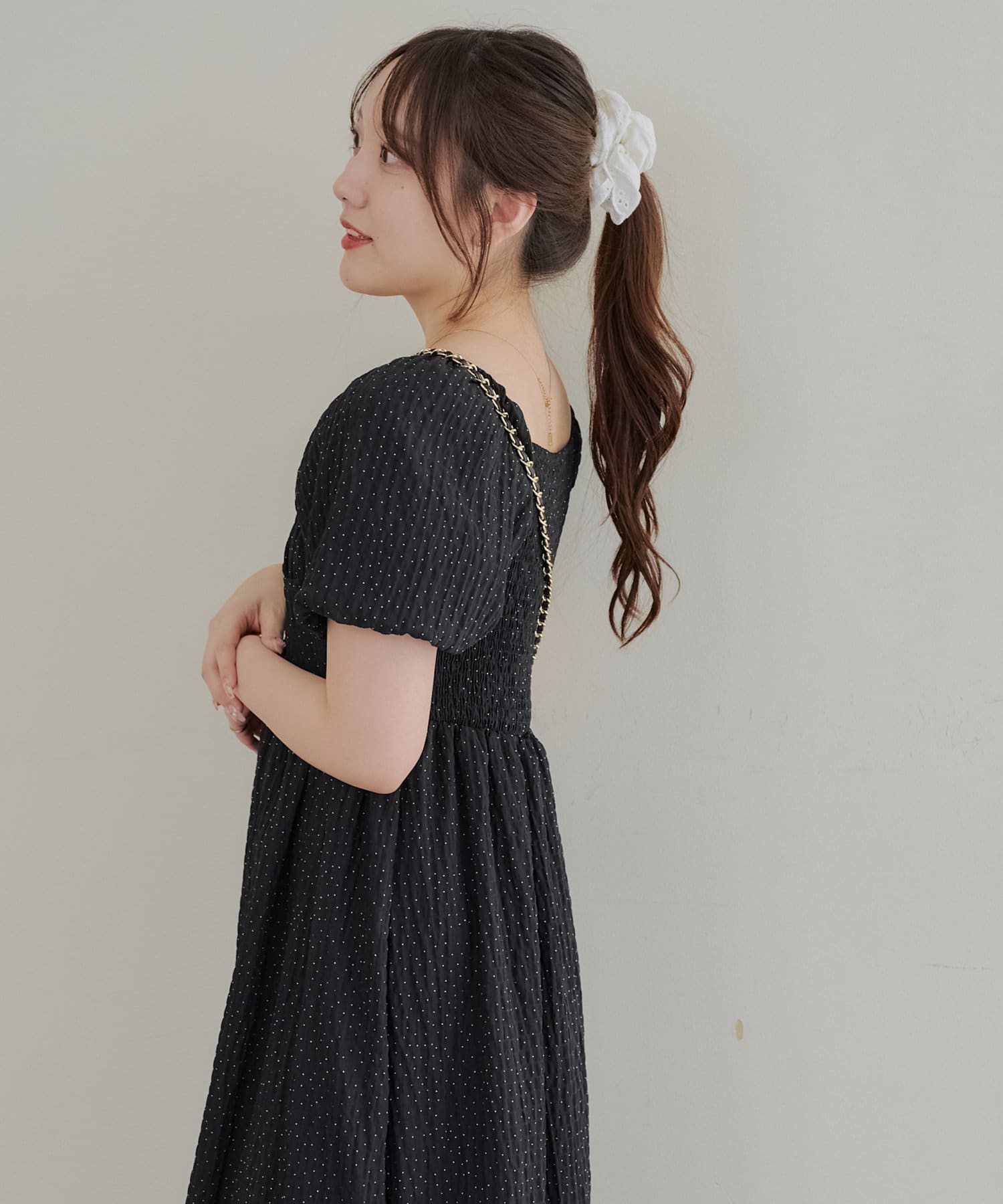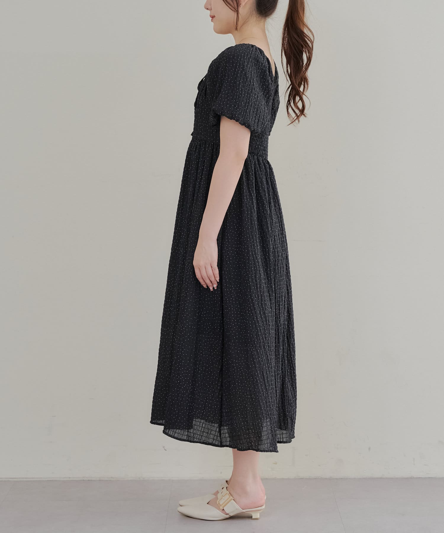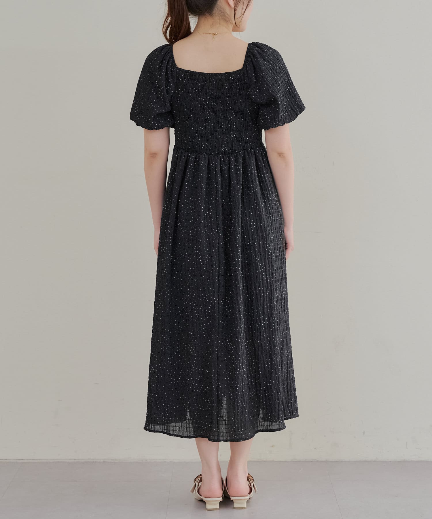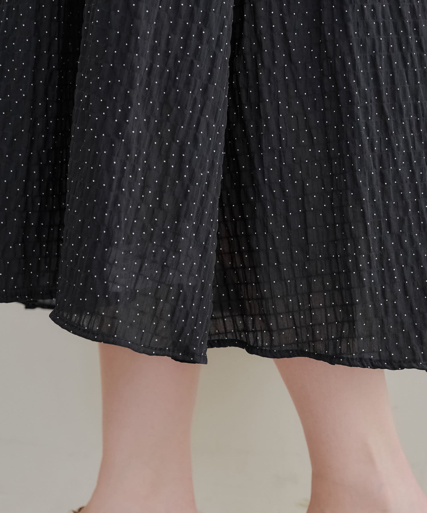 ・ドット柄がガーリーな印象のワンピース。
