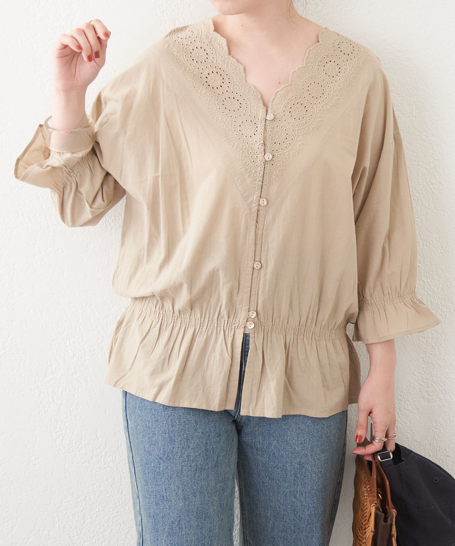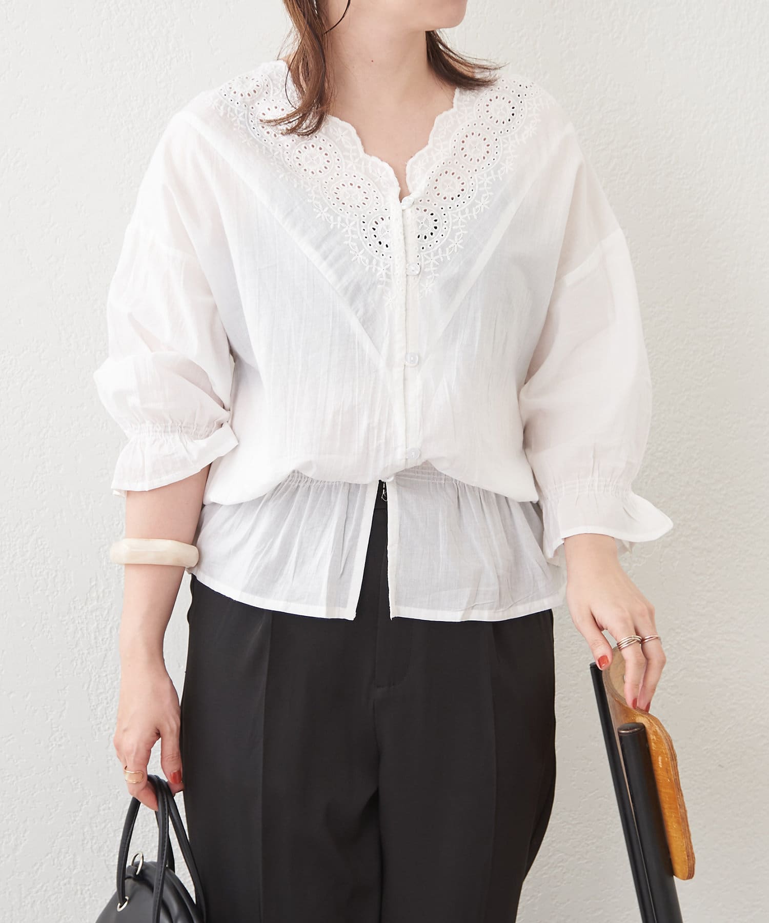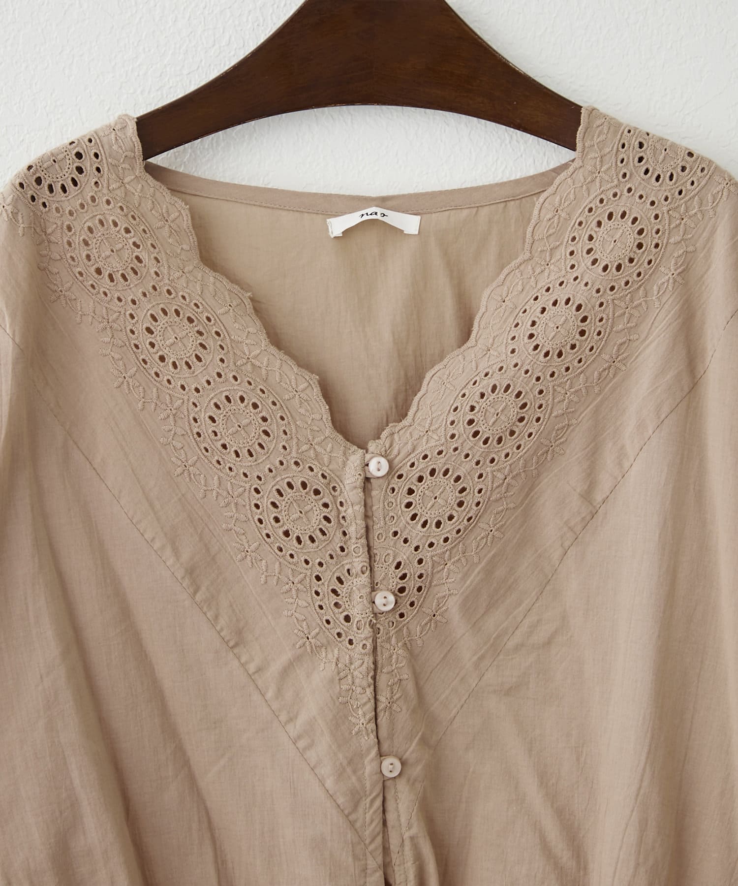 スカラップがポイント♪インド綿100%のカットワークレースプルオーバー