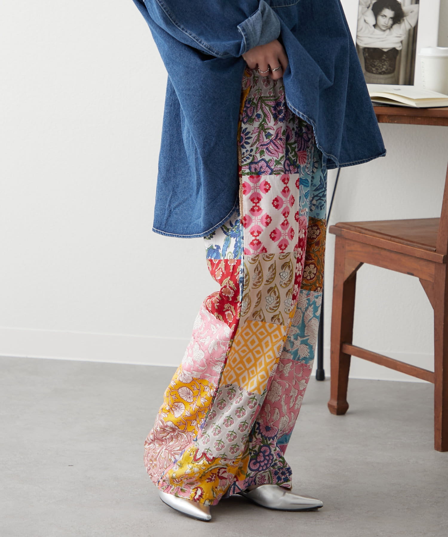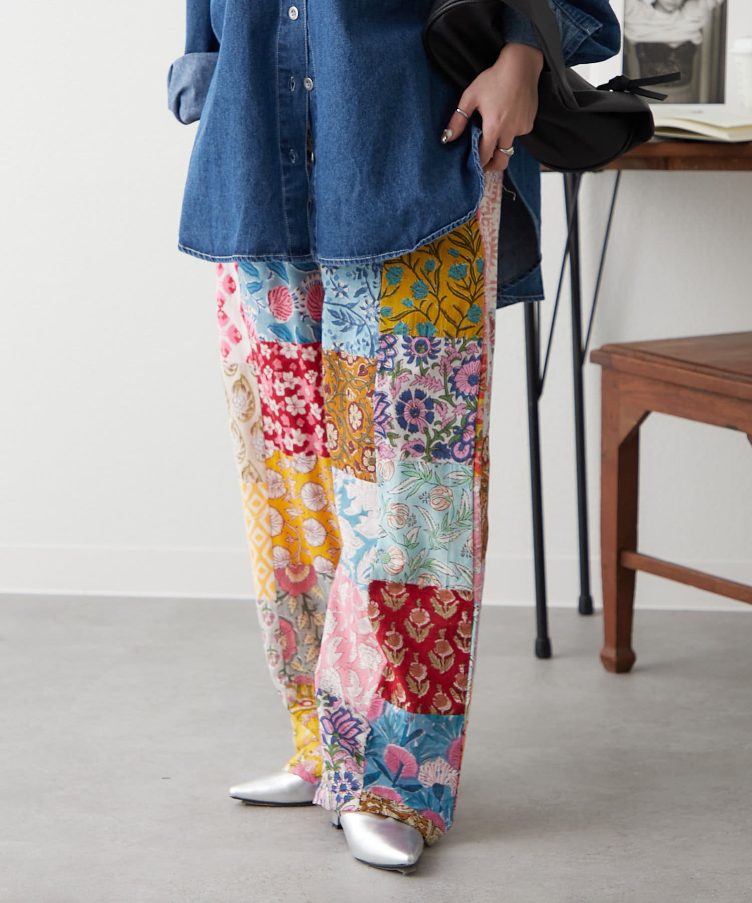 【新カラー追加!】【India series】パッチワークイージーパンツ