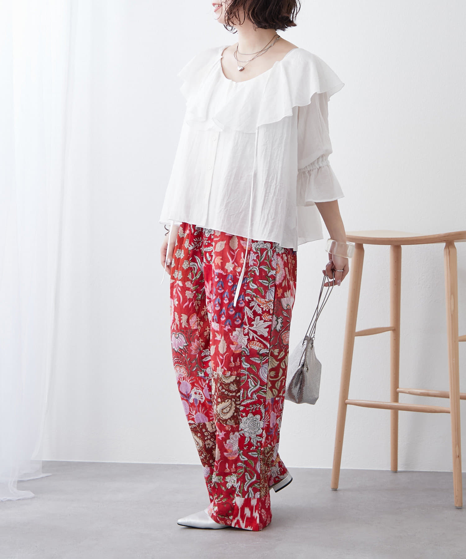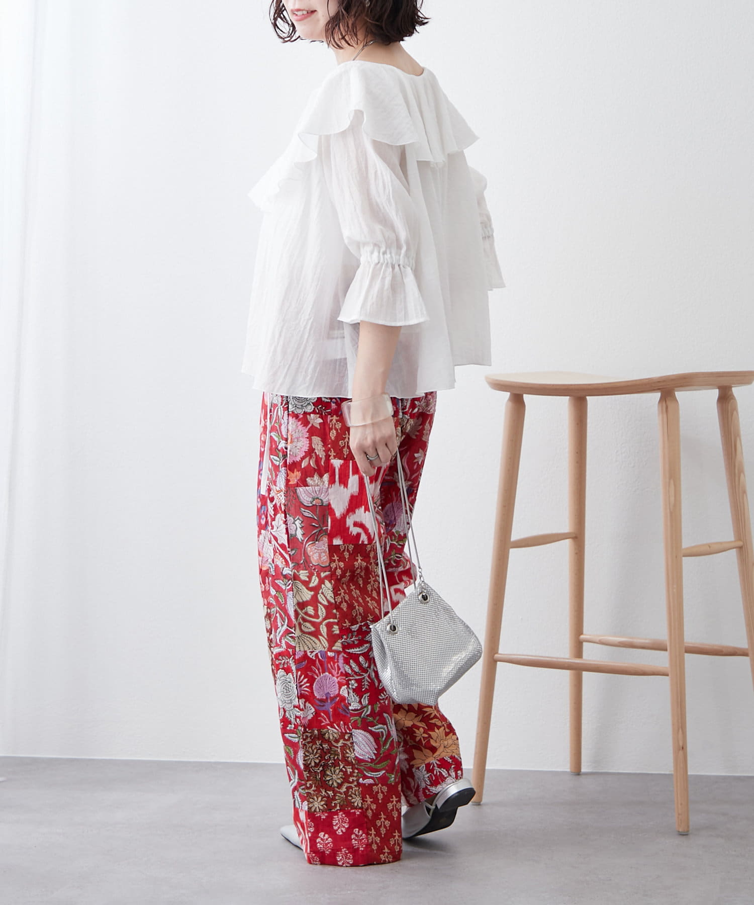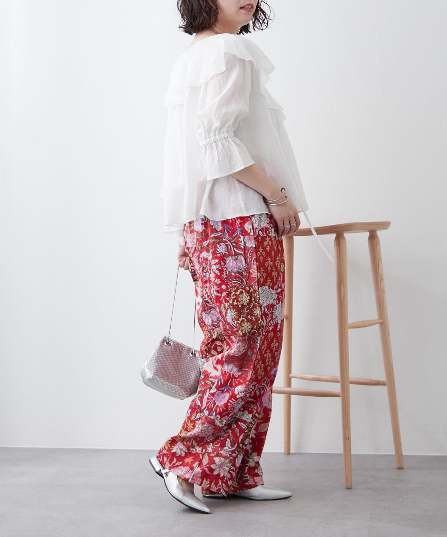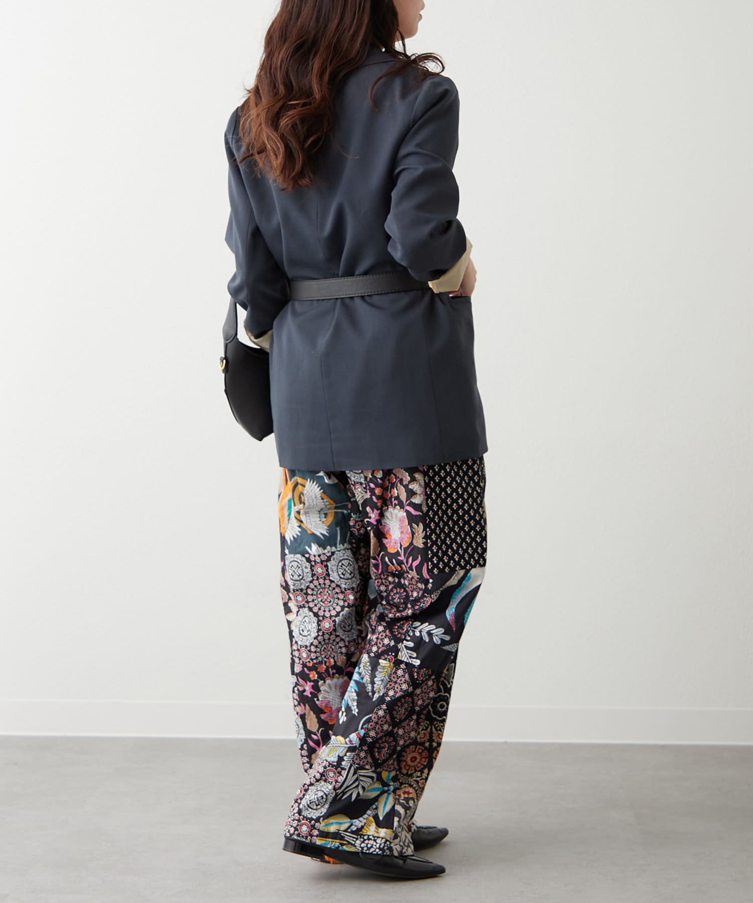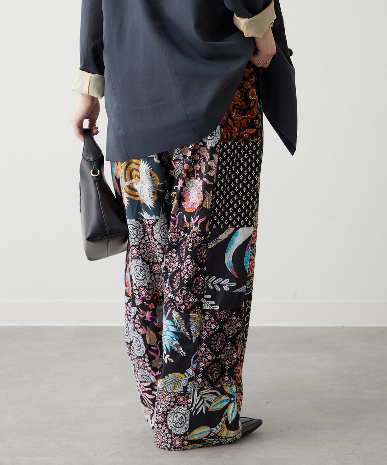 ・アジアンテイストな総柄で一気に華やかな印象になるパンツ