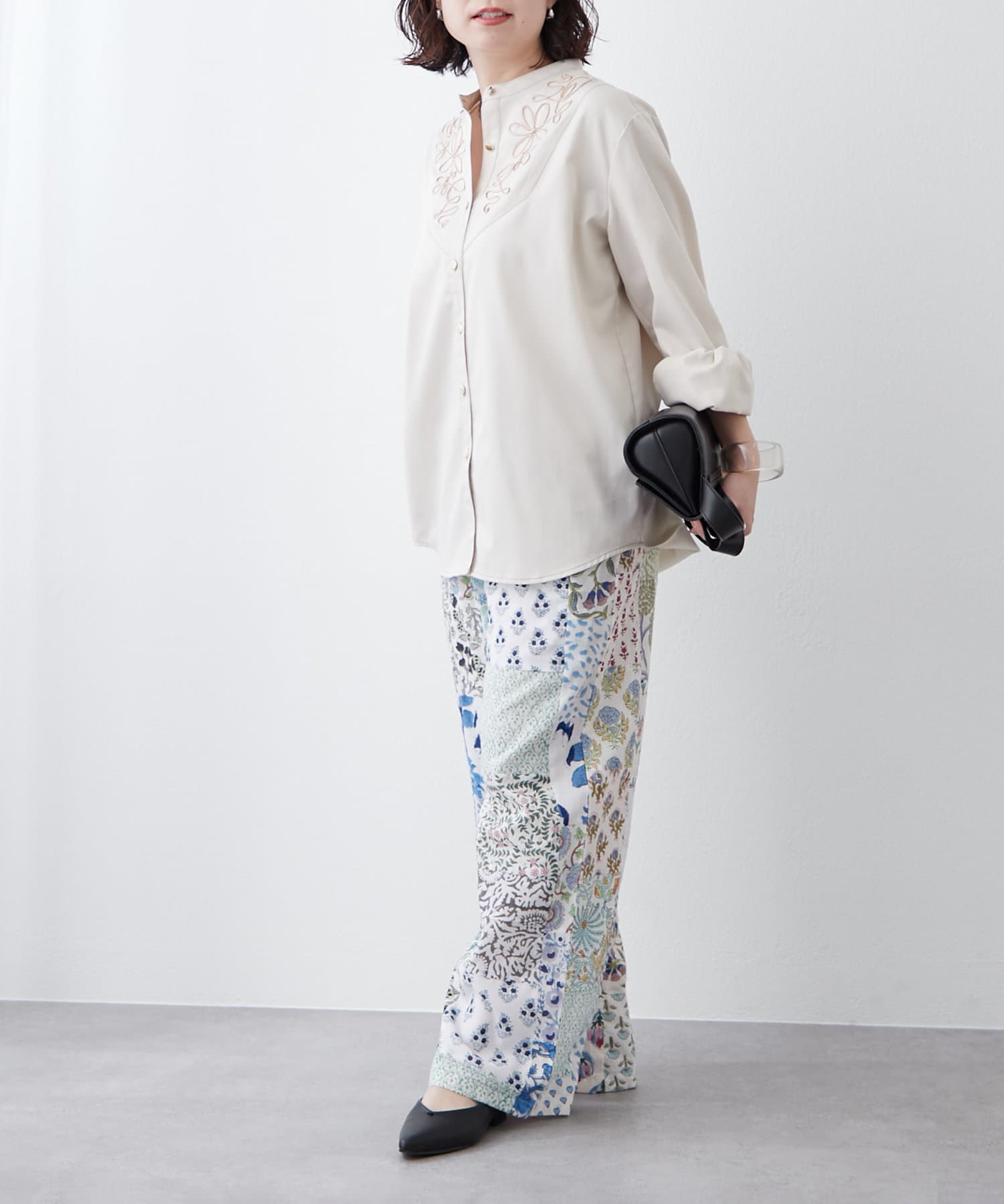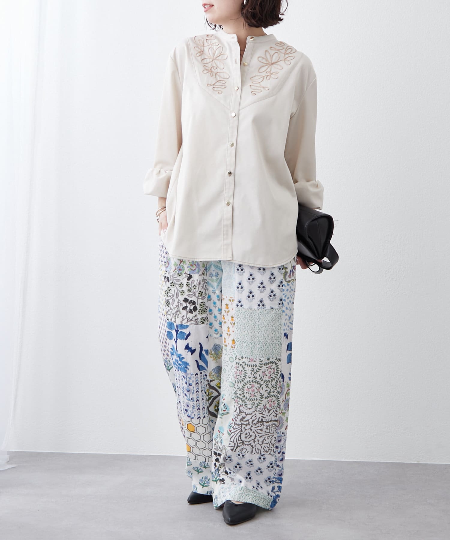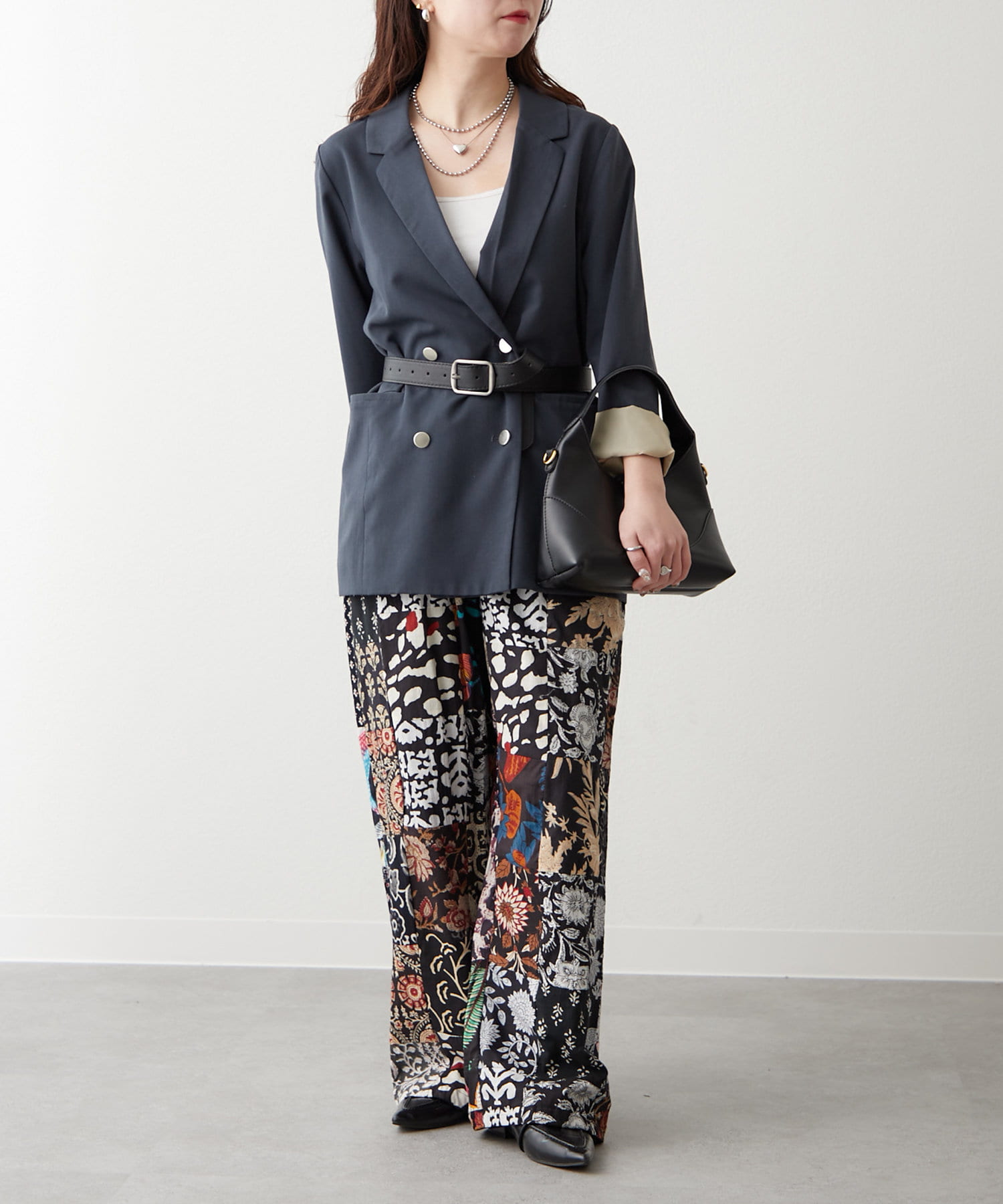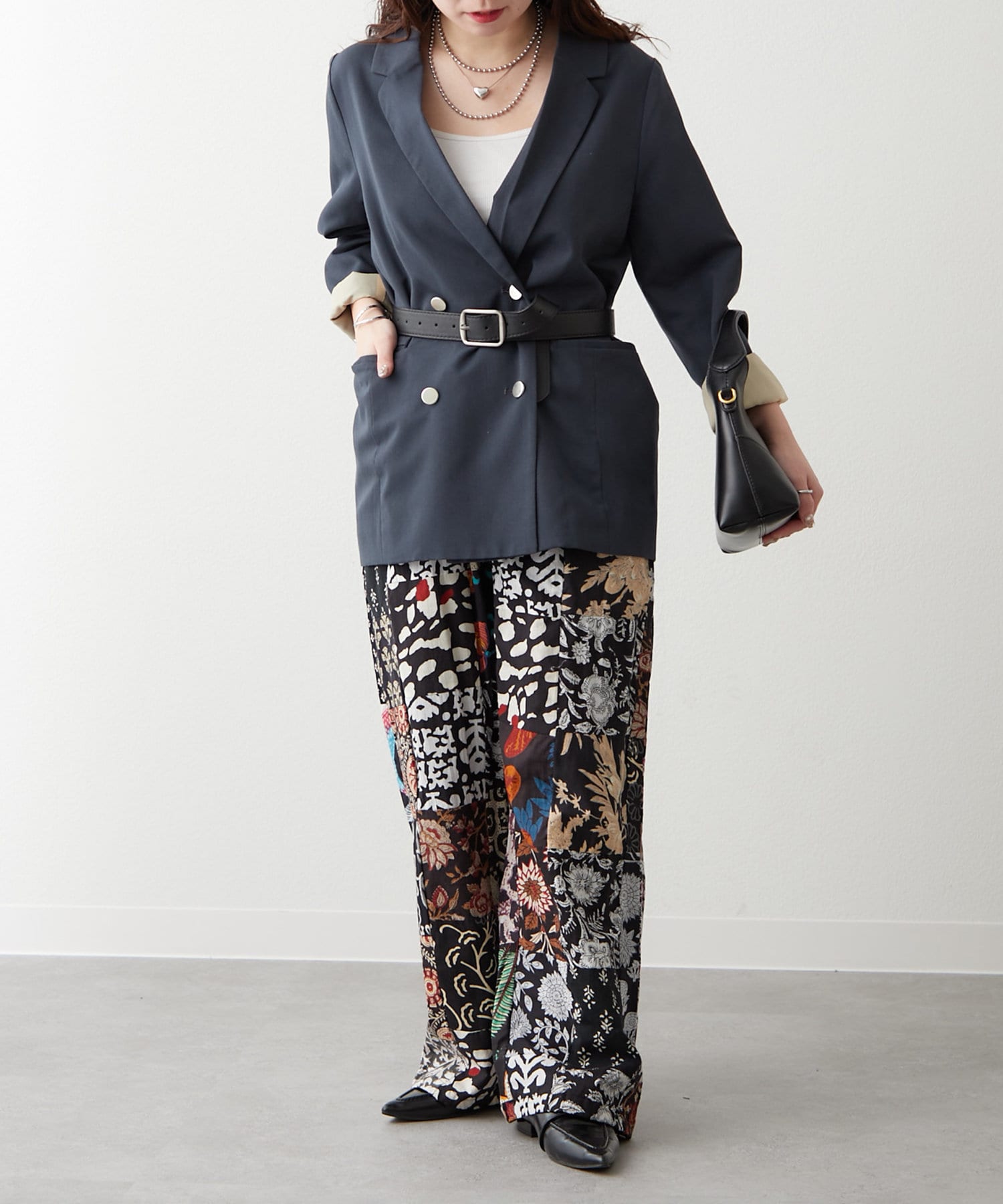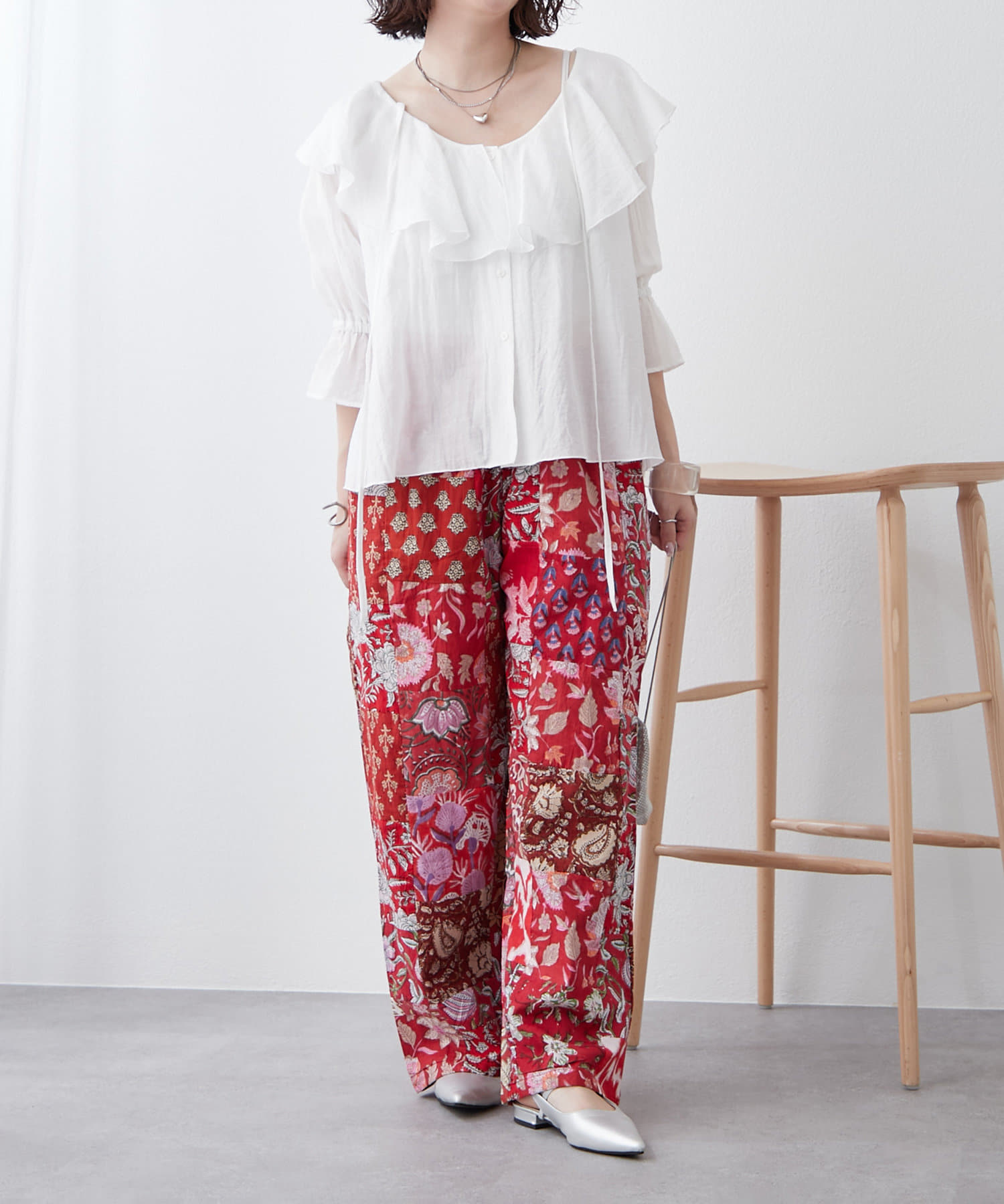 ・アジアンテイストな総柄で一気に華やかな印象になるパンツ
