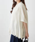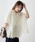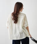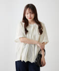 ・裾にかけて広がるシルエットが華やかさを演出する半袖ブラウス