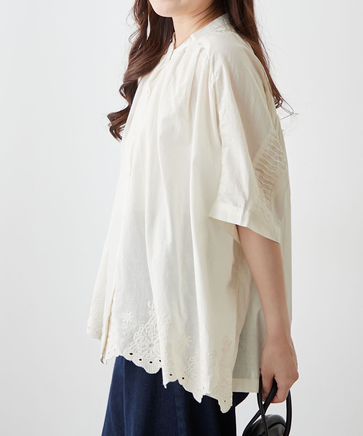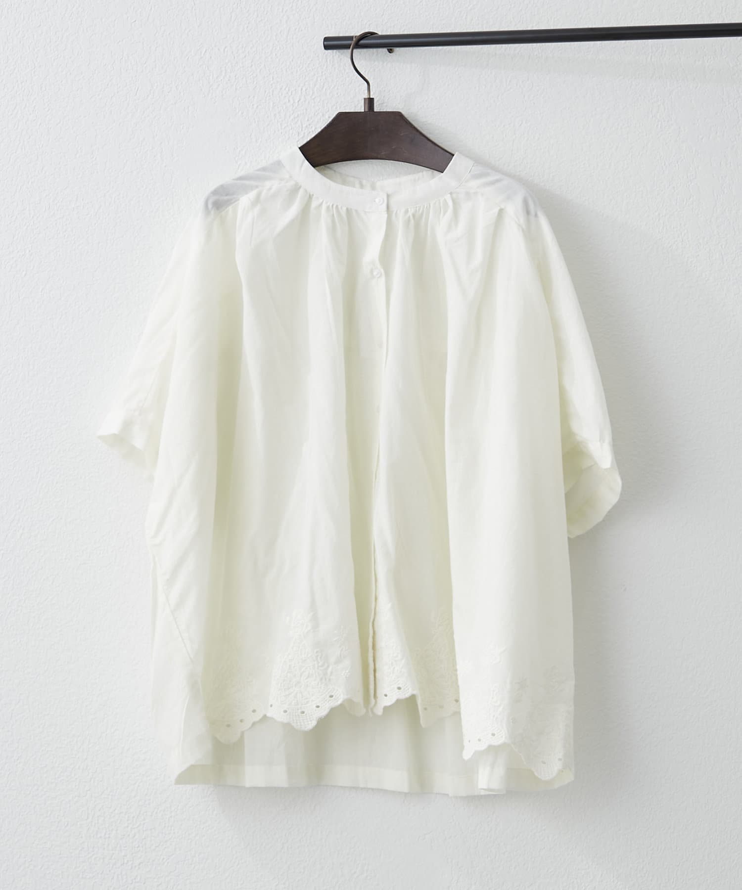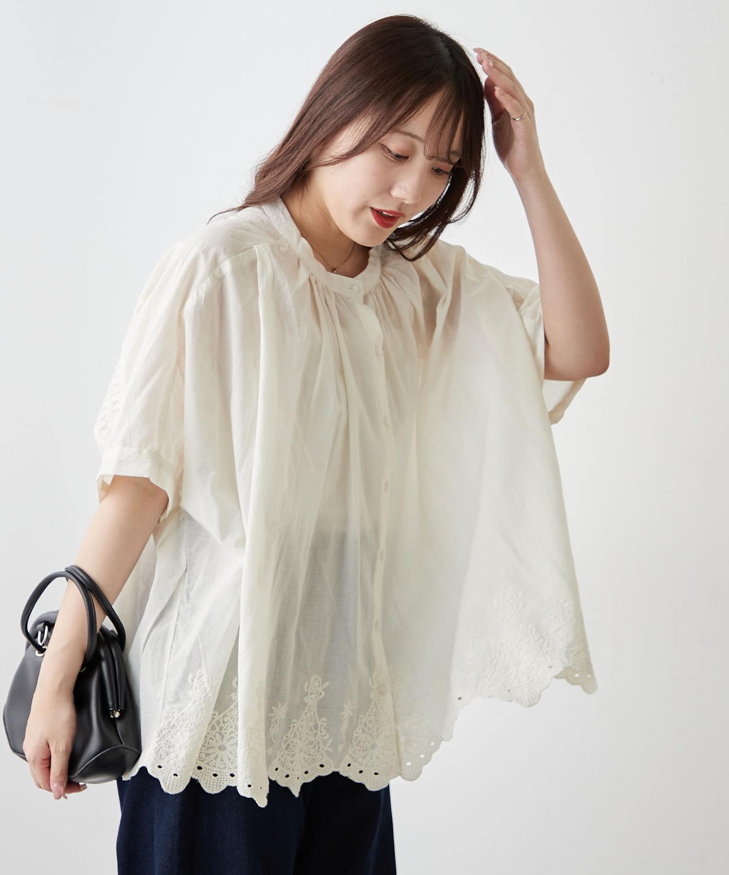 【NAO】インド綿100%、スカラップ刺繍ブラウス