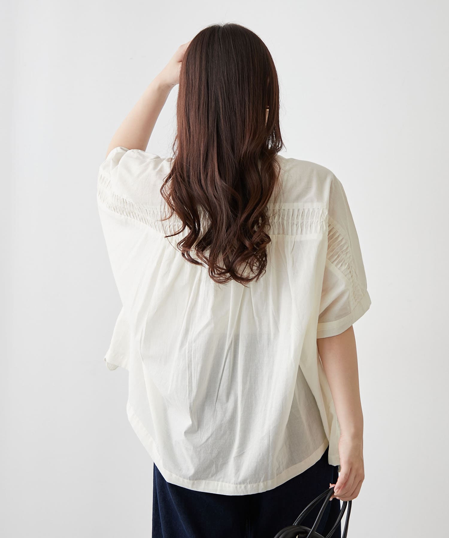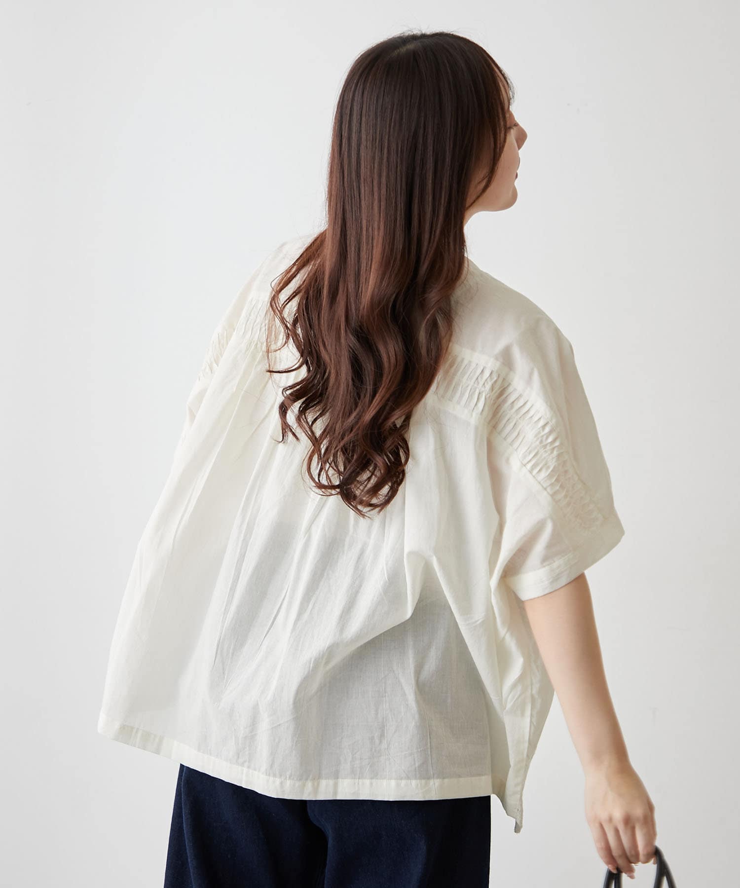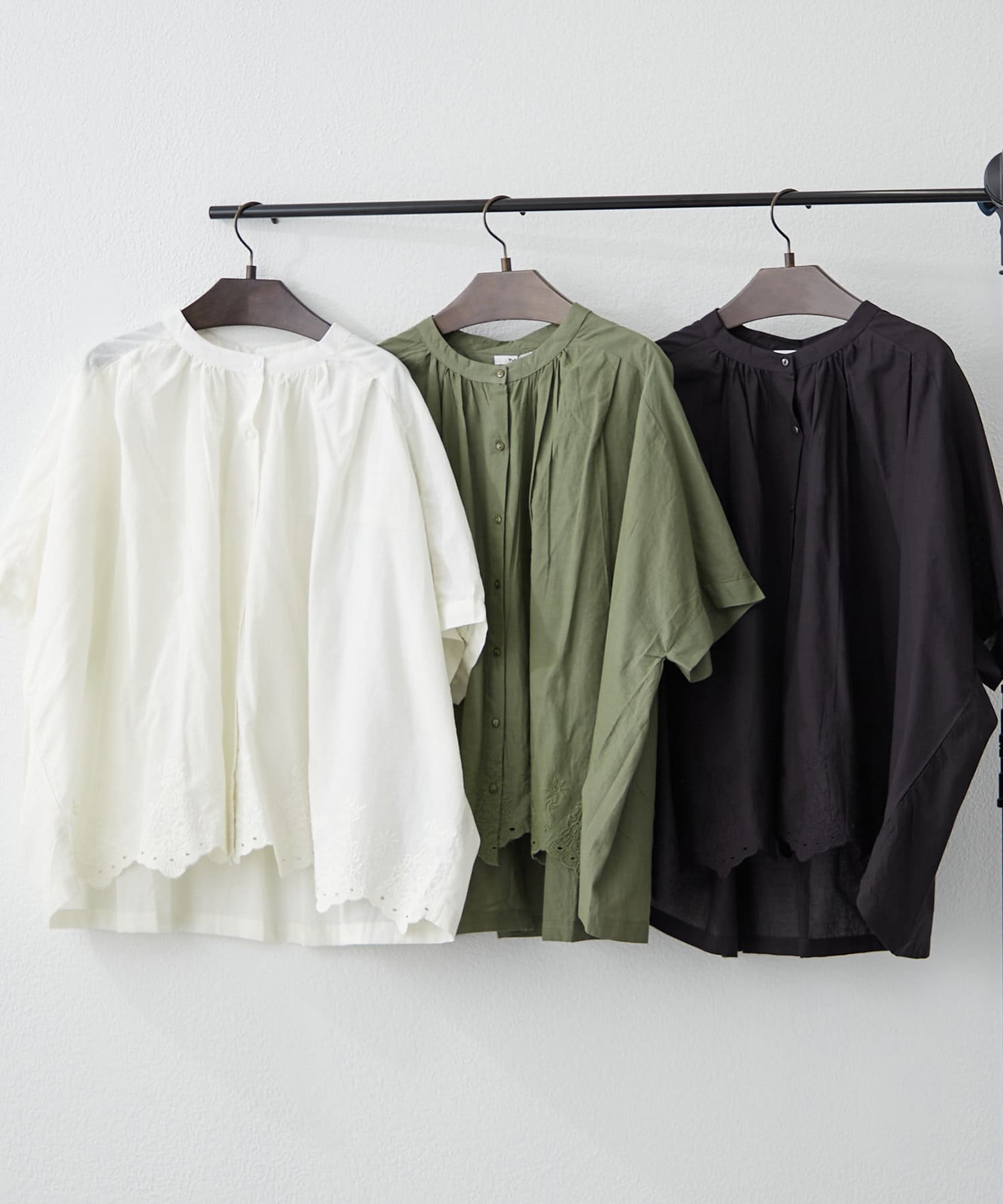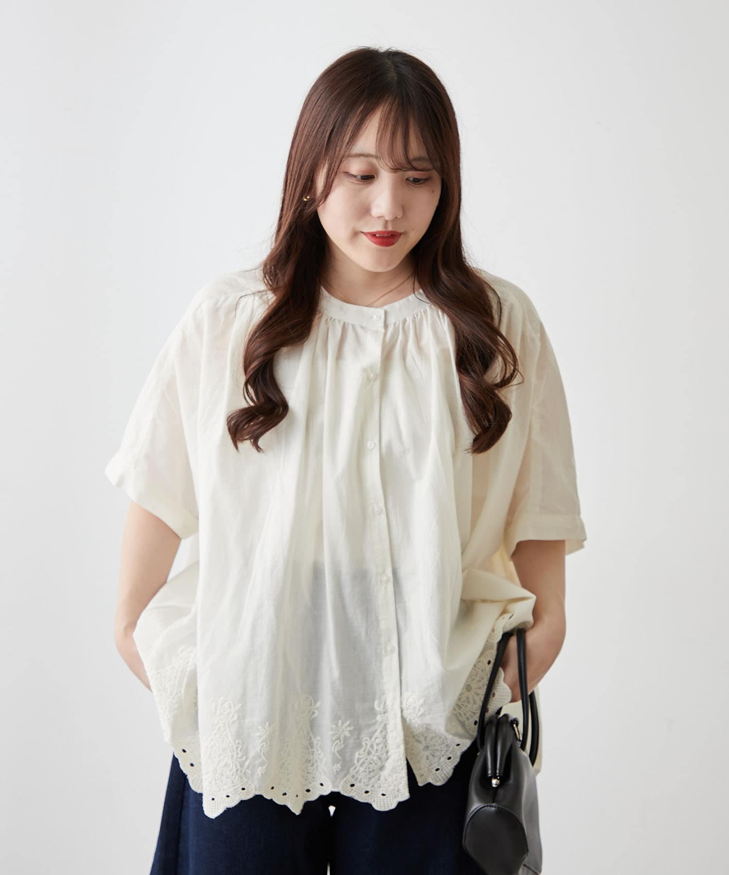 【NAO】インド綿100%、スカラップ刺繍ブラウス