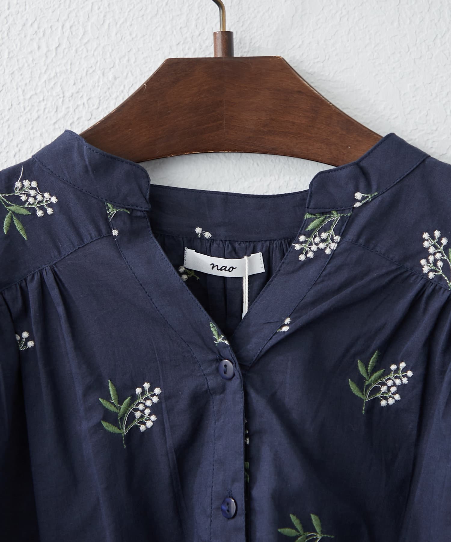 ・花柄刺繍が全面にほどこされておりナチュラルなスタイリングにぴったりな一枚です。