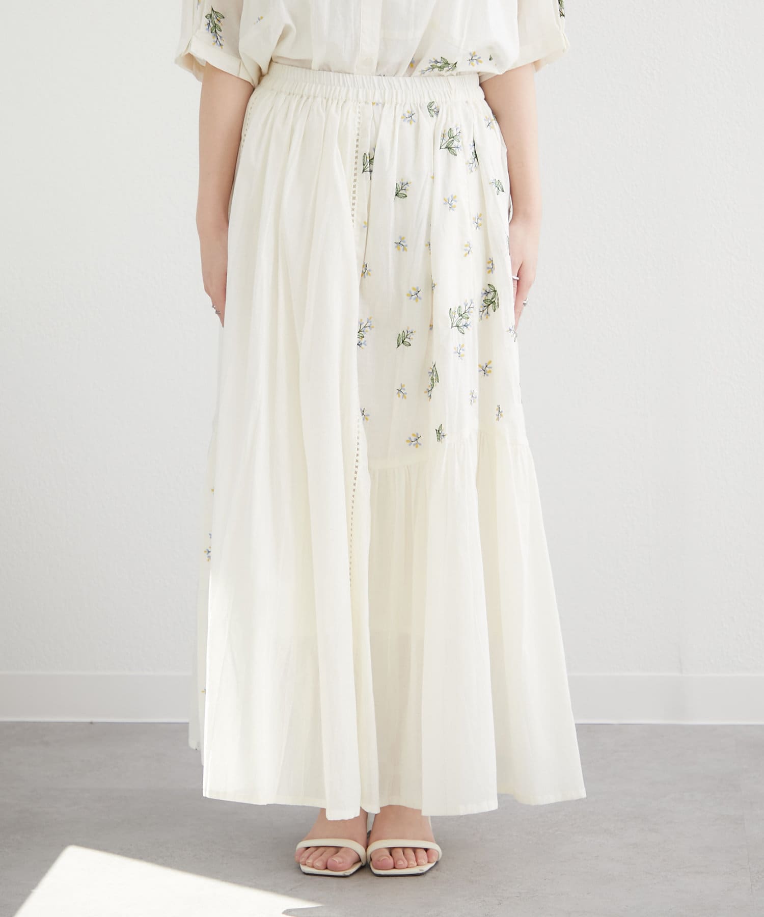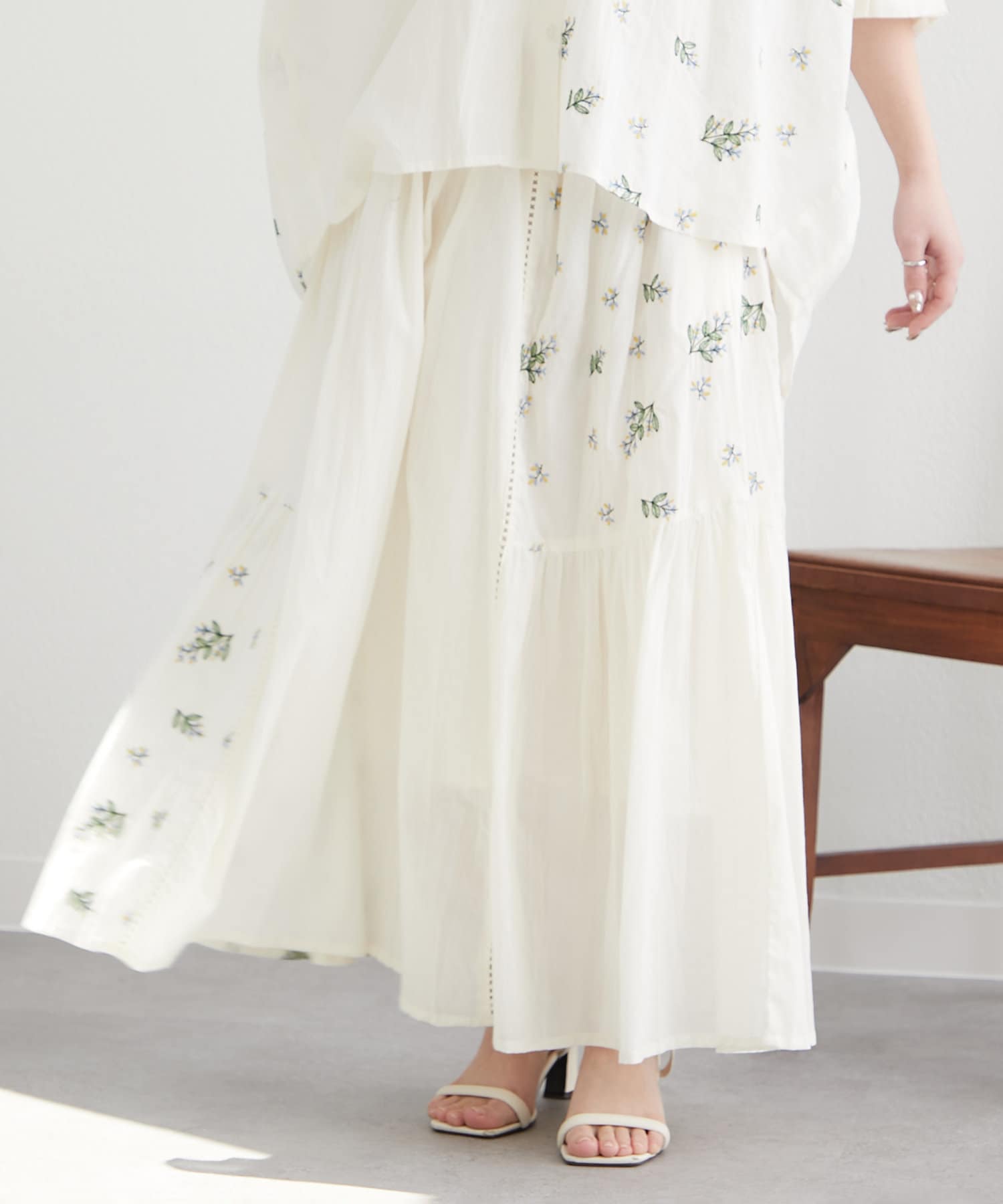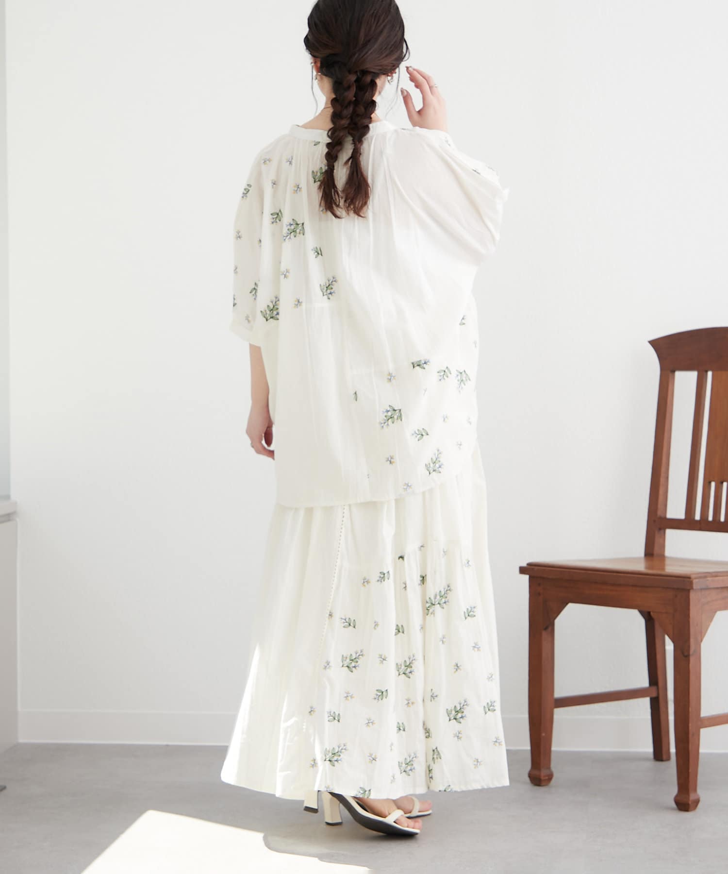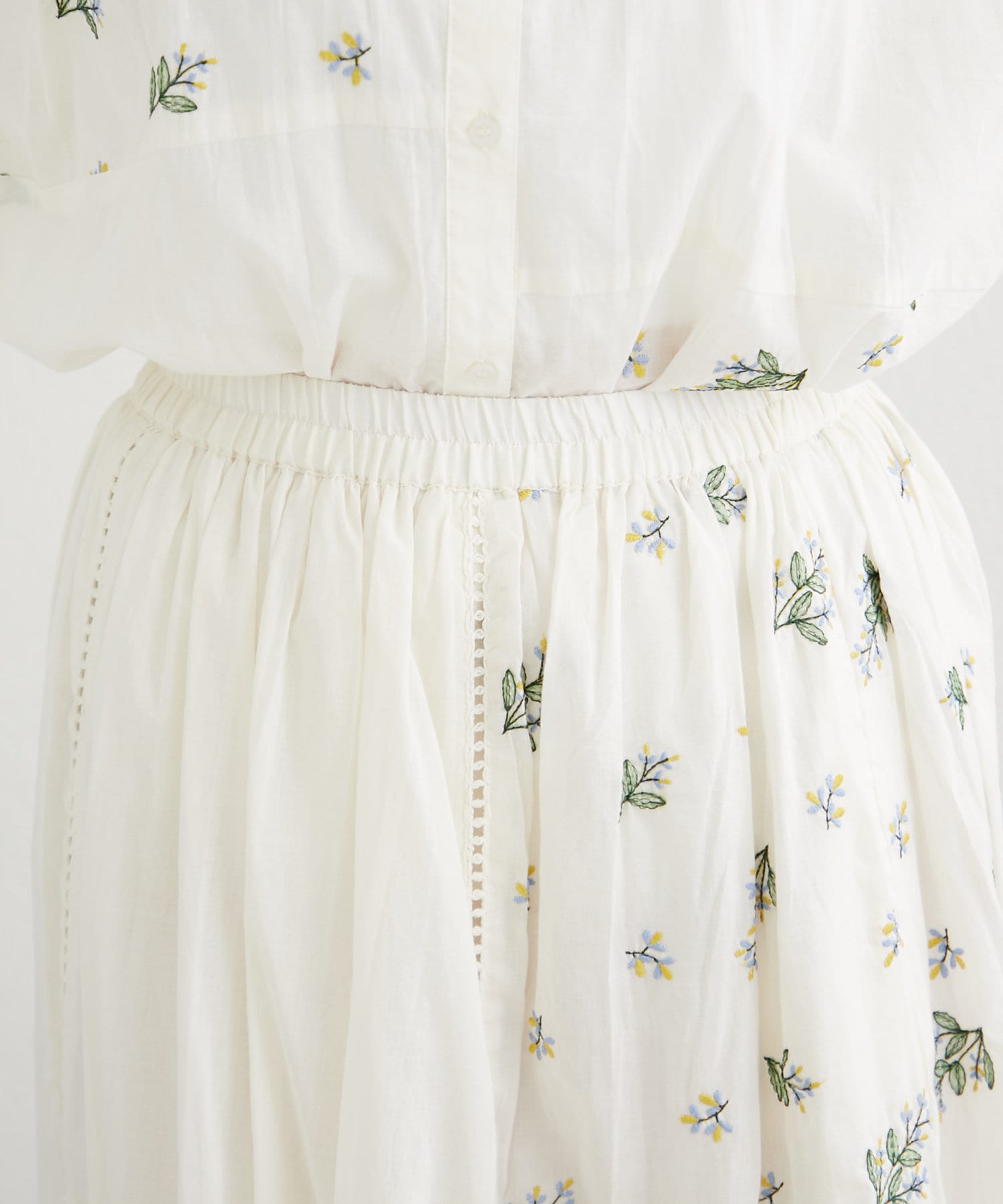 【India Series】【SETUP対応】ミモザ刺繍ギャザースカート