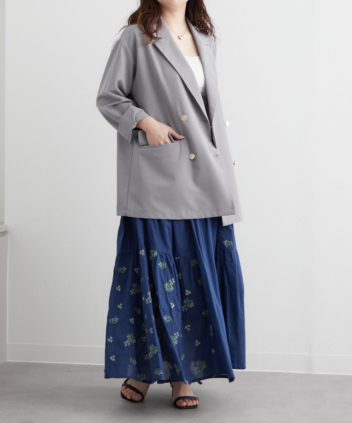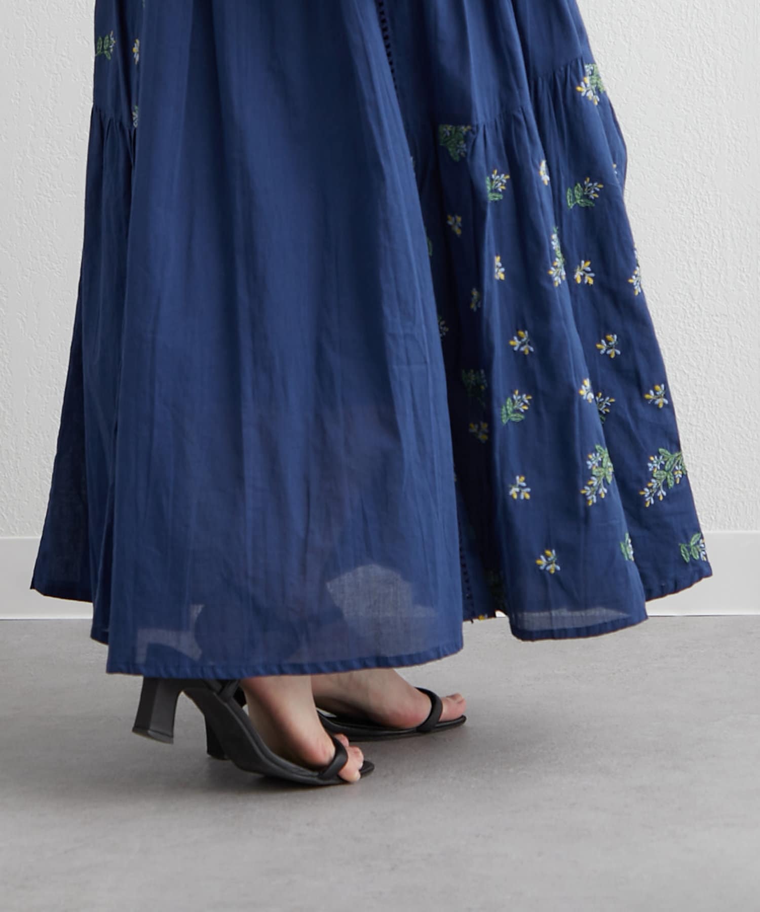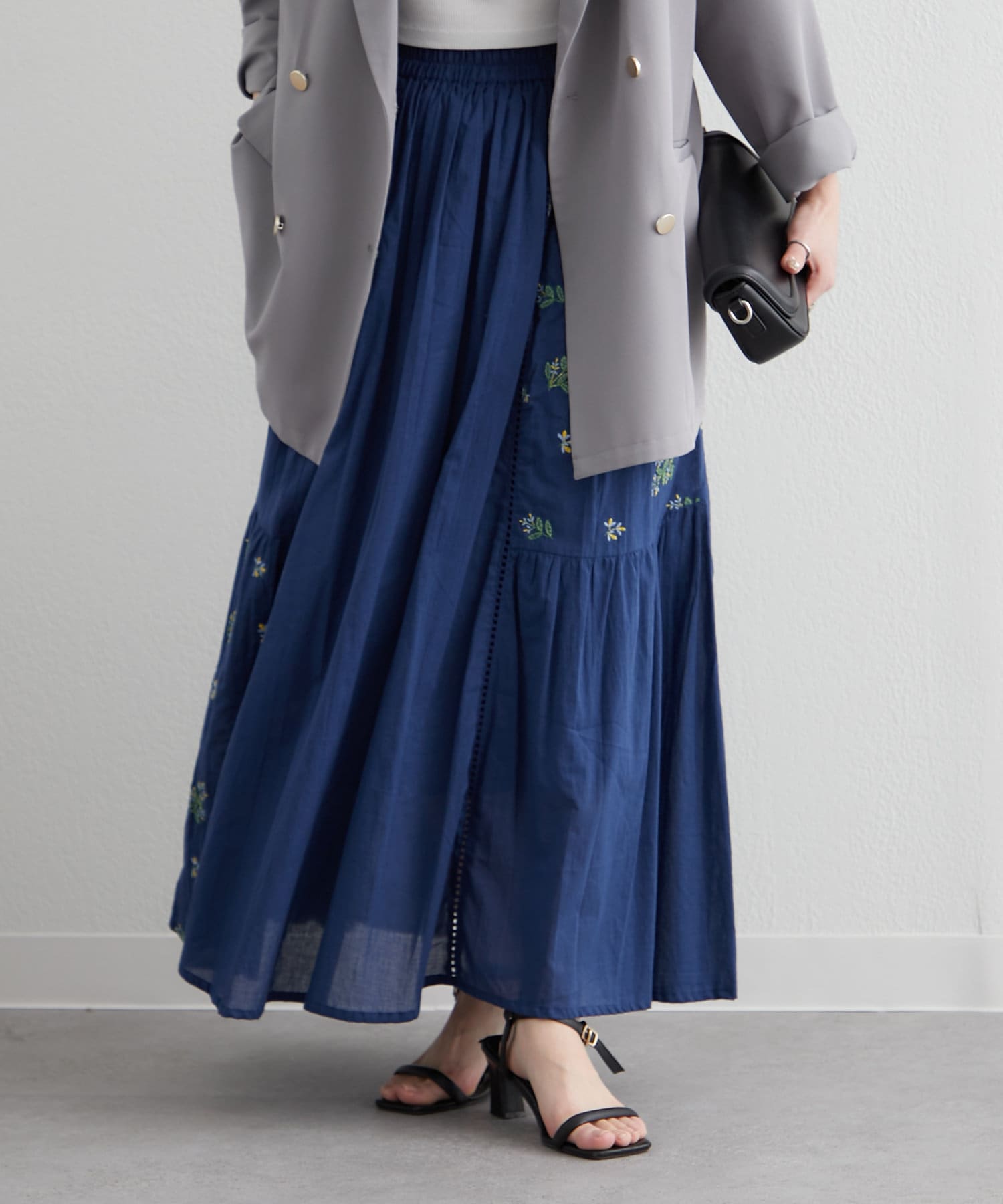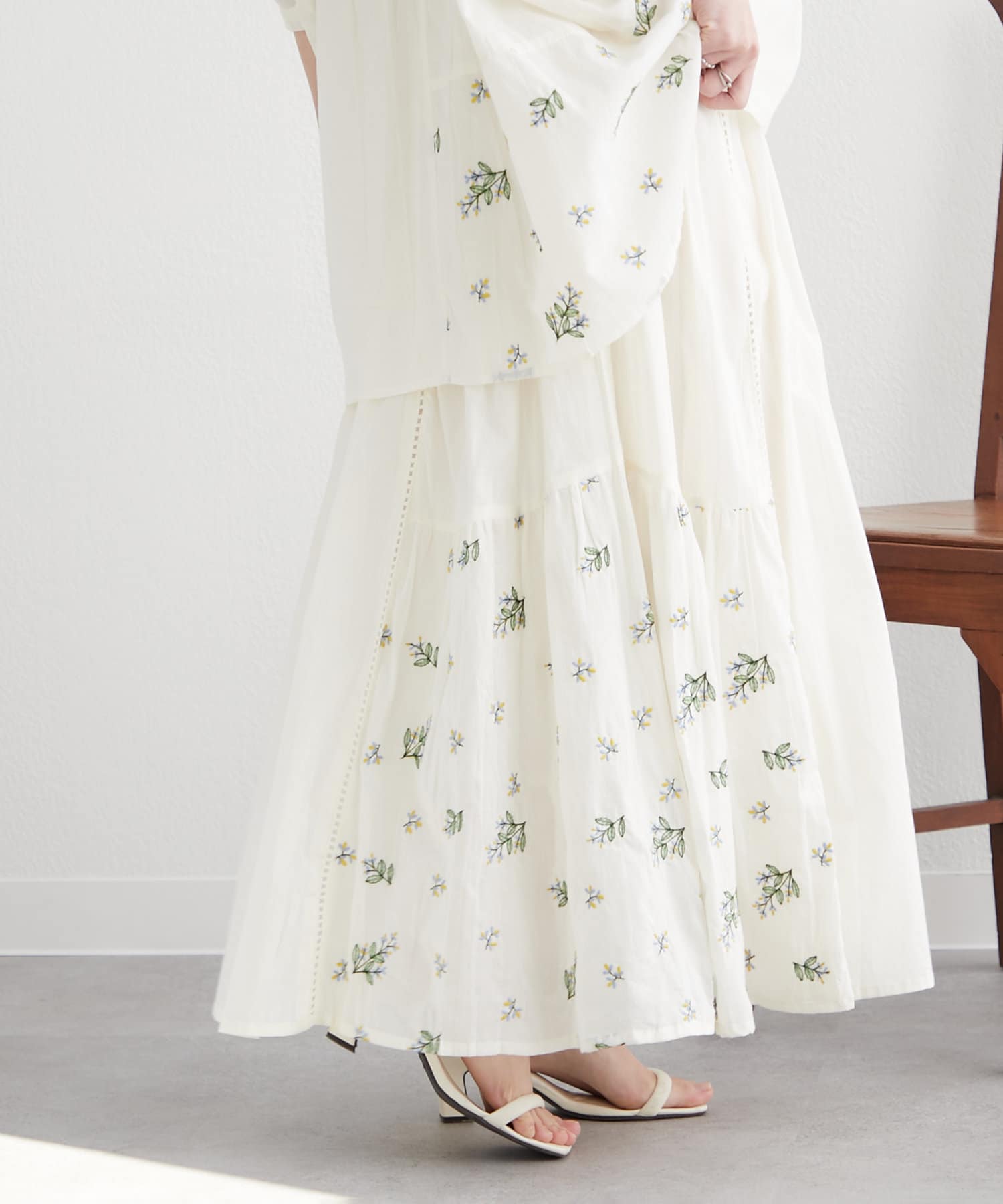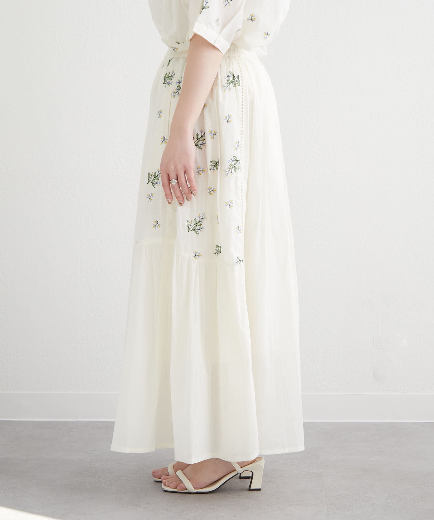 【India Series】【SETUP対応】ミモザ刺繍ギャザースカート