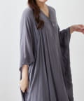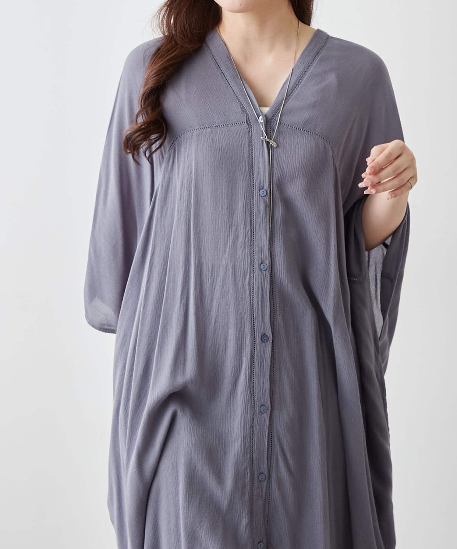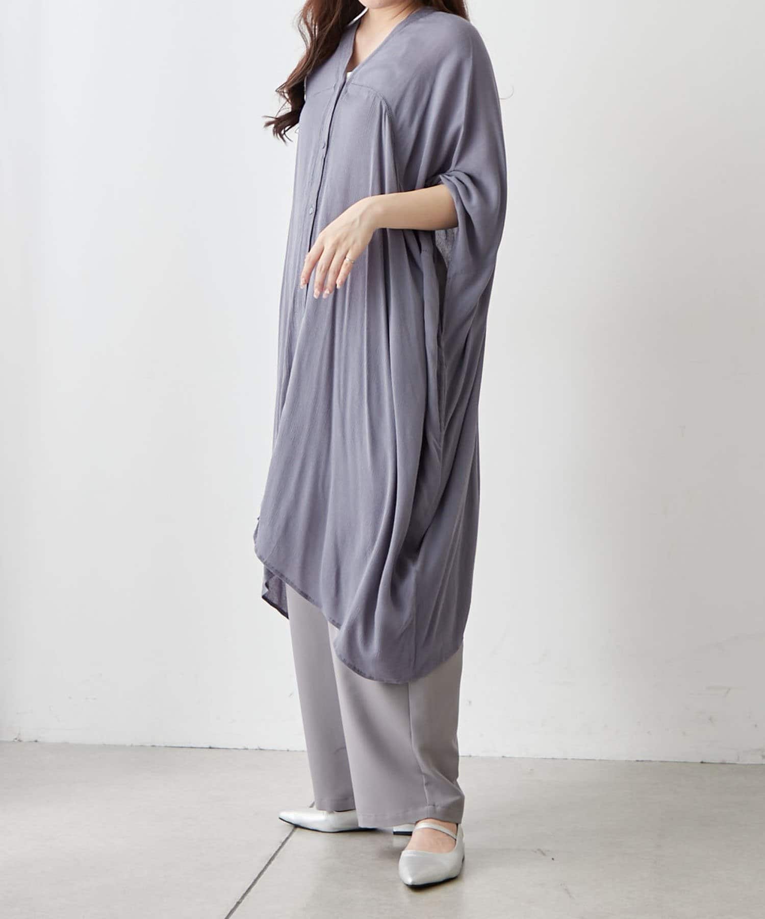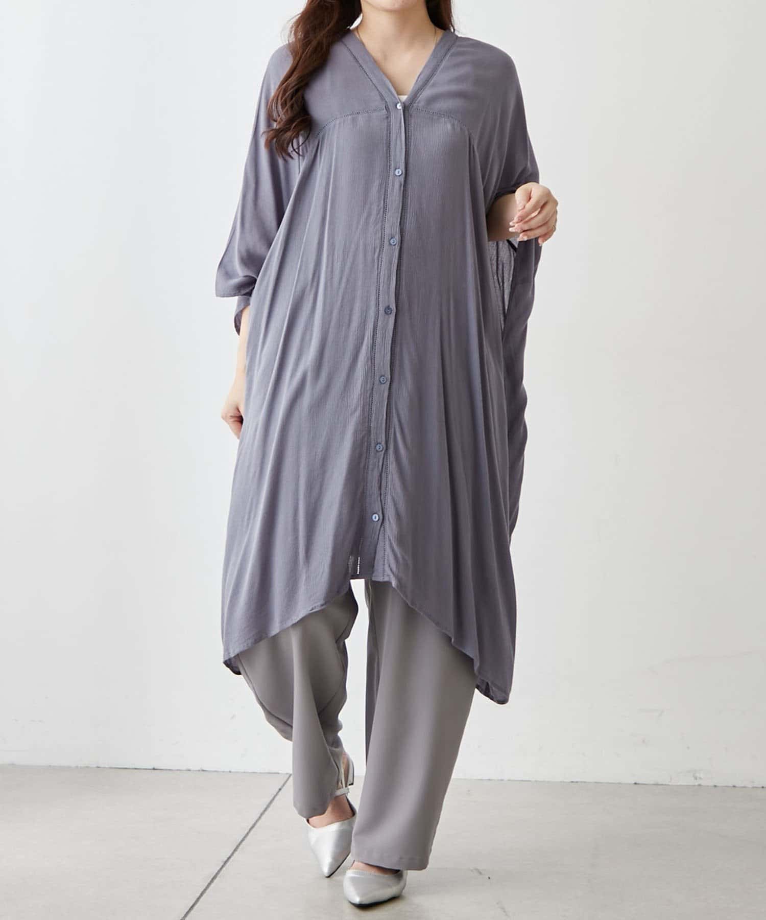 ・膝までかかるロング丈で、さりげない体型カバーが可能な一枚