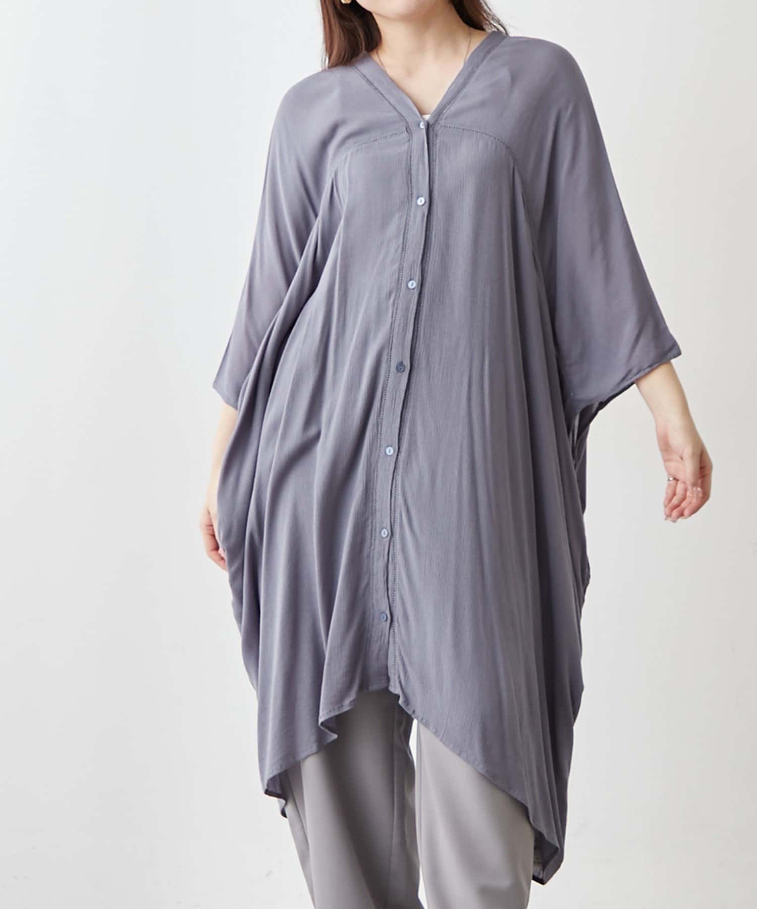 ・Vネックが首周りをすっきりと見せてくれるブラウス