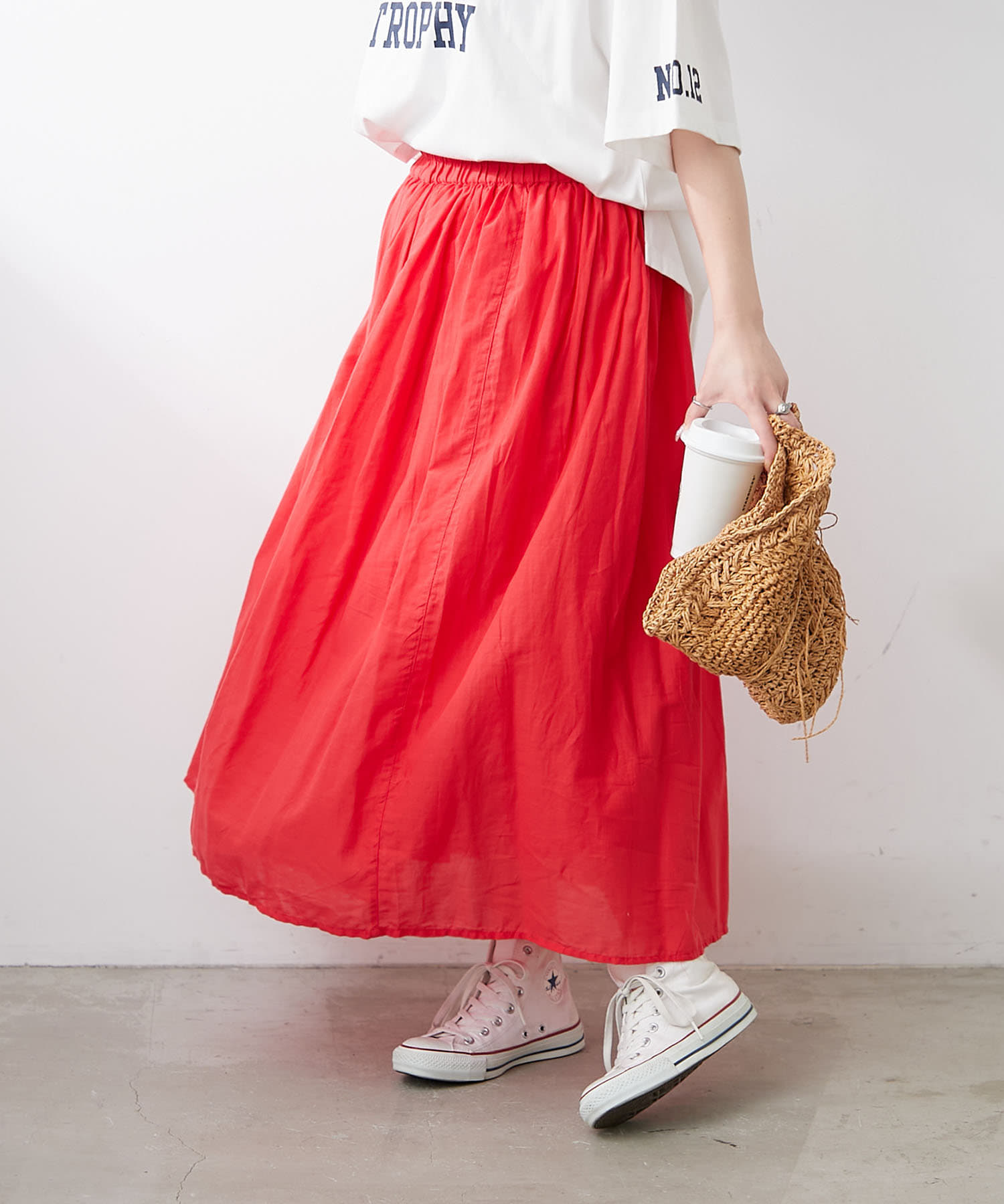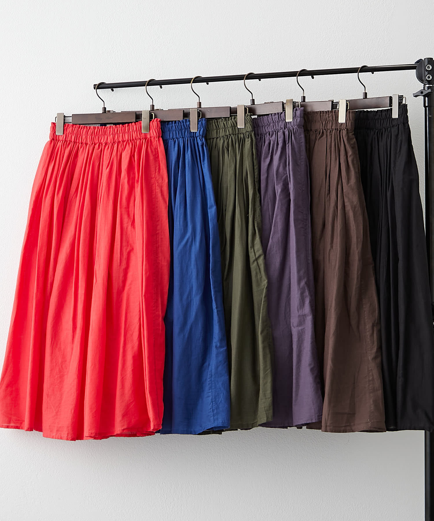 軽やかに揺れる【RMAF】【NAO】インドコットン使用カラーフレアスカート