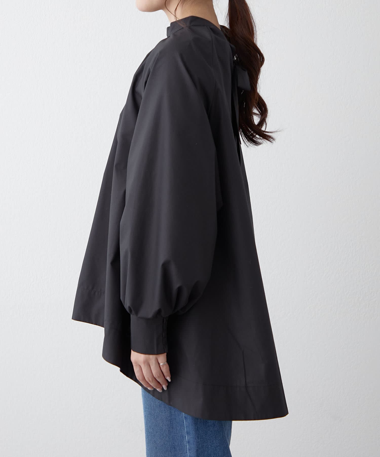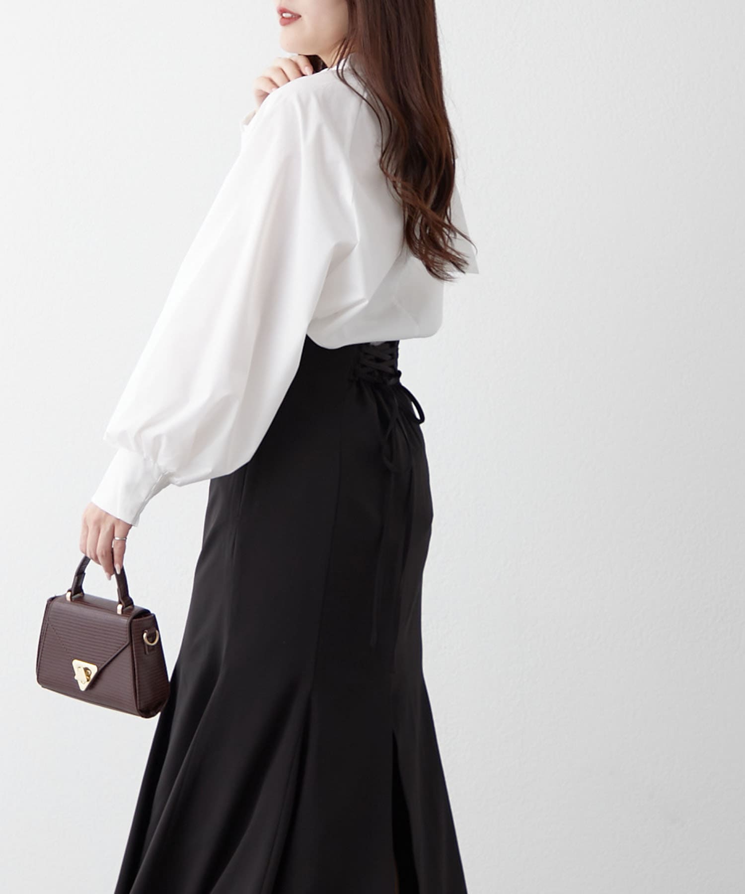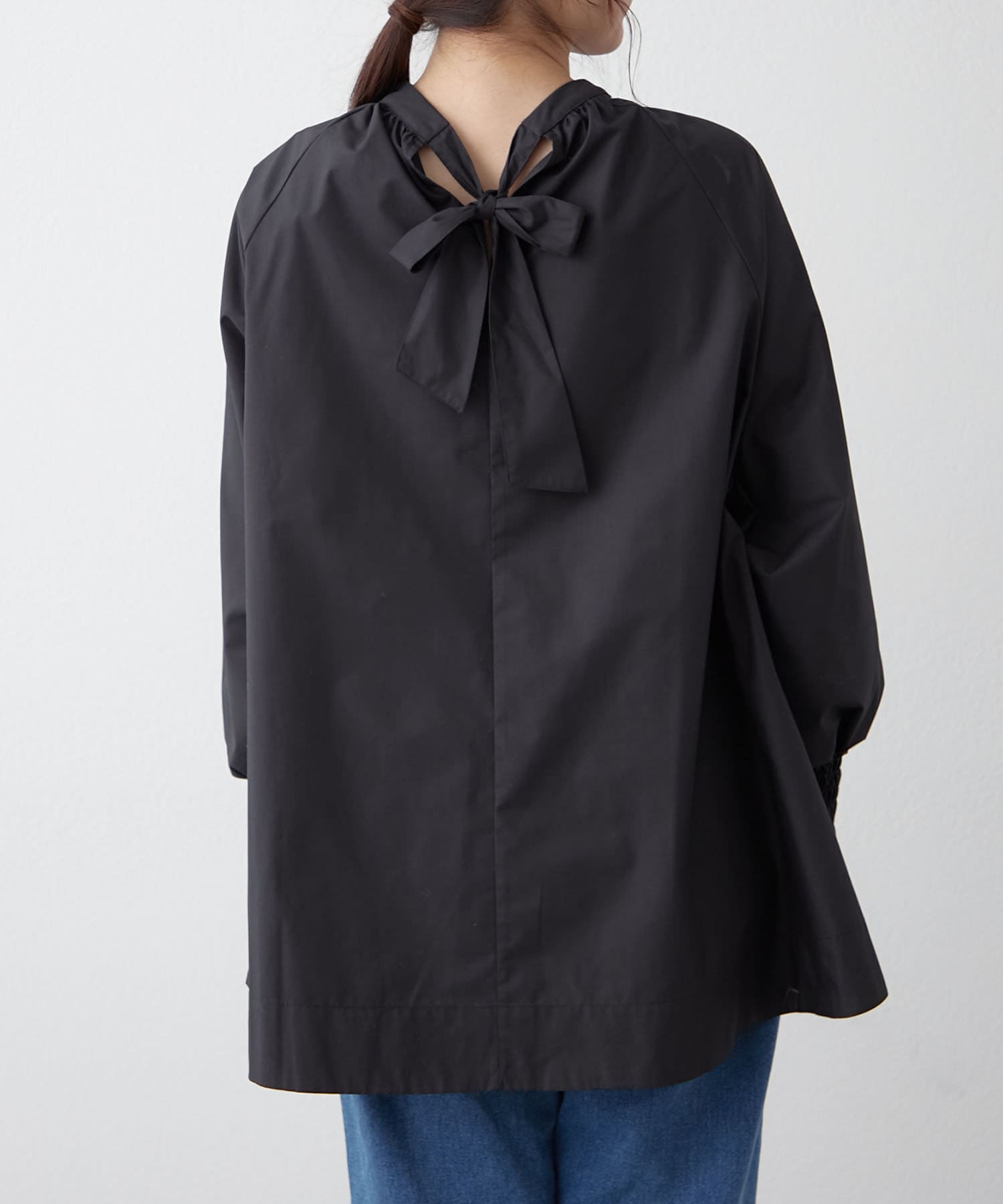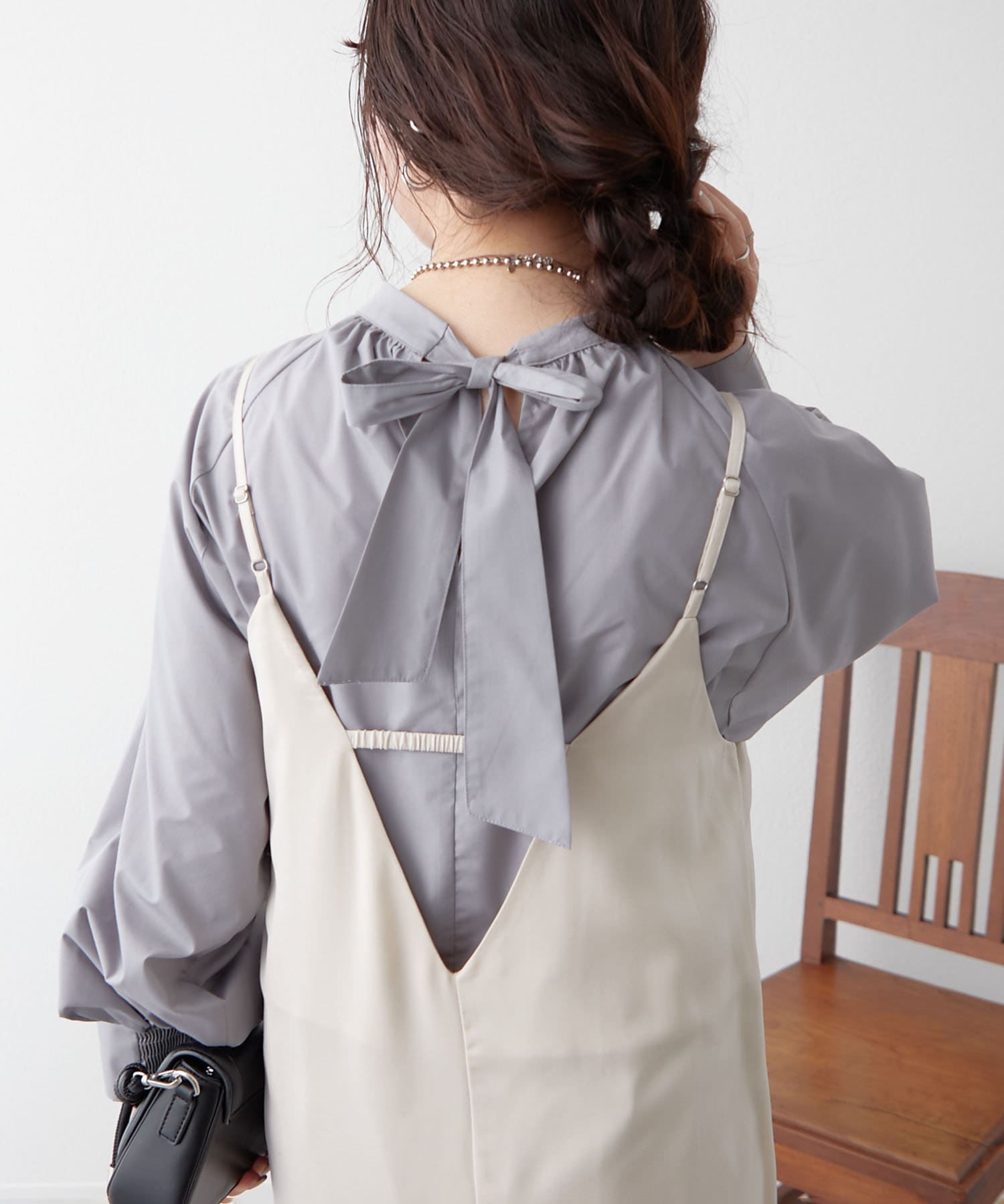 ・襟元からのボウタイ紐をアレンジすることで1枚でも存在感のあるブラウス。