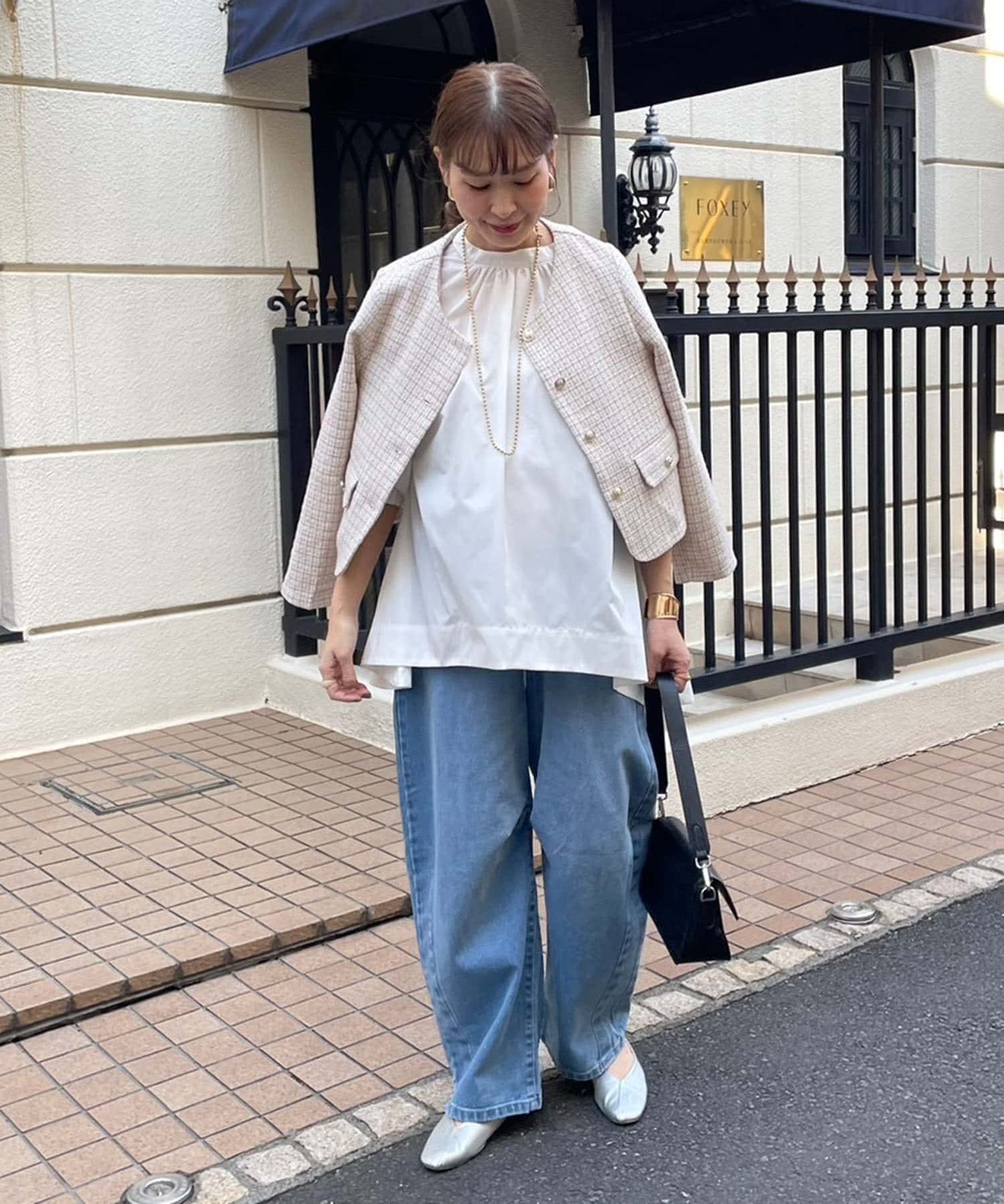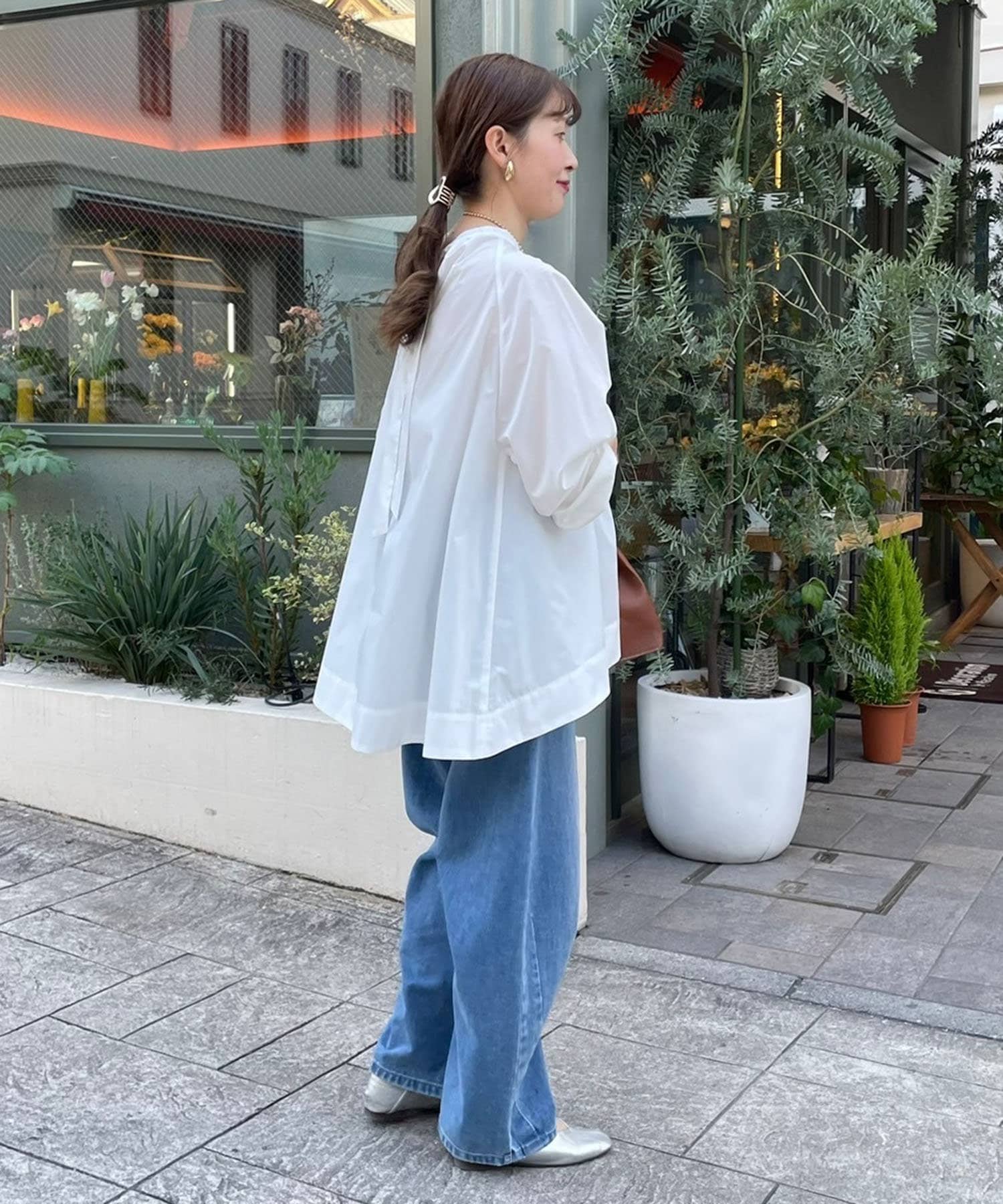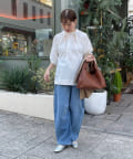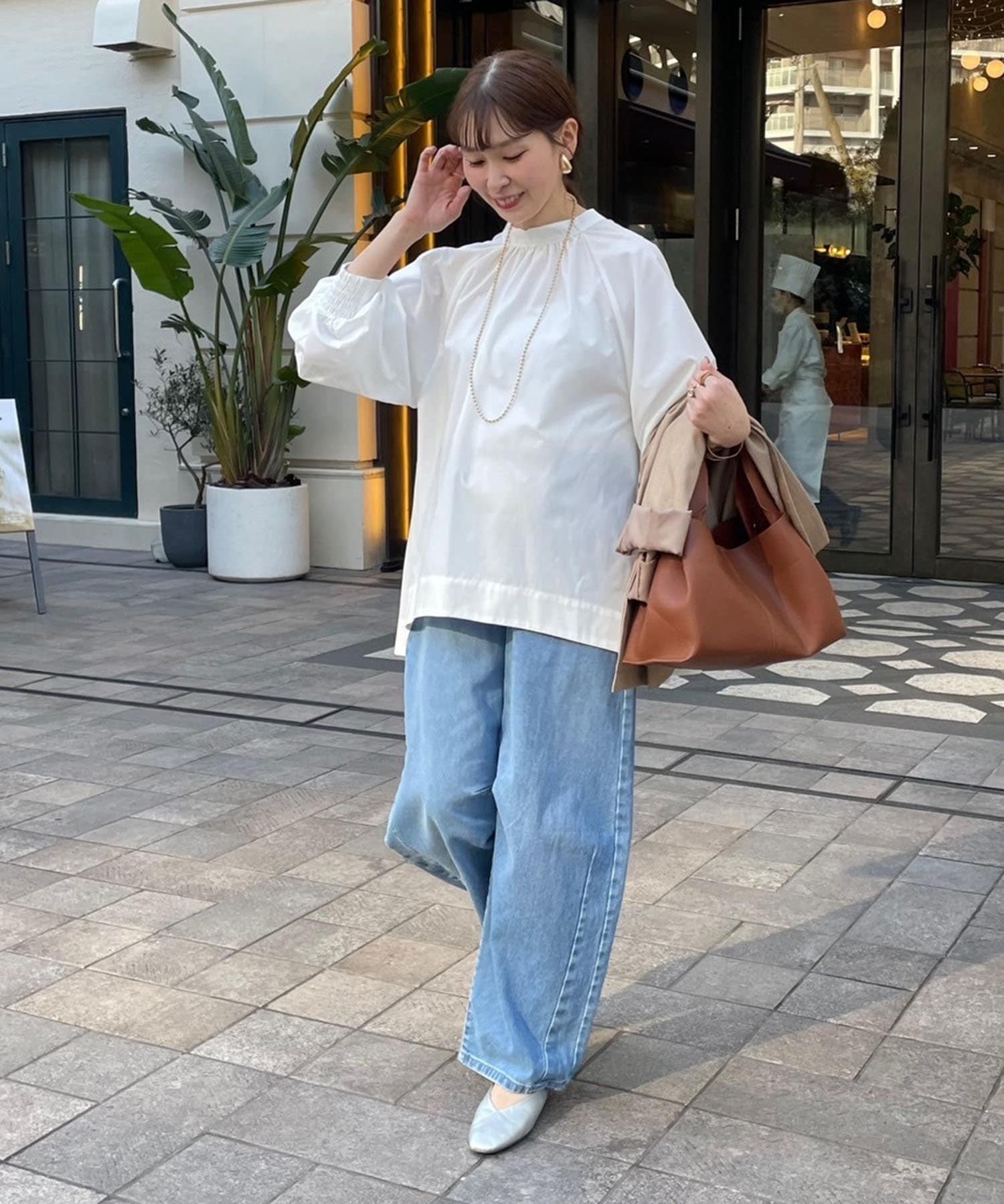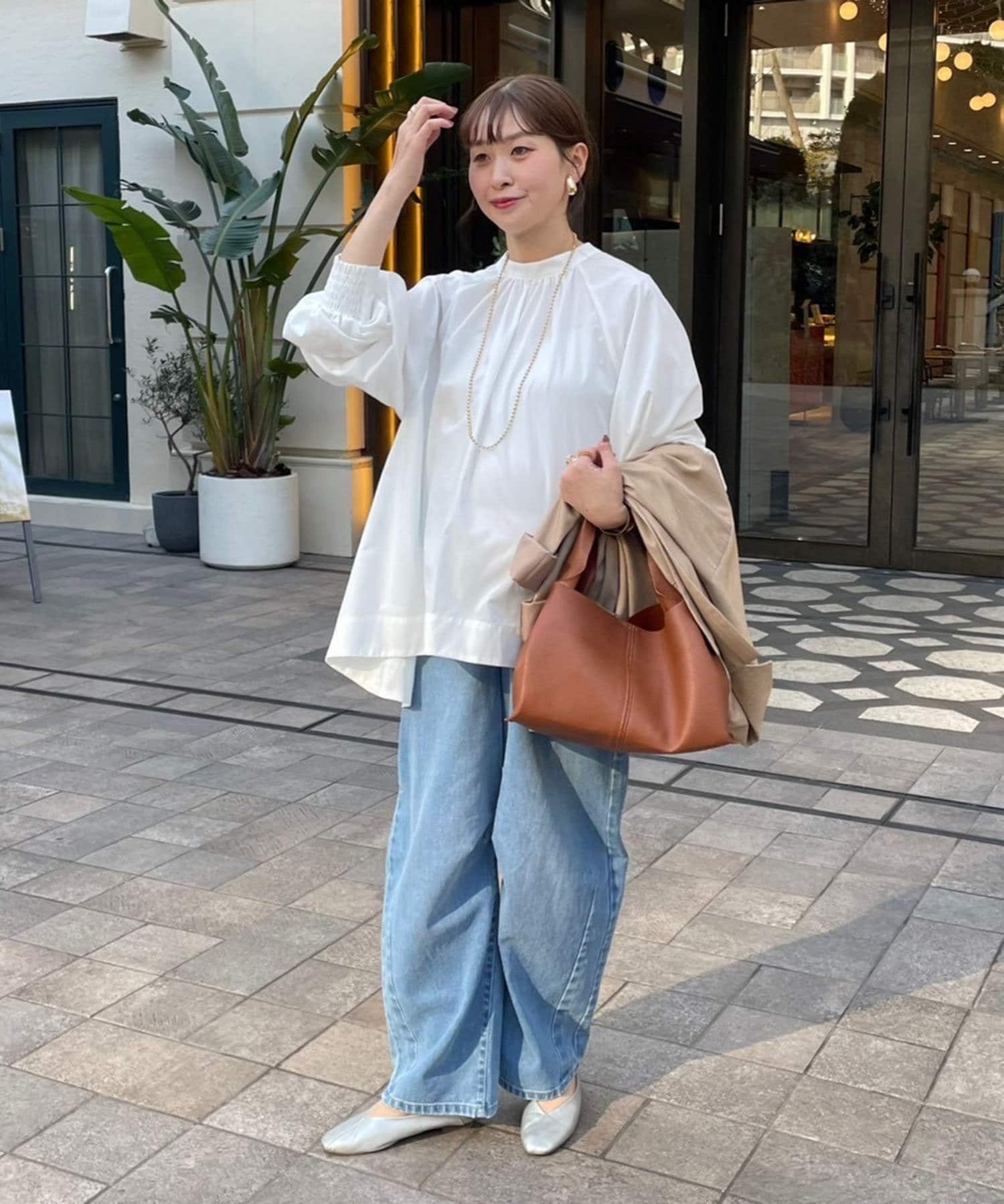 ・オフの日はデニムやトレンドの綺麗見えスウェットパンツでカジュアルなスタイリングも◎一枚着としても様になるためデイリーに活躍してくれるブラウスです。