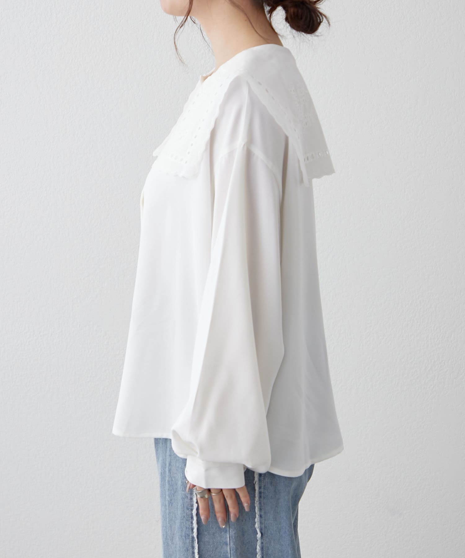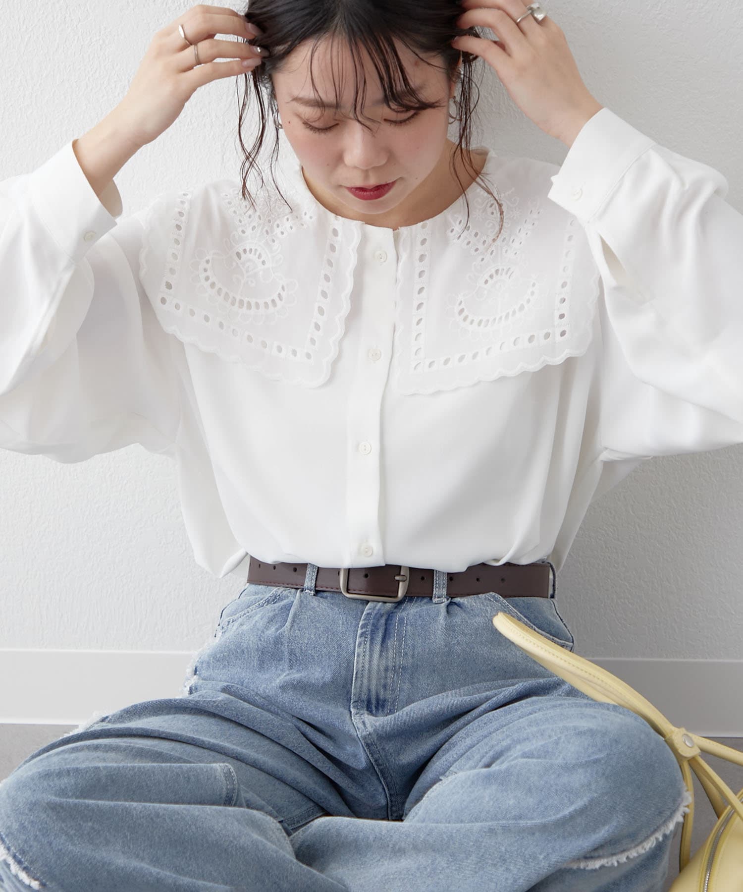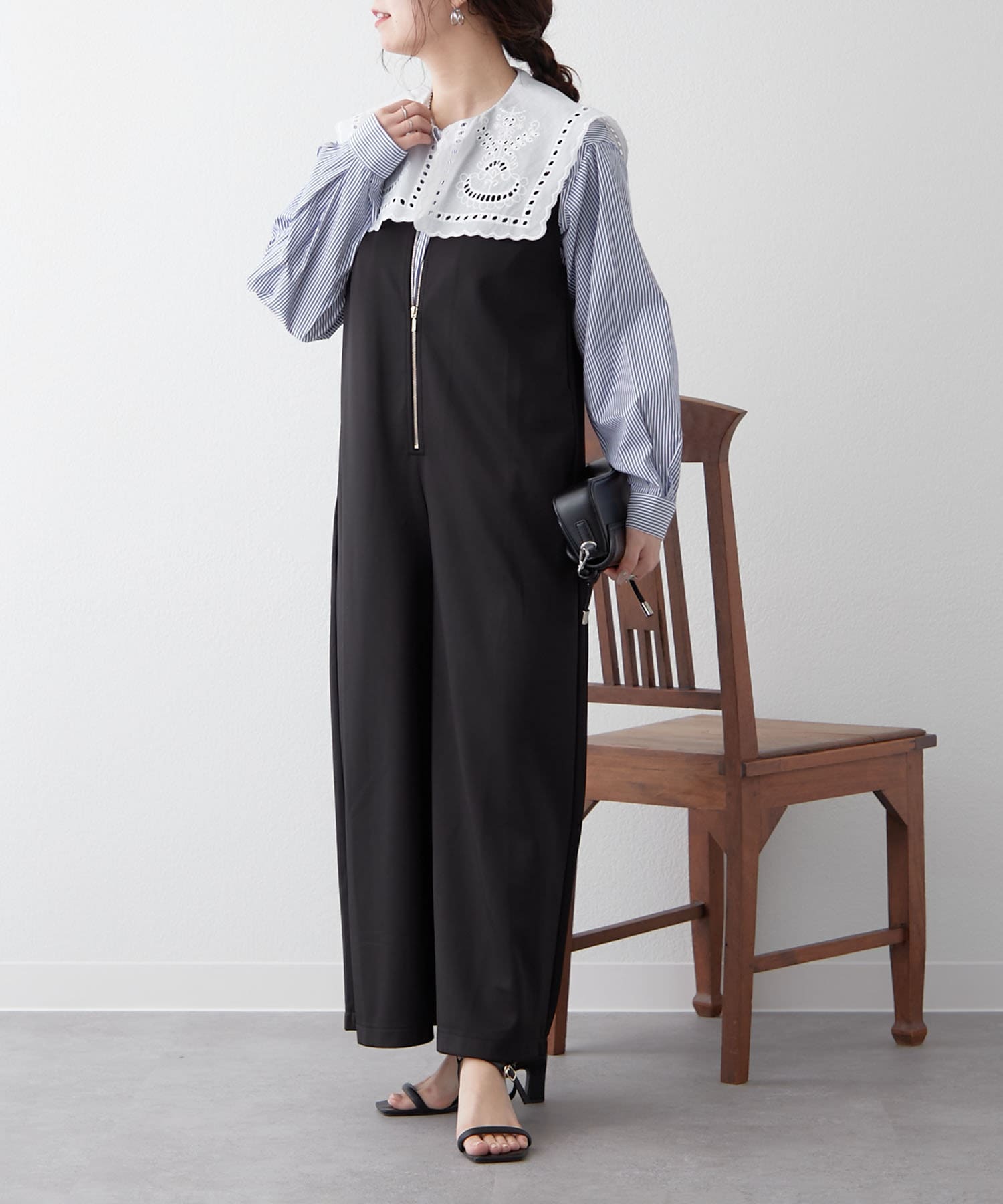 ・一枚着としてはもちろん、トップスやカーディガンとレイヤードして襟を主役にしたコーデがおすすめです。
