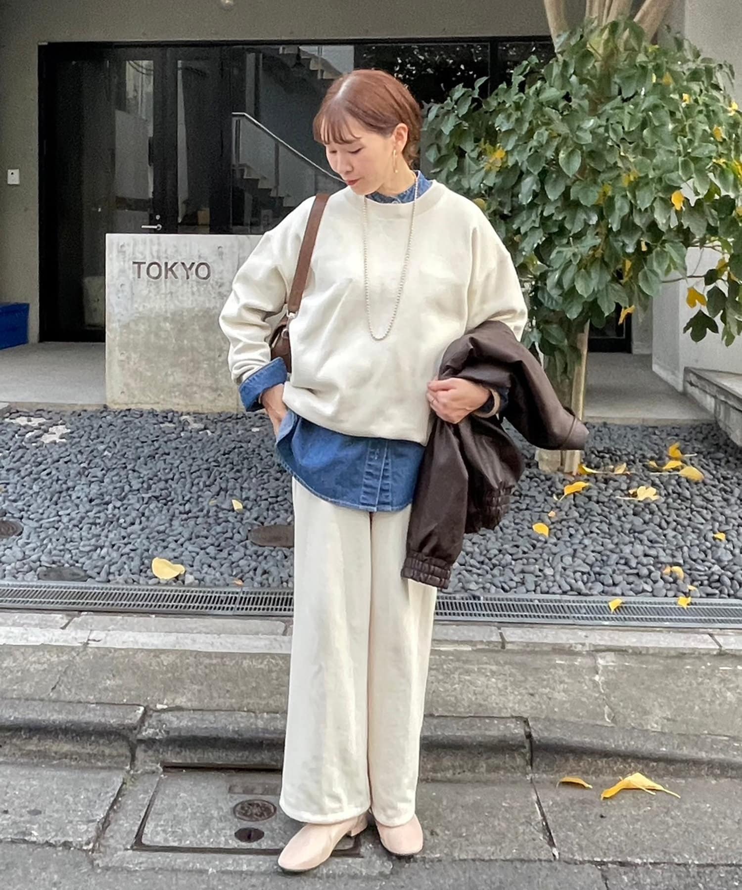 ・トレンドのスウェットパンツとの大人カジュアルコーデや、スラックス・ナロースカートと合わせたきれいめコーデまで合わせるアイテムで様々な着こなしが楽しめます。