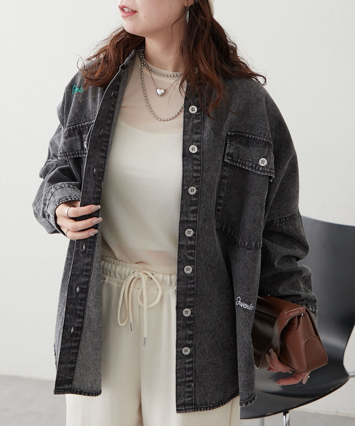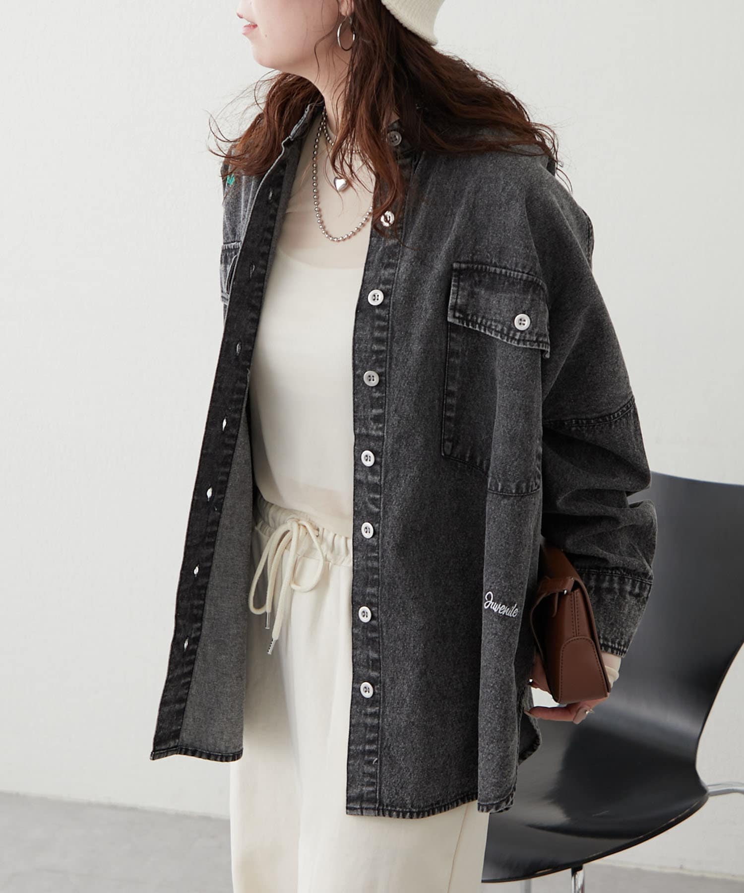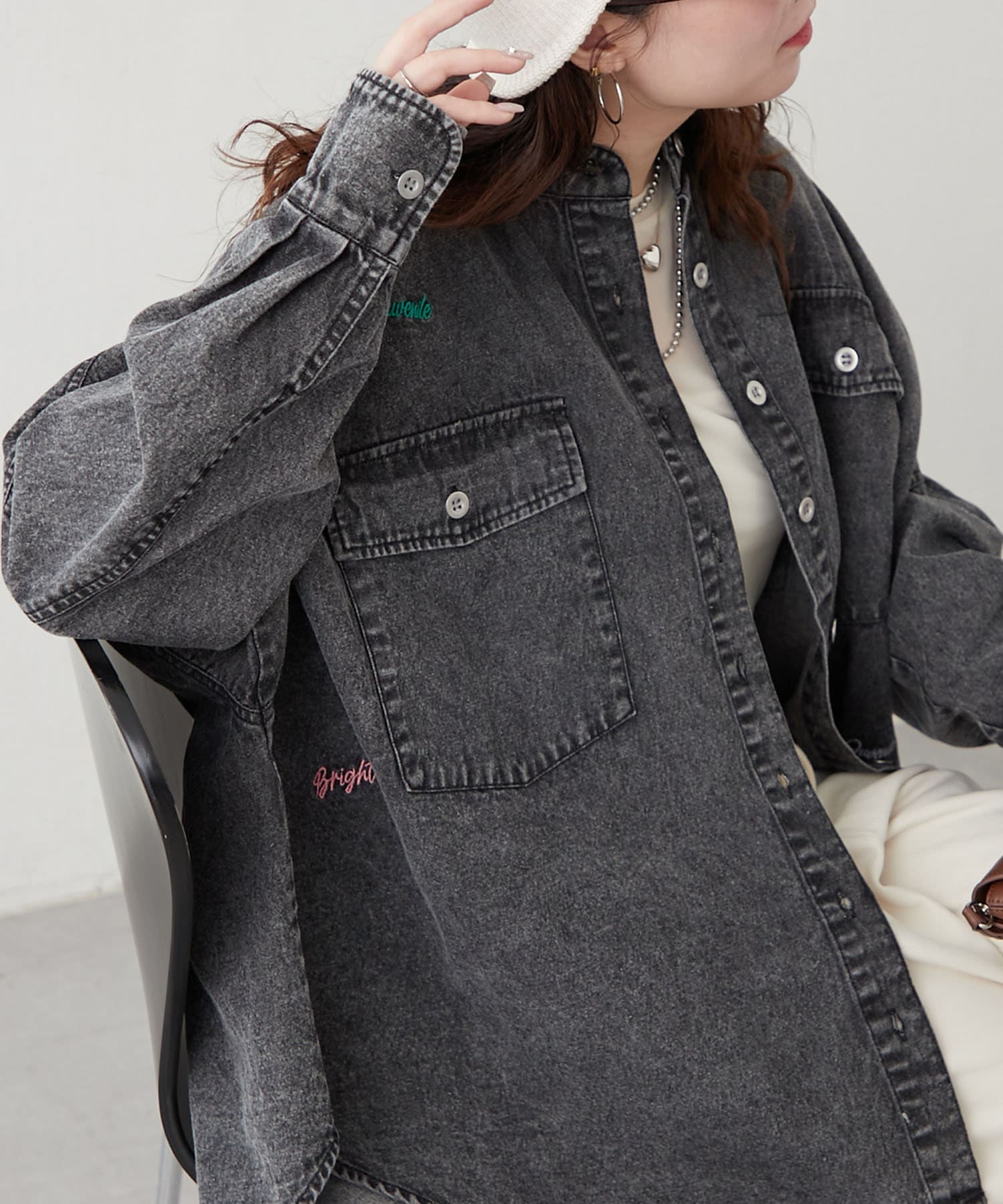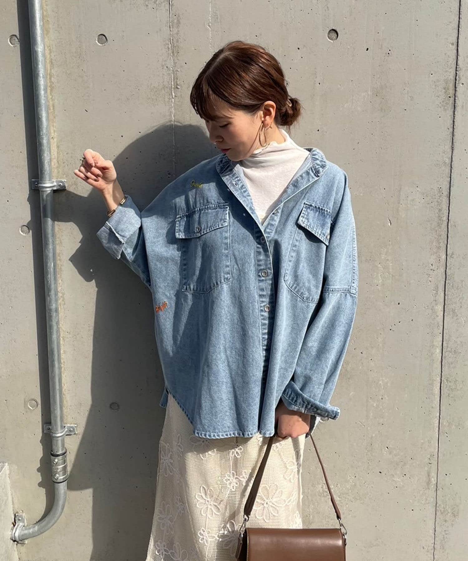 【再販決定!】【@_misato___セレクト】ロゴ刺繍デニムシャツ