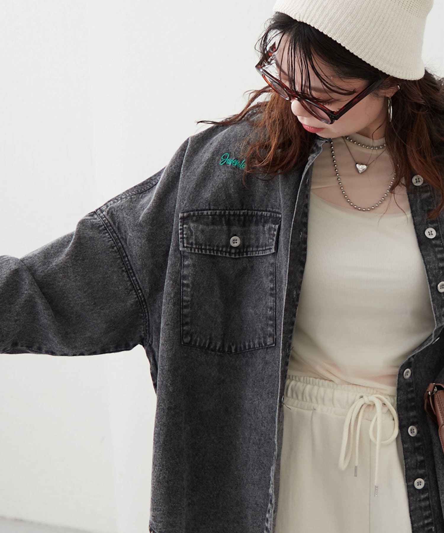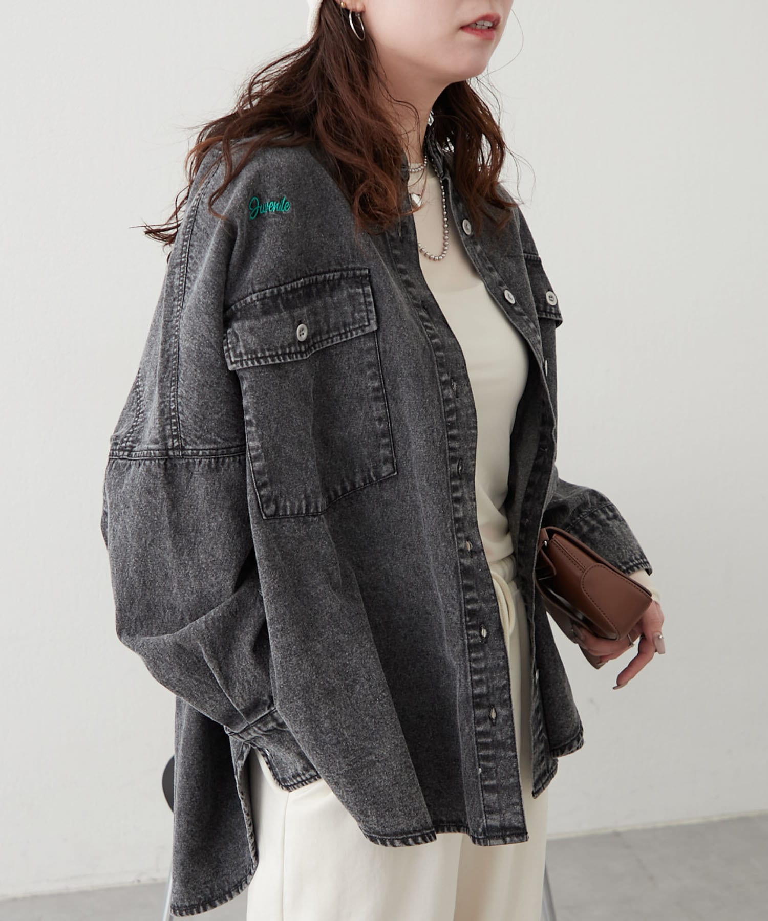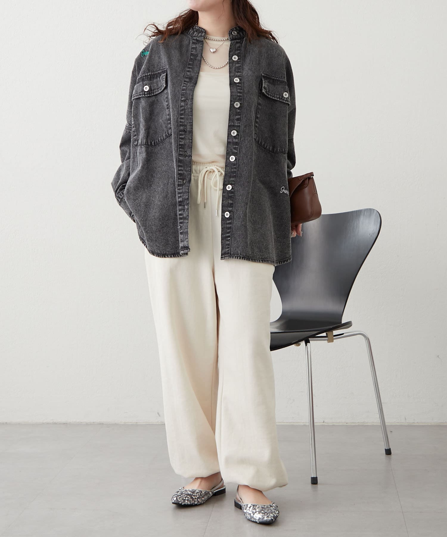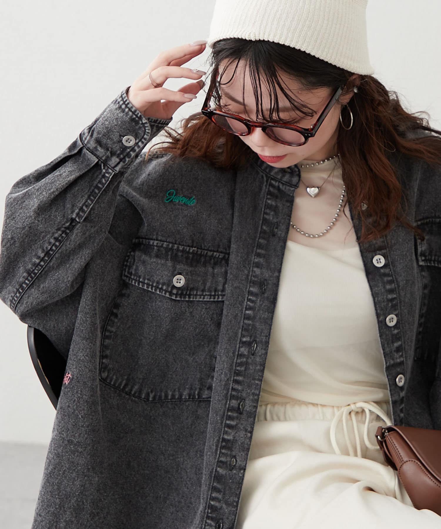 【再販決定!】【@_misato___セレクト】ロゴ刺繍デニムシャツ
