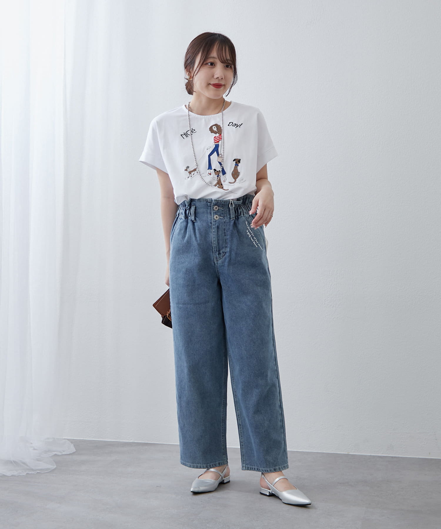 ・Tシャツをインして刺繍を活かした着こなしがオススメ