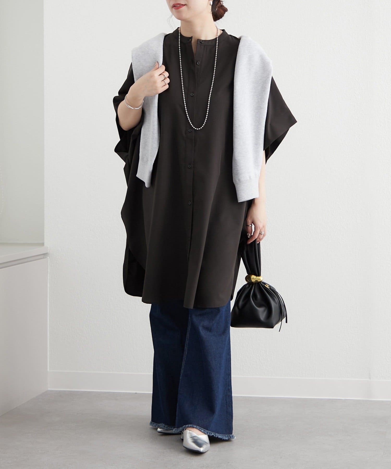 ・ノーカラーデザインが楽なのにきちんと見えさせてくれる一枚