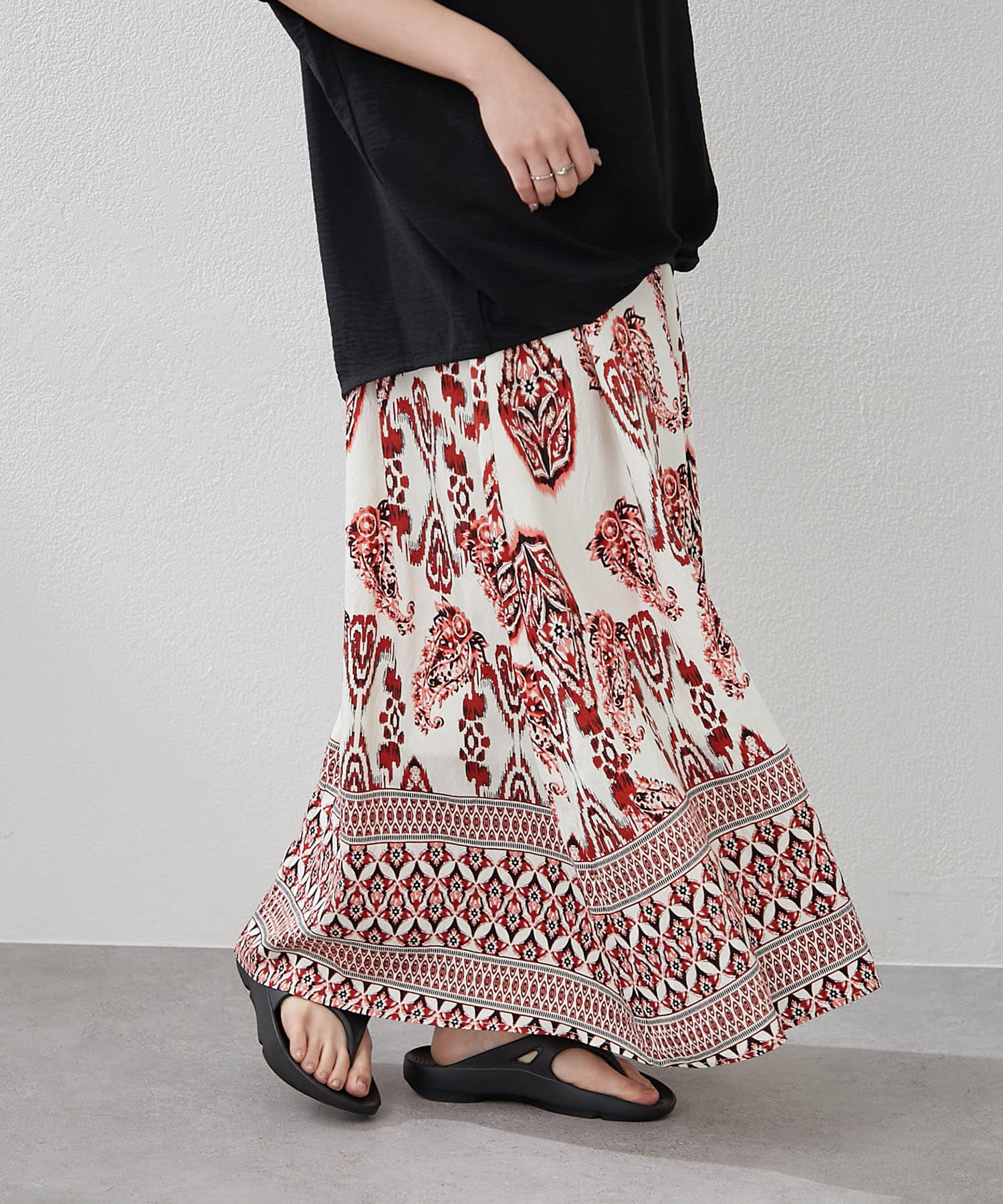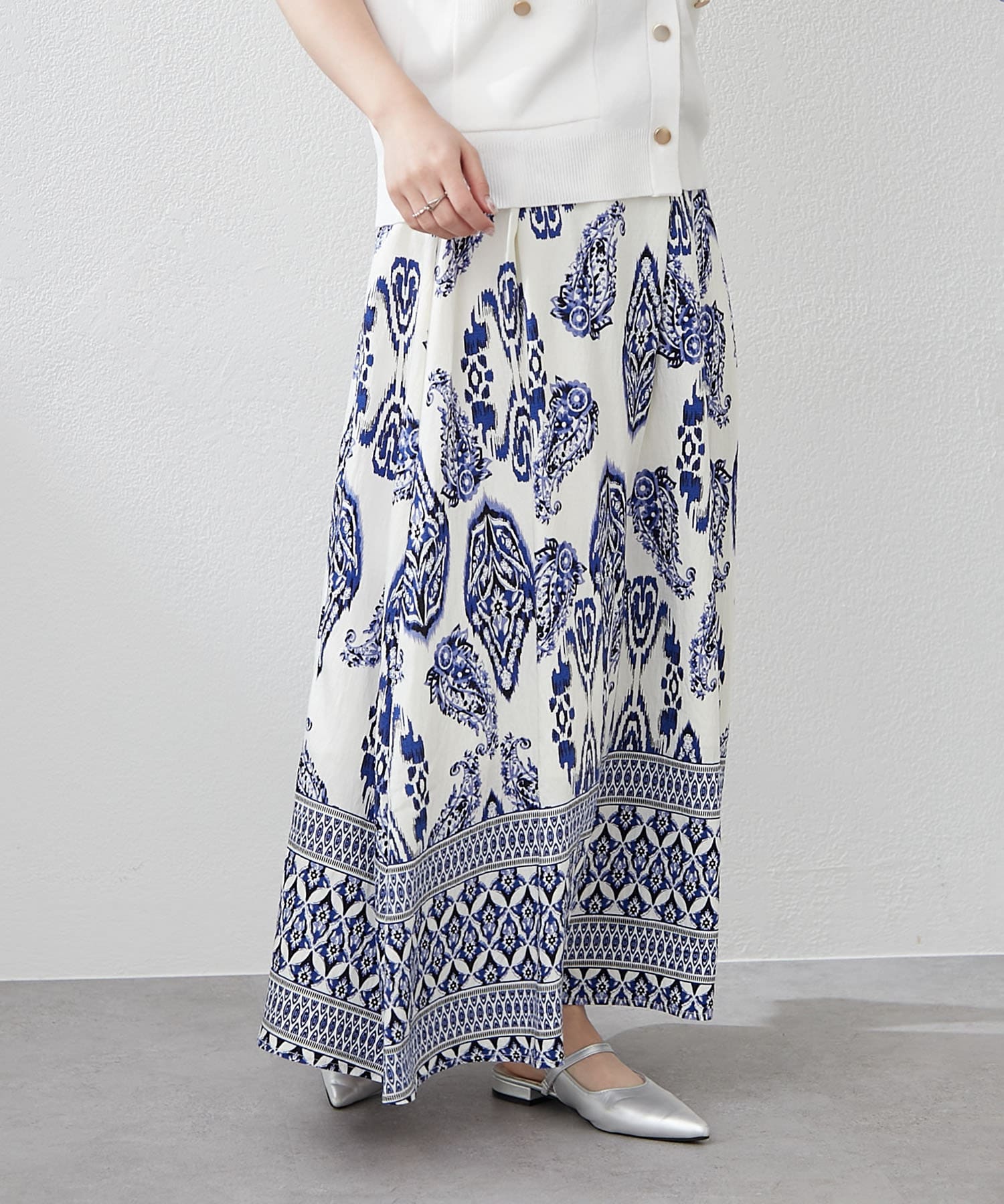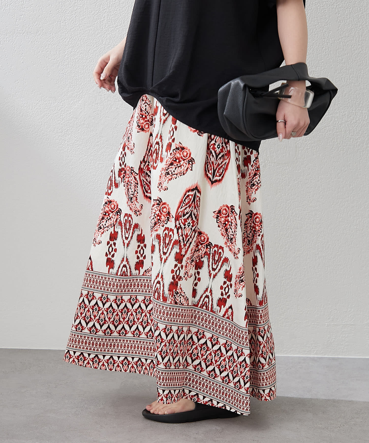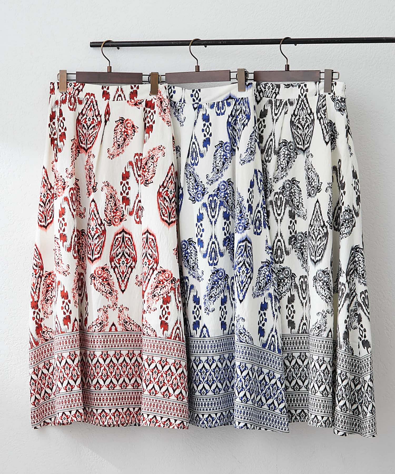 ・サマームード高まるペーズリーデザインのロングスカート