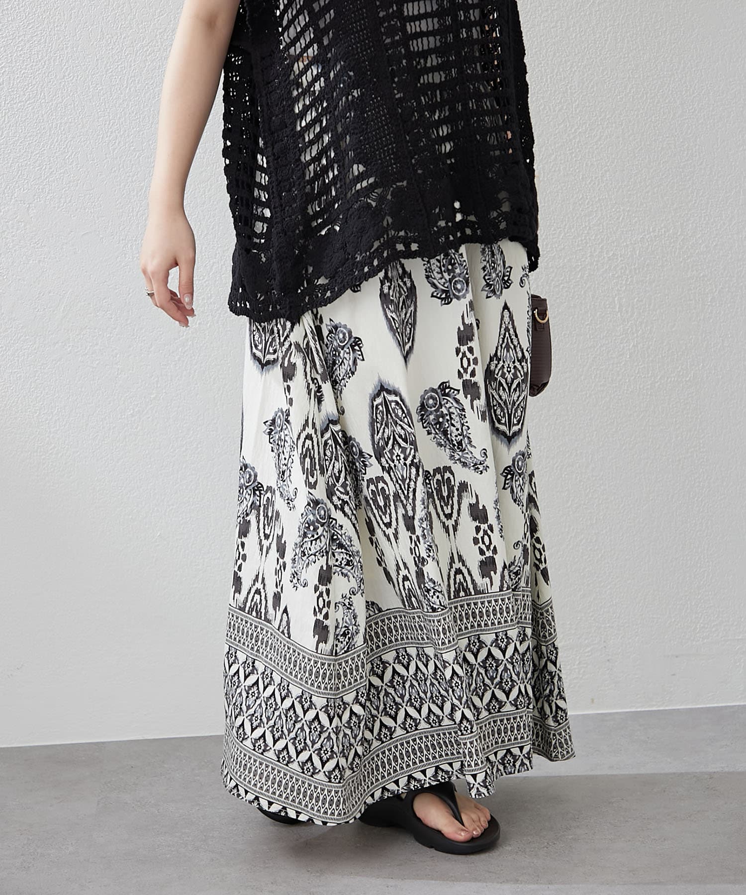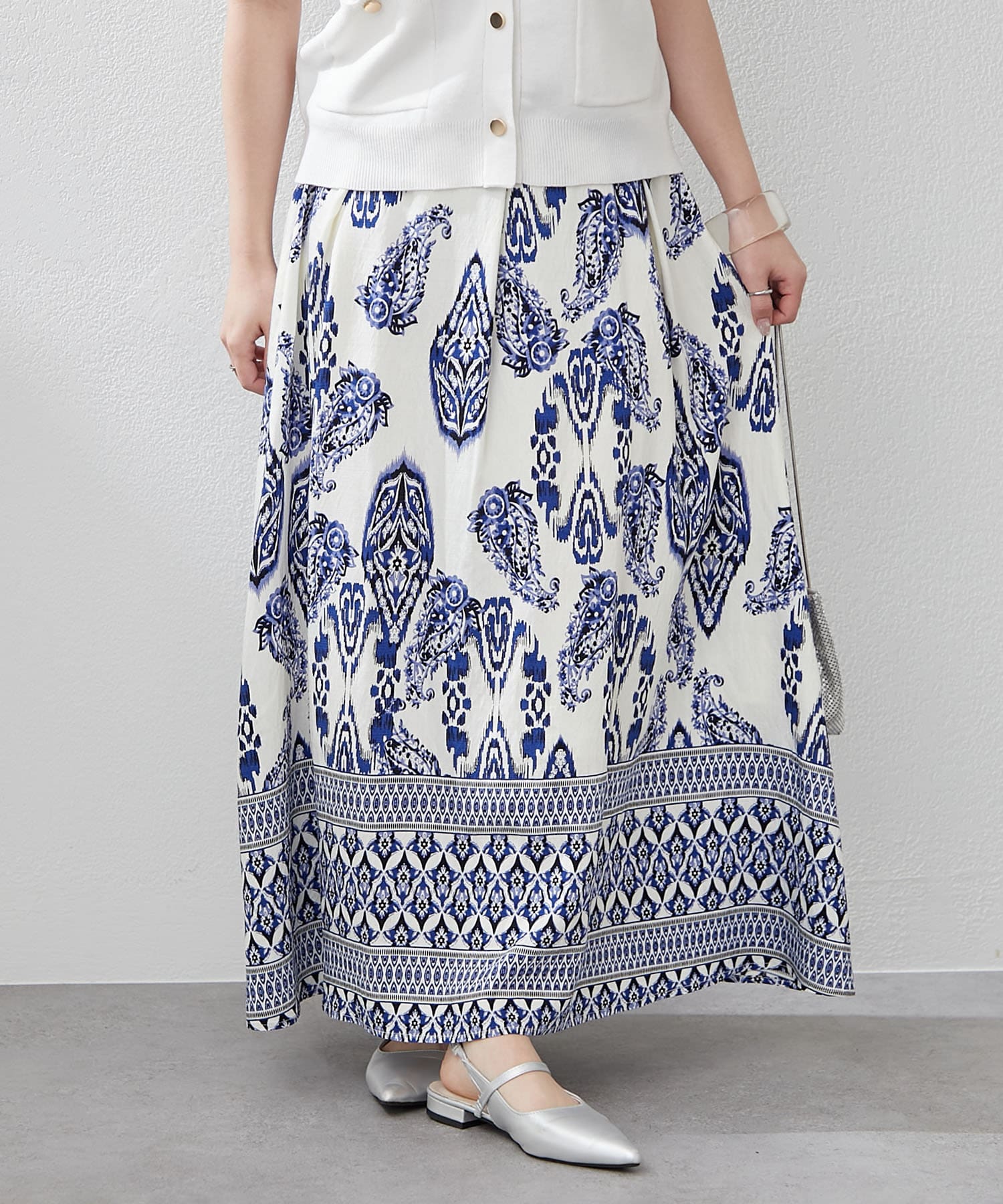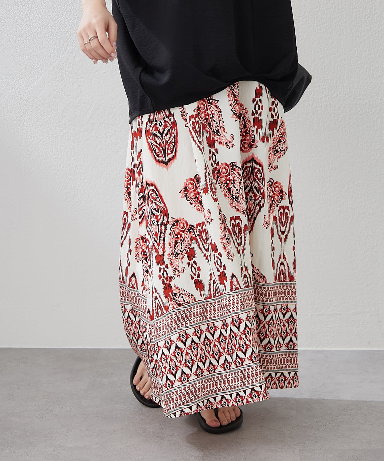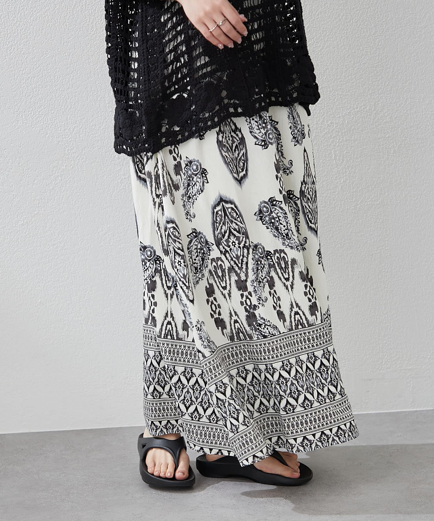 ・サマームード高まるペーズリーデザインのロングスカート