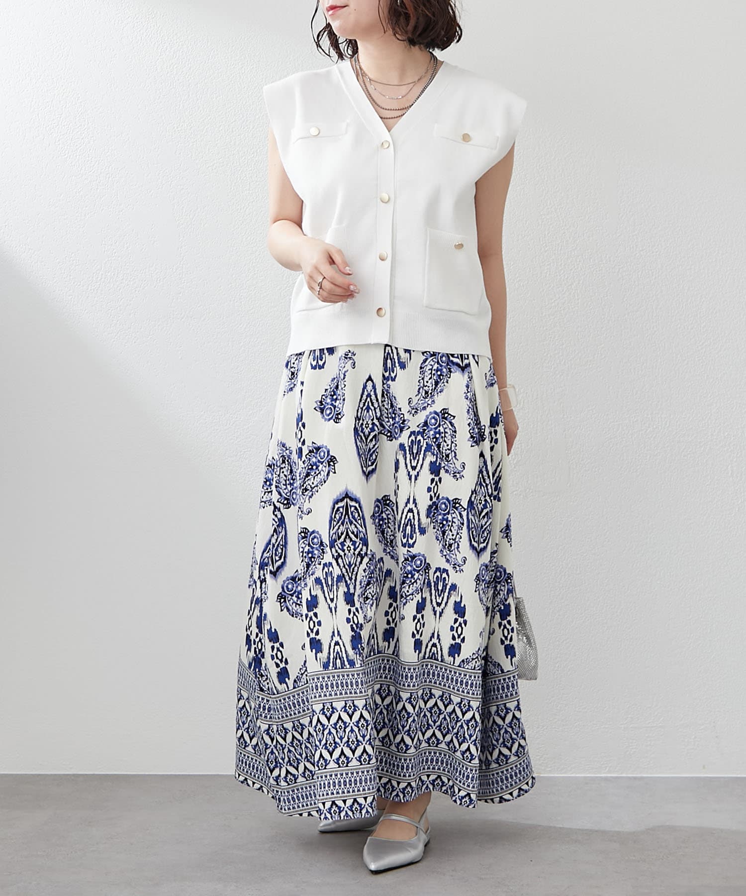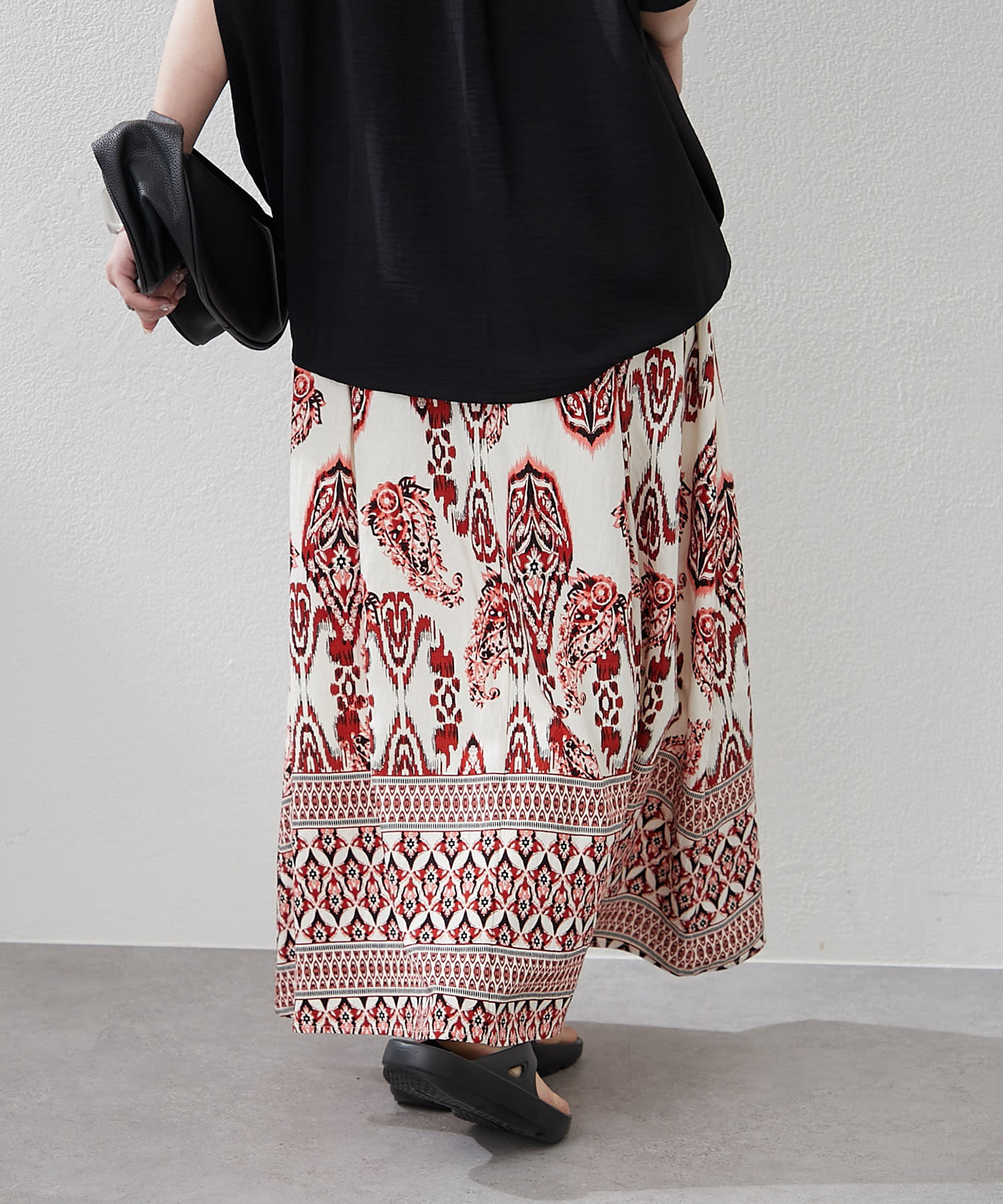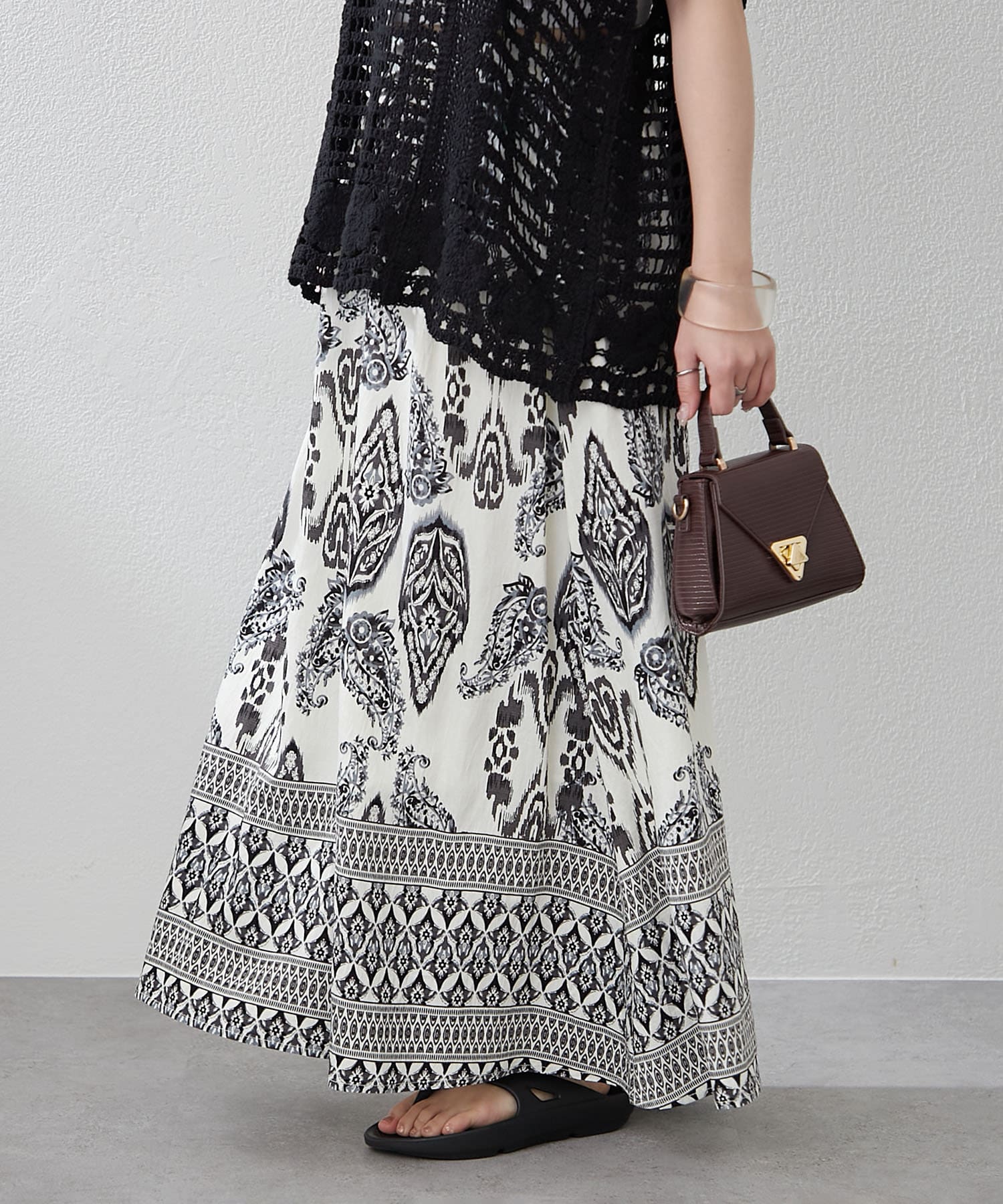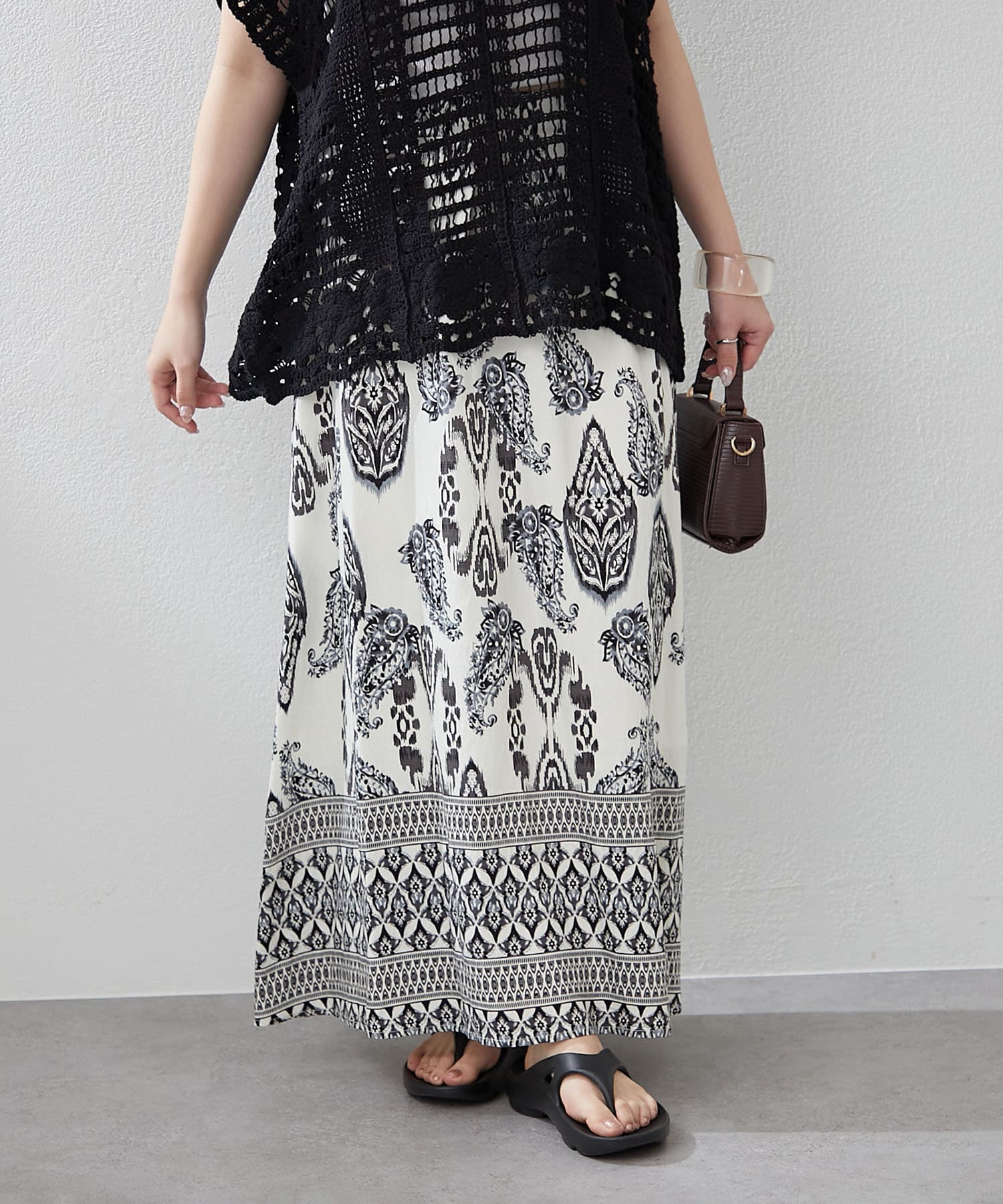 ・サマームード高まるペーズリーデザインのロングスカート