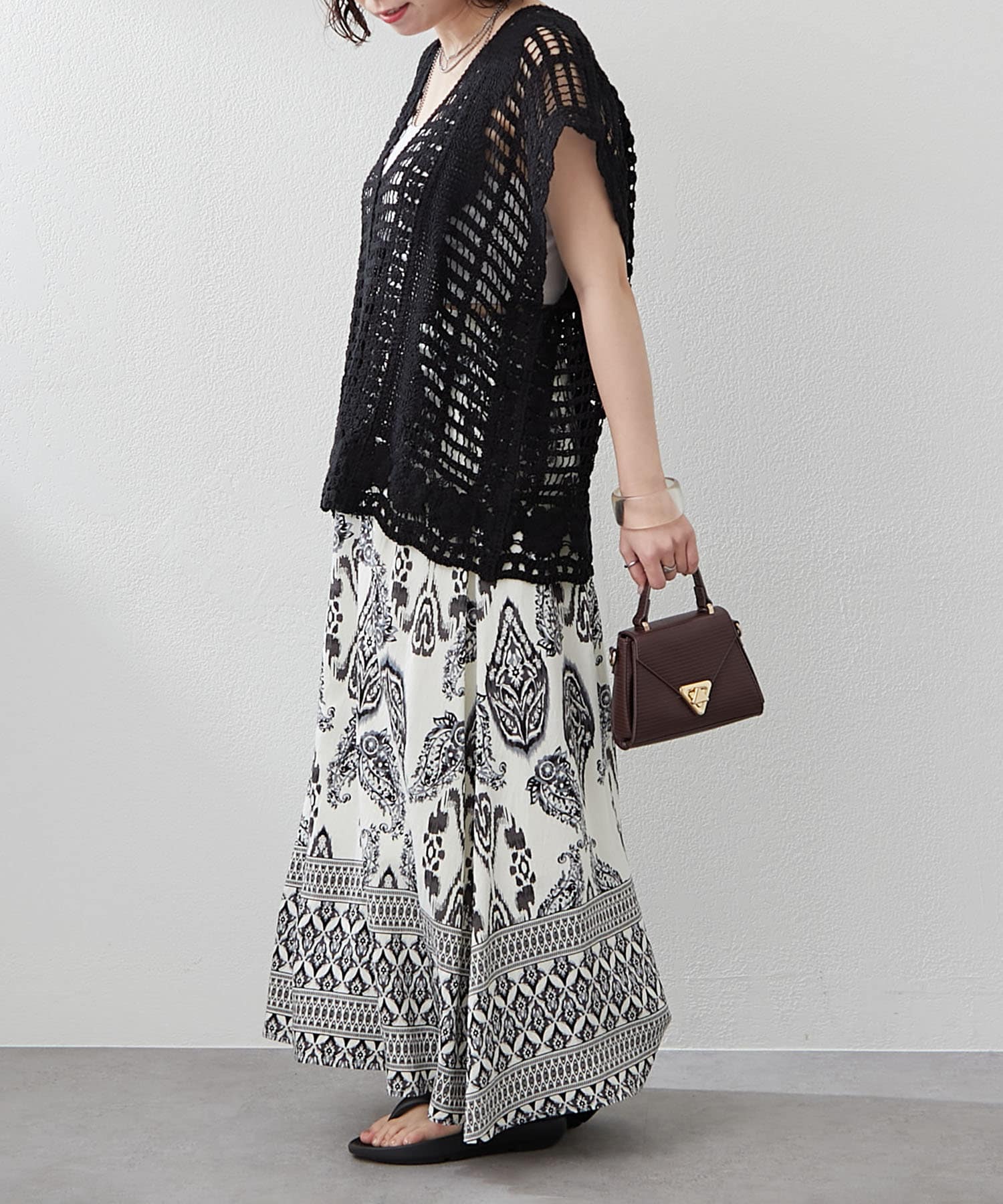 ・シンプルなトップスに合わせるだけでサマ見えする一枚