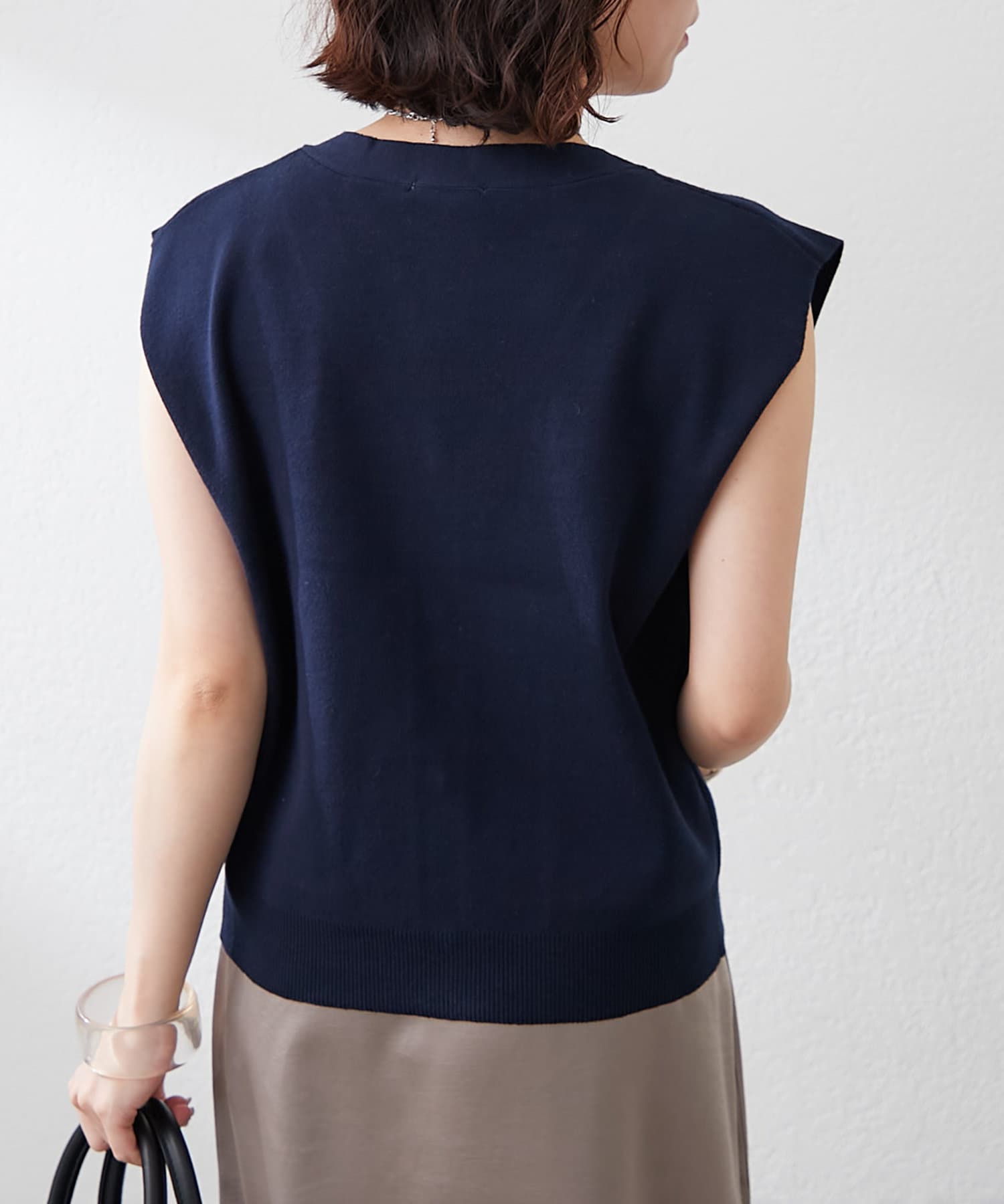 ・Vネックで首周りがあくのでネックレスやスカーフなど小物使いも楽しめます