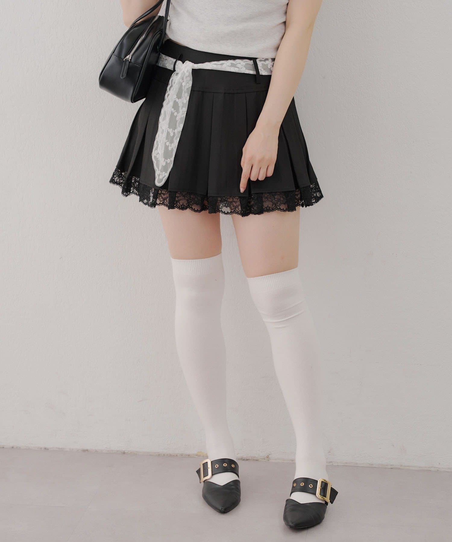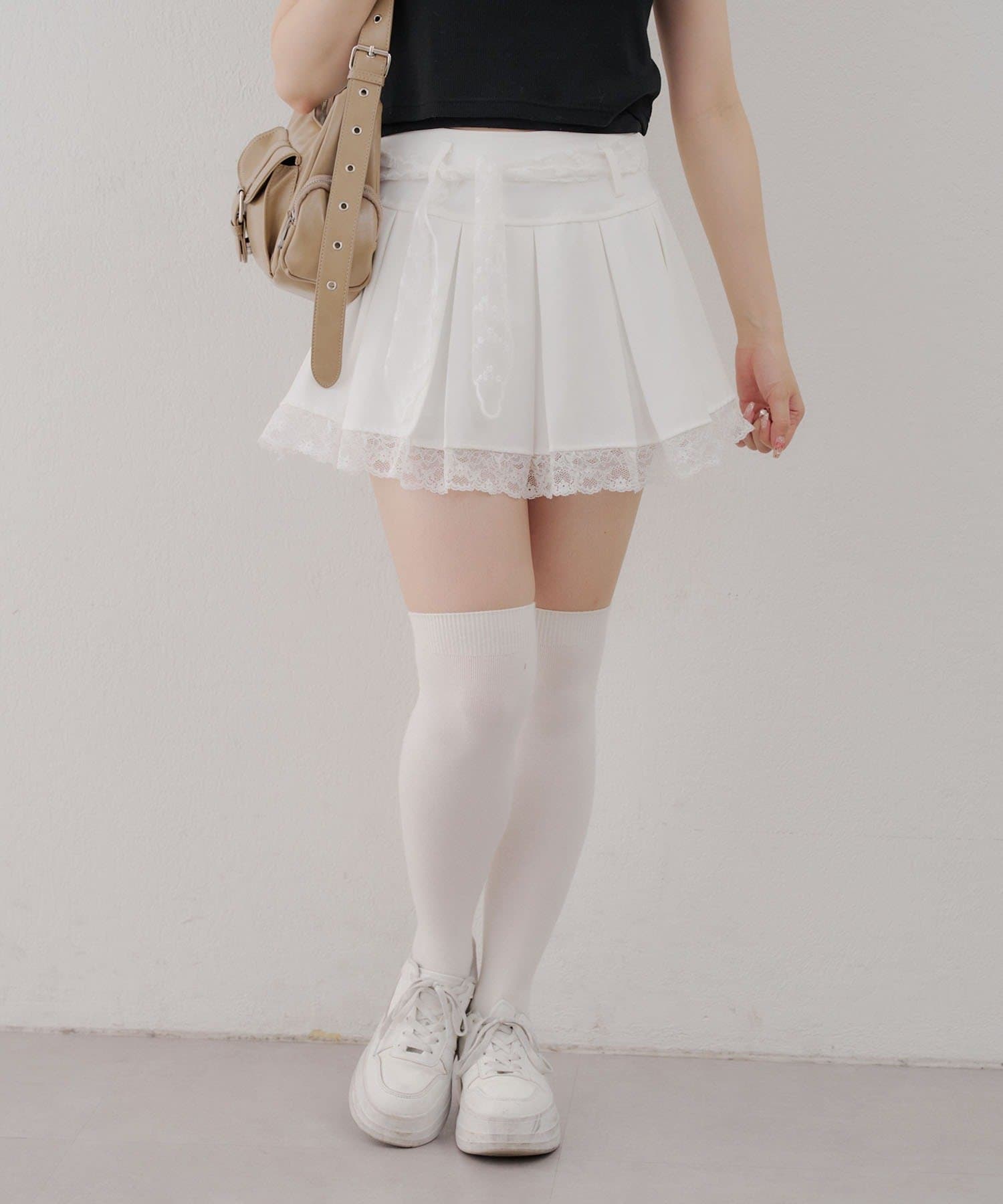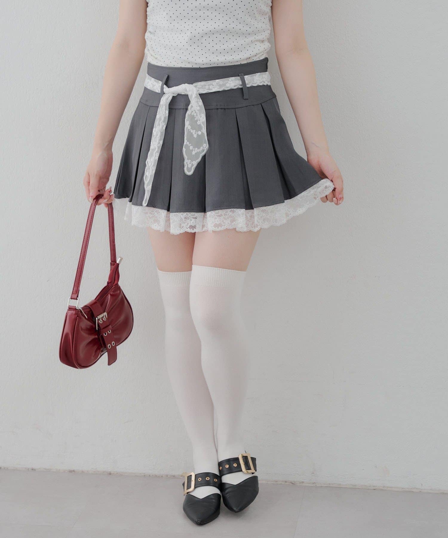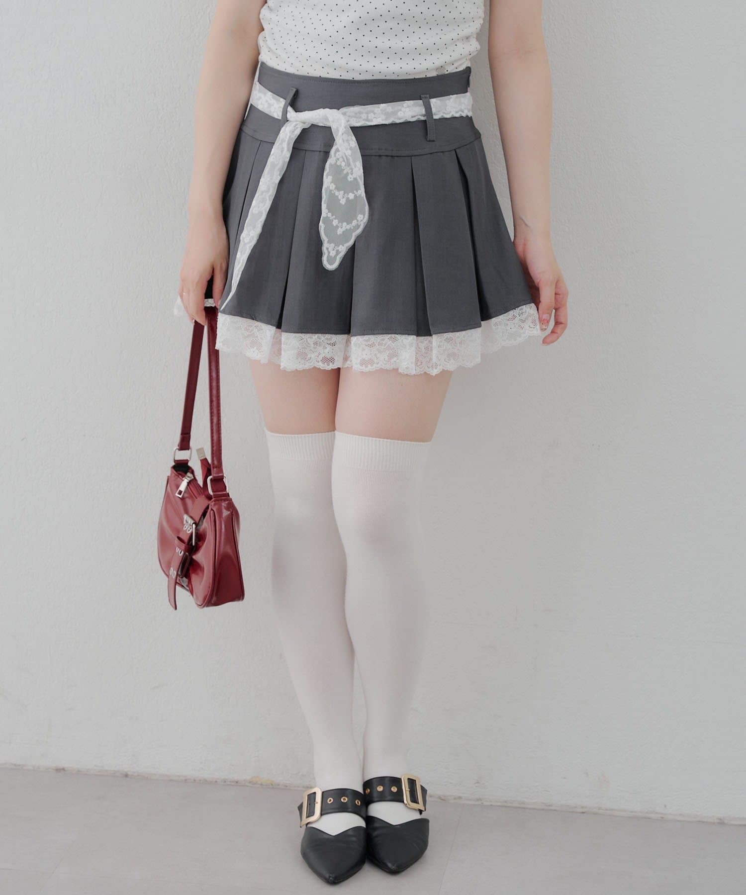 TOP > NICE CLAUP / OLIVE des OLIVE OUTLET > レディース > スカート > スカート > 【RMAF】レースリボンプリーツミニスカート