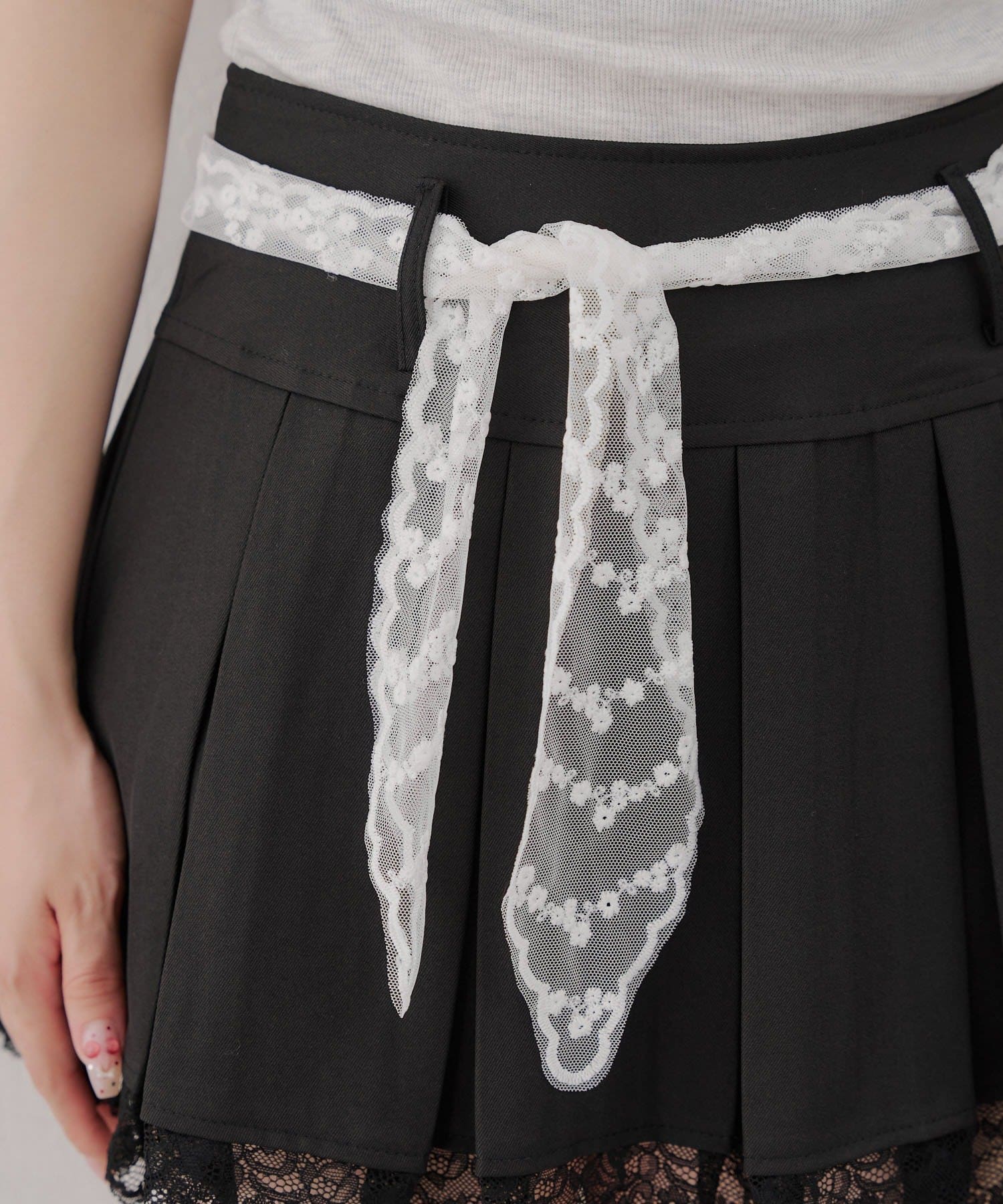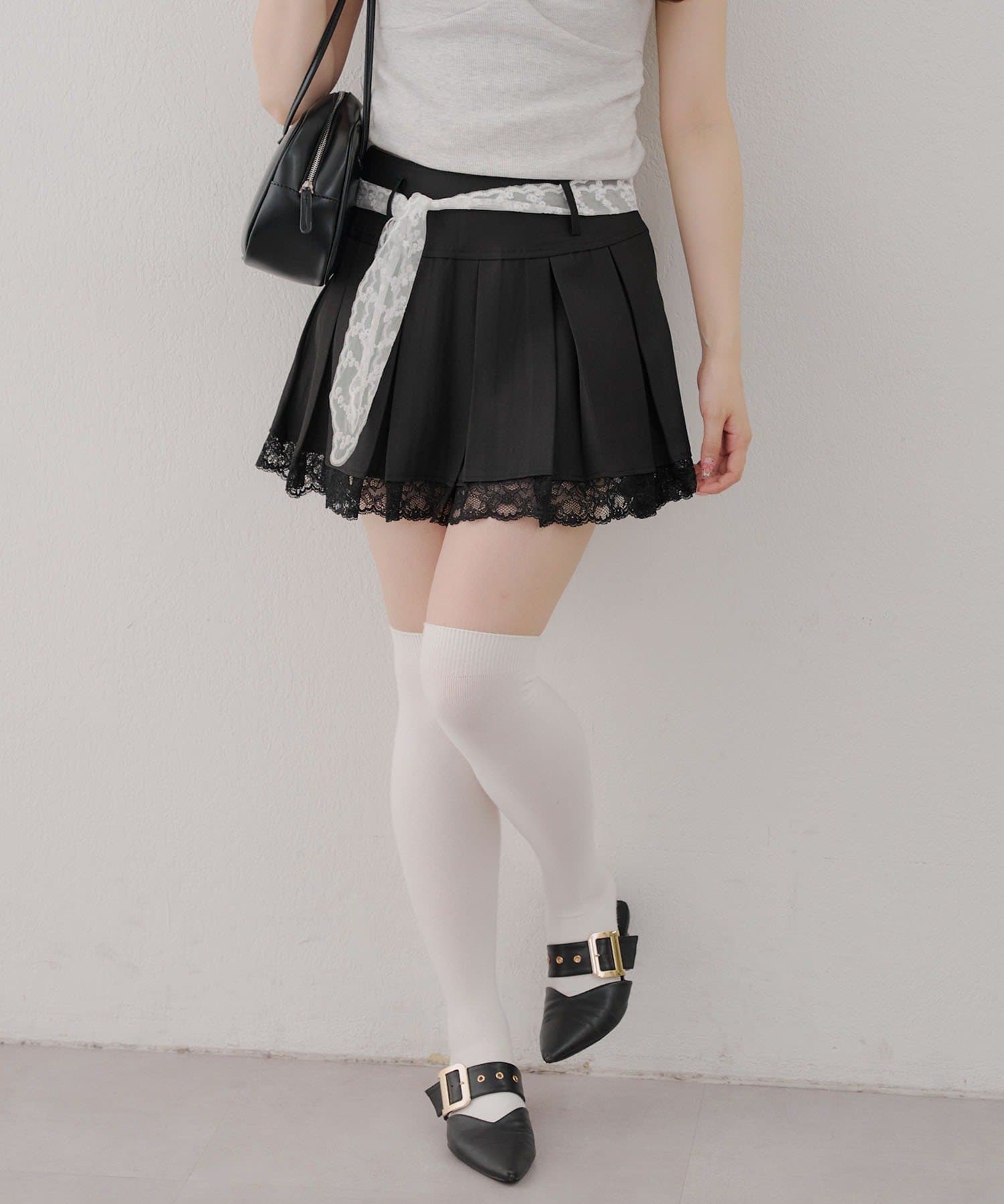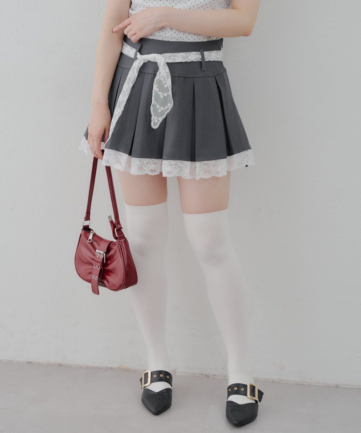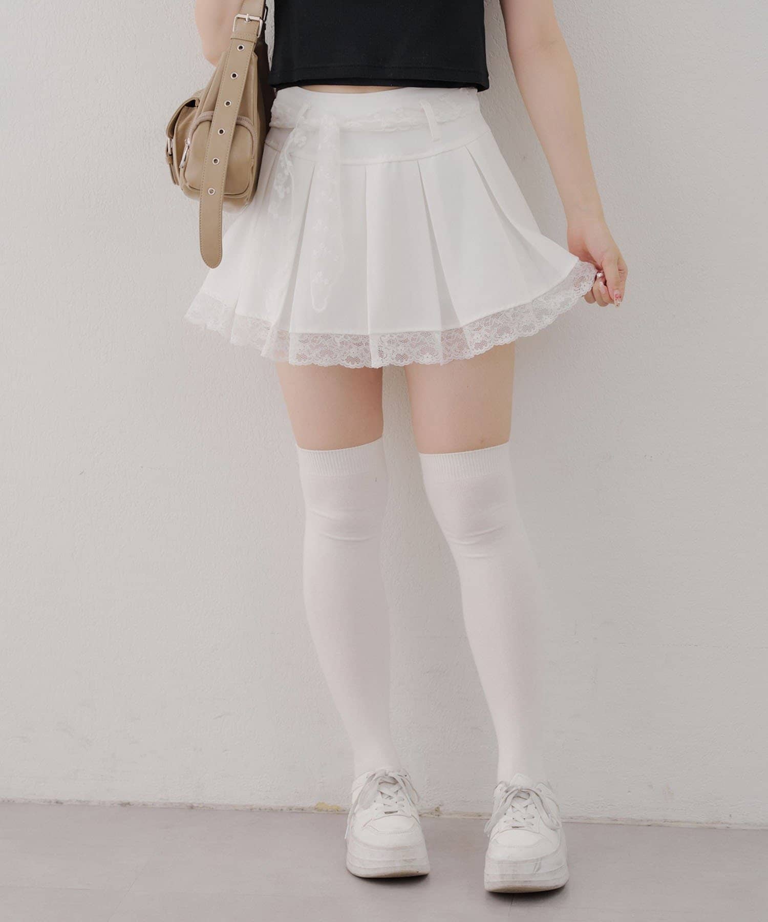 TOP > NICE CLAUP / OLIVE des OLIVE OUTLET > レディース > スカート > スカート > 【RMAF】レースリボンプリーツミニスカート