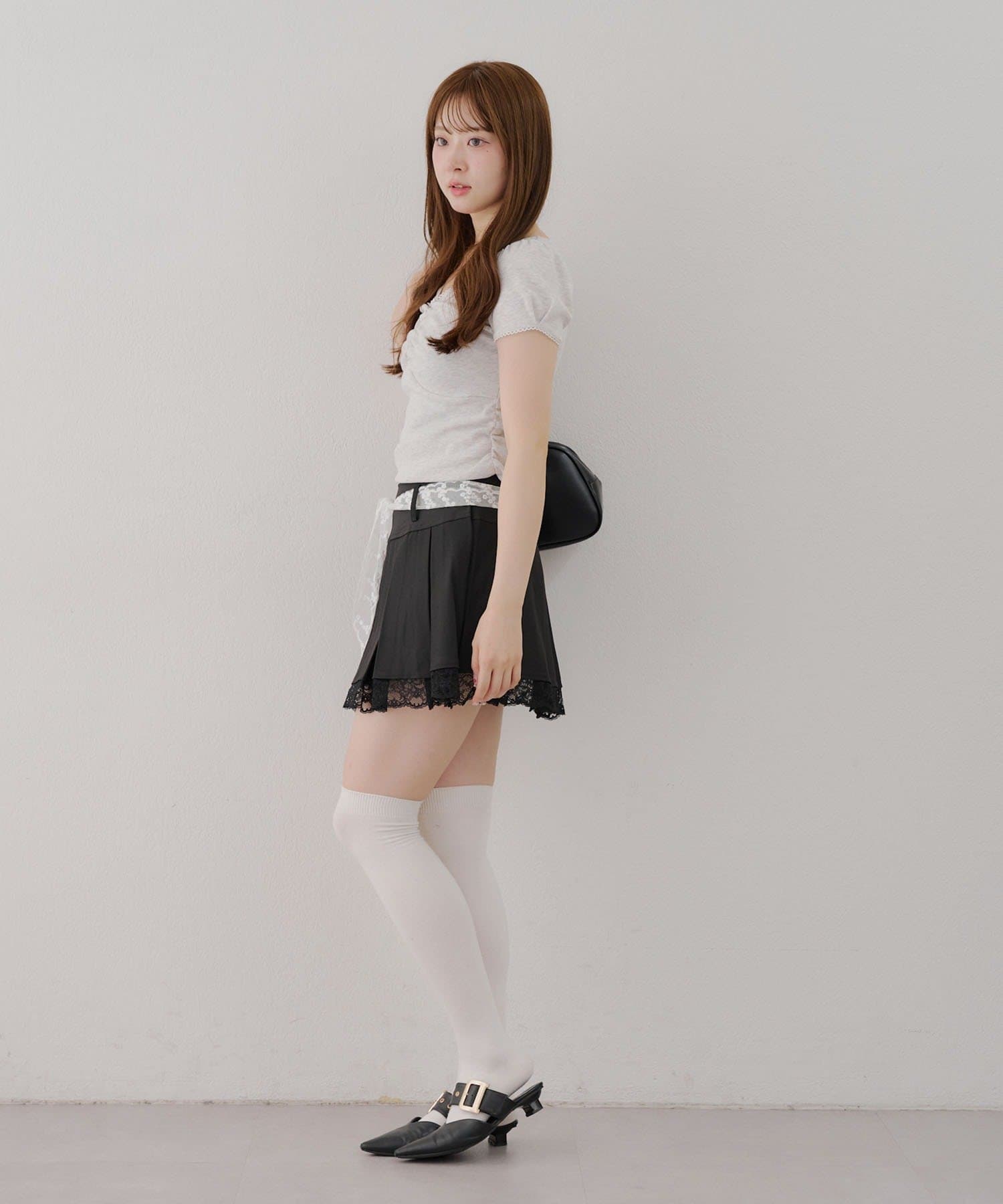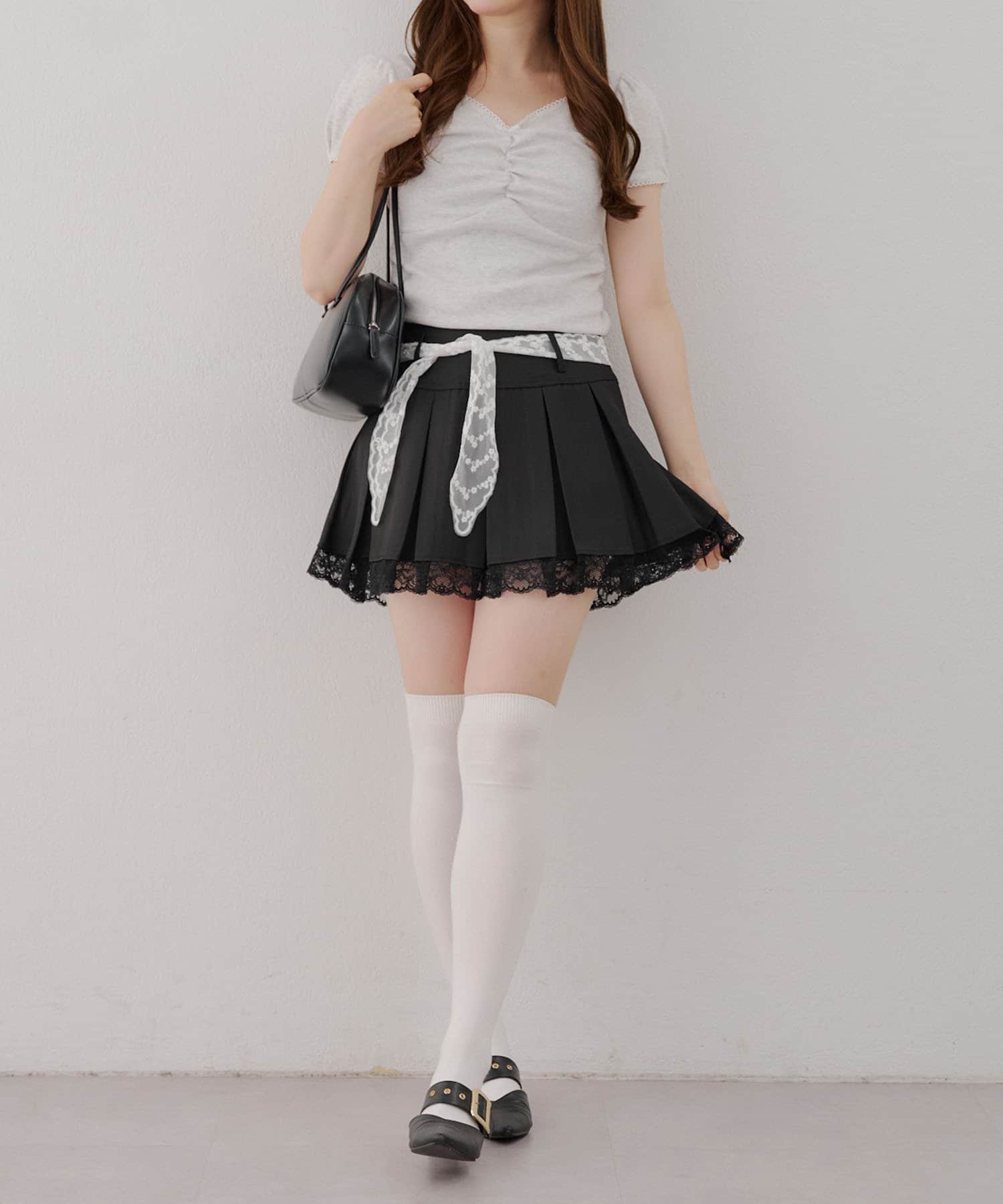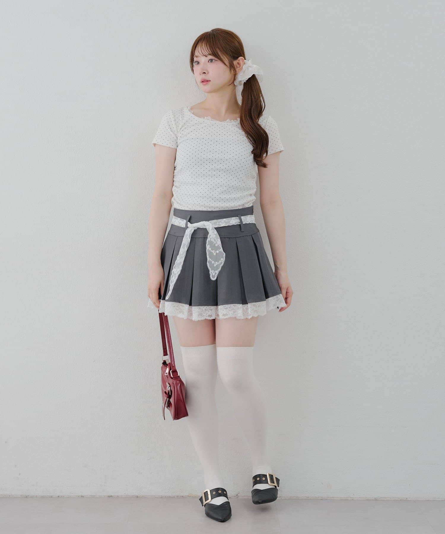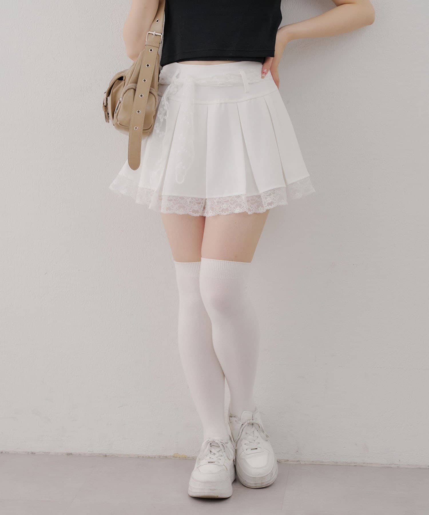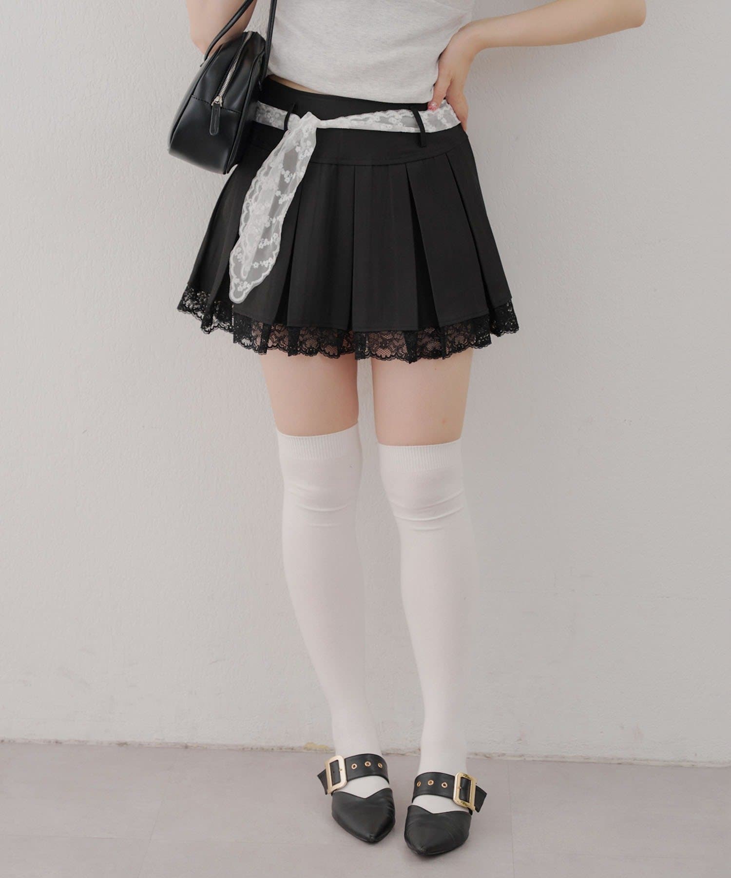 TOP > NICE CLAUP / OLIVE des OLIVE OUTLET > レディース > スカート > スカート > 【RMAF】レースリボンプリーツミニスカート