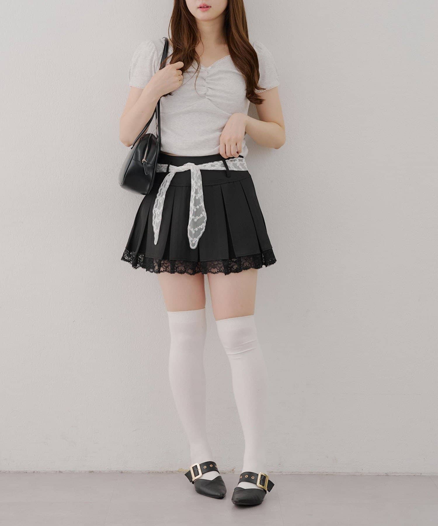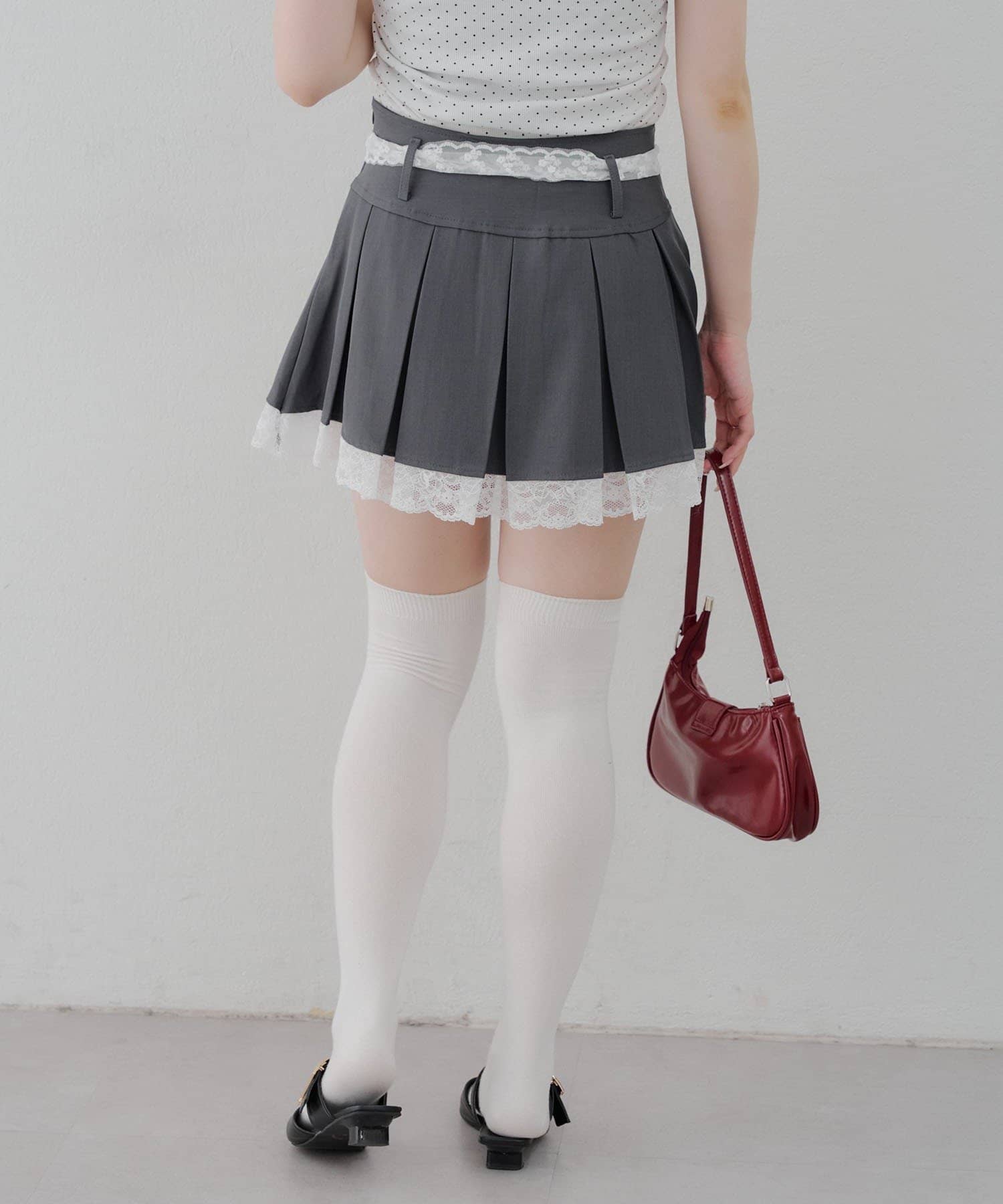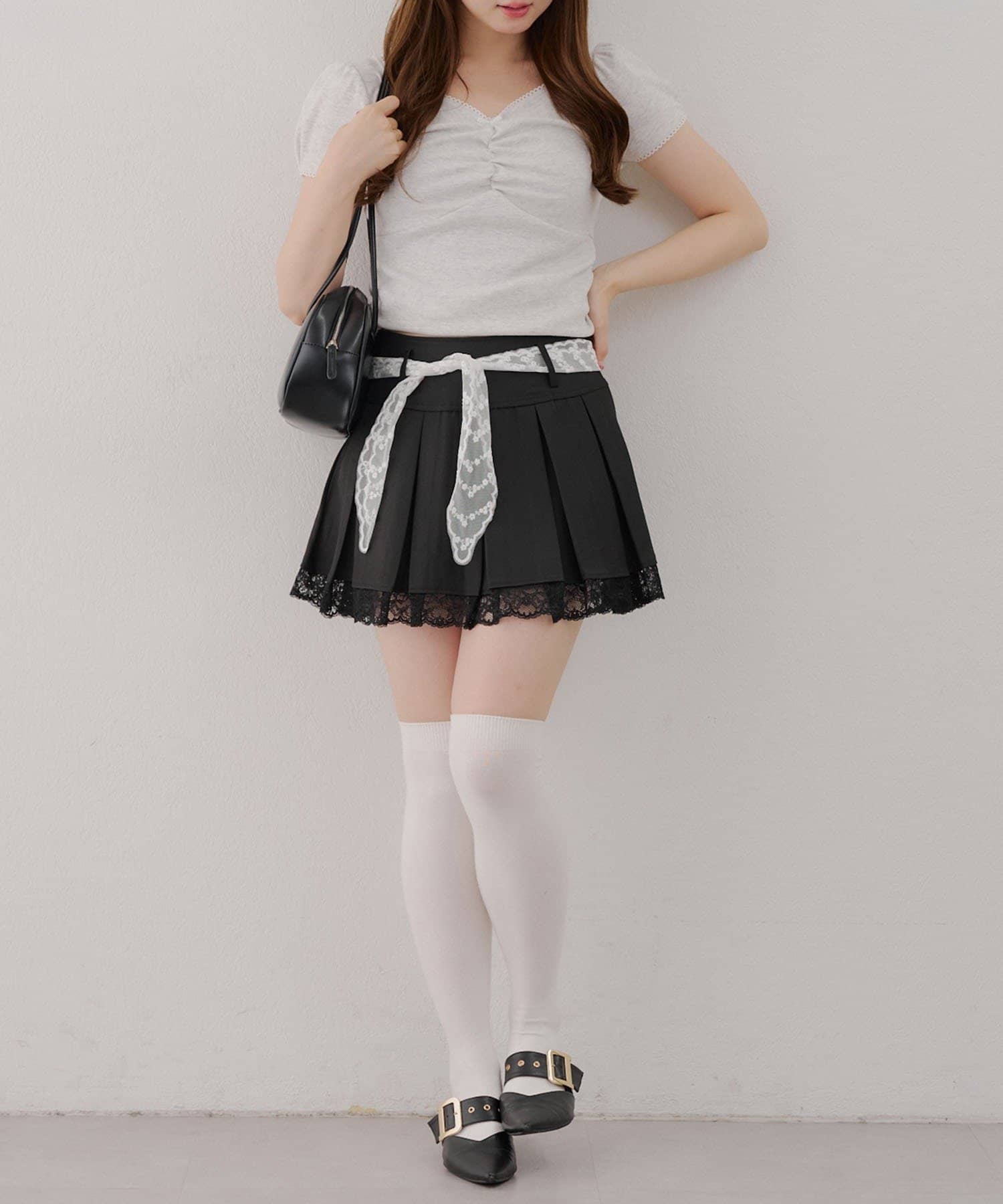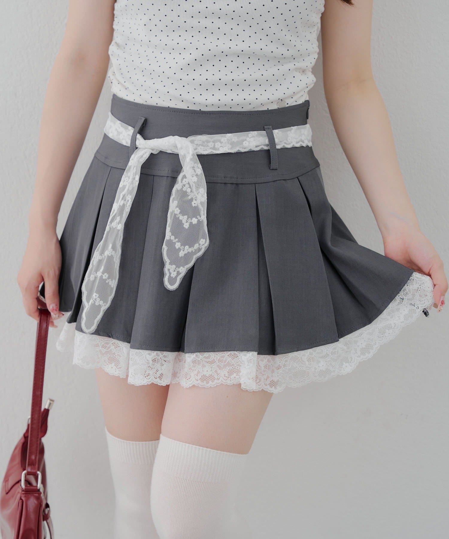 TOP > NICE CLAUP / OLIVE des OLIVE OUTLET > レディース > スカート > スカート > 【RMAF】レースリボンプリーツミニスカート