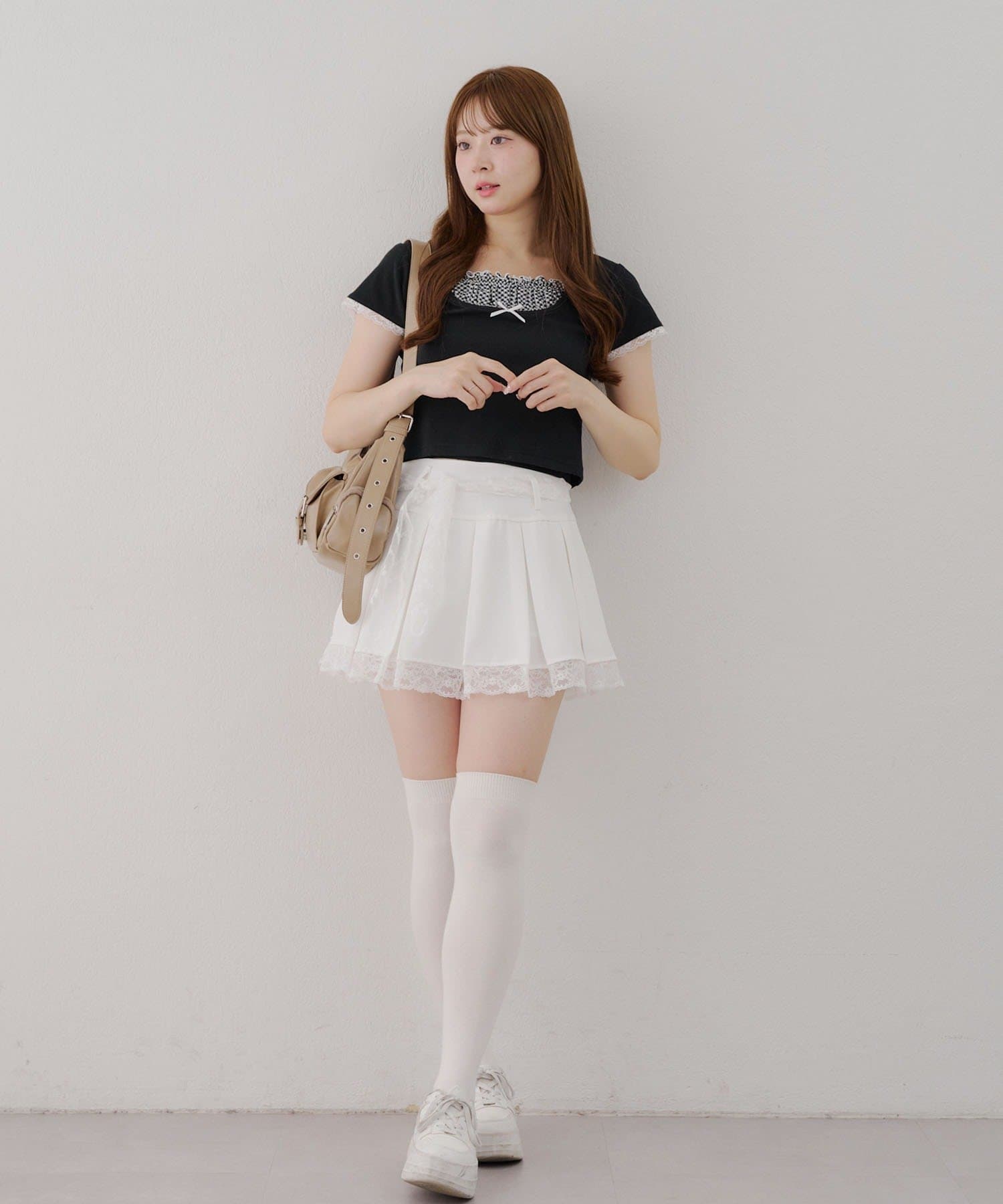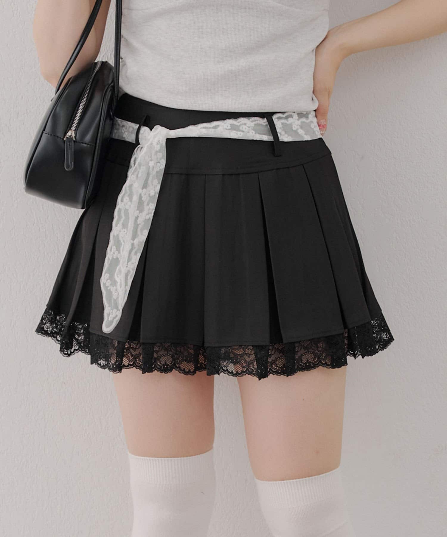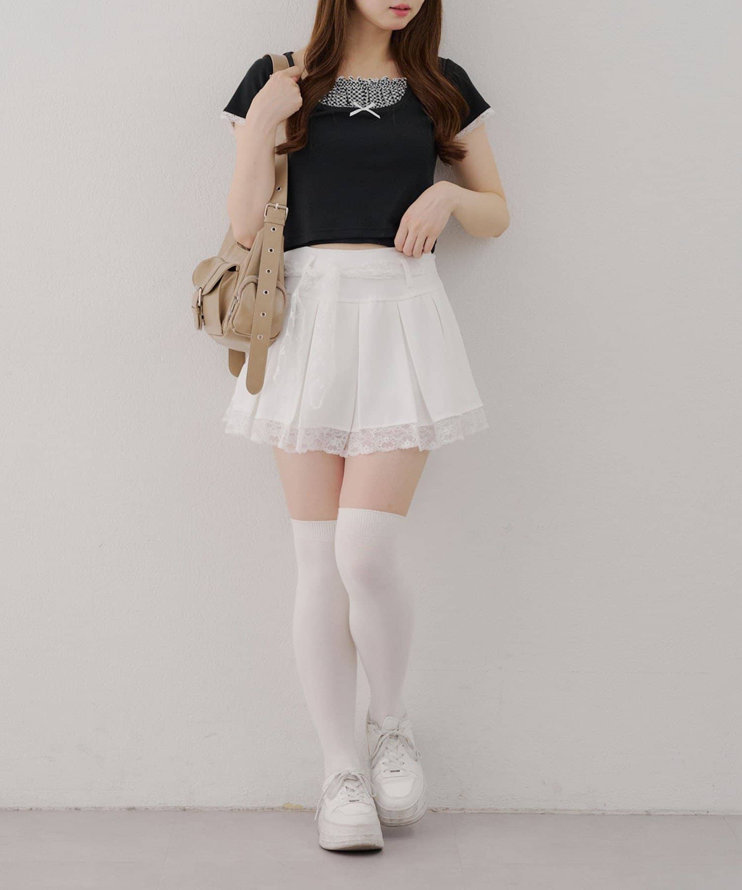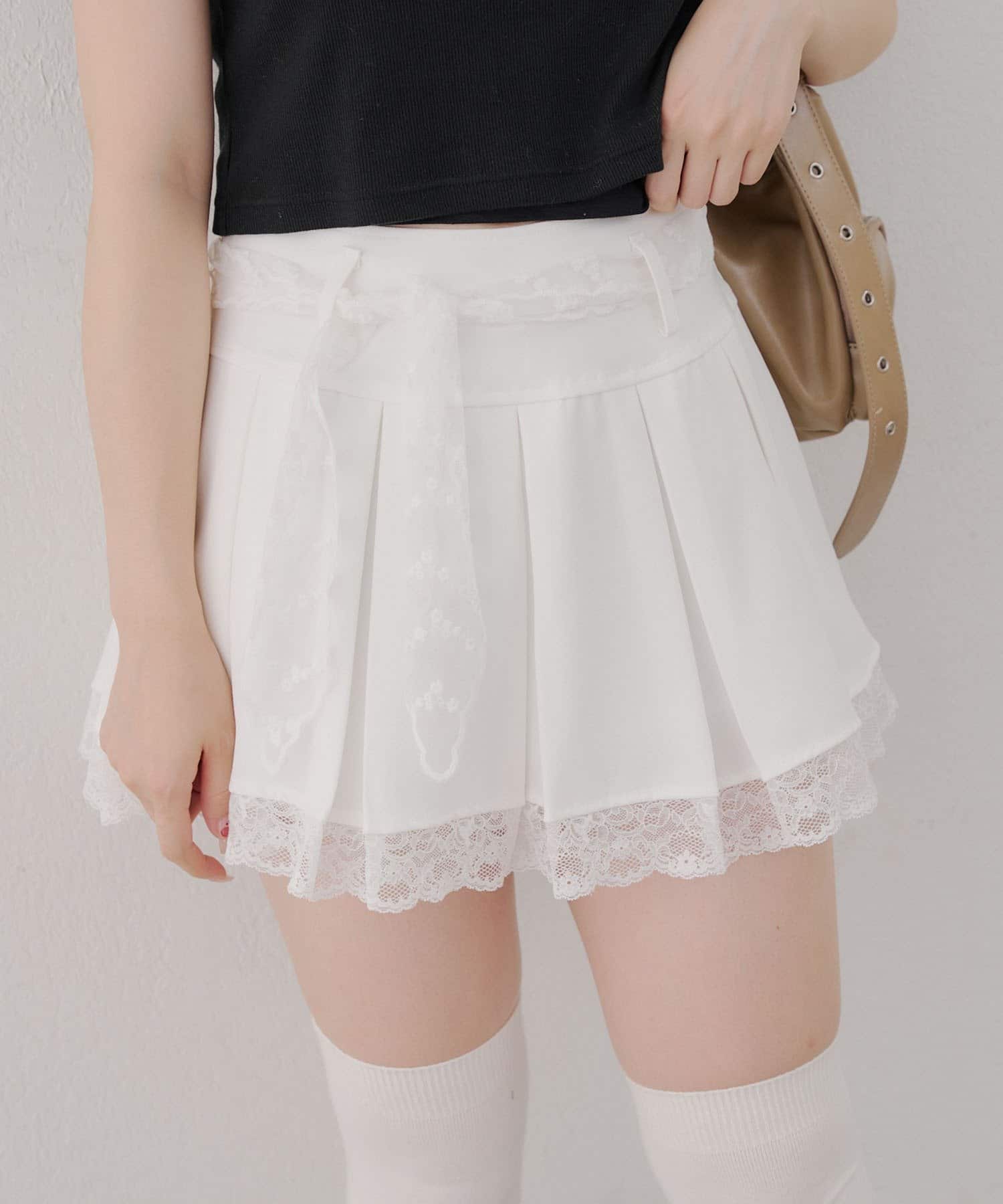 TOP > NICE CLAUP / OLIVE des OLIVE OUTLET > レディース > スカート > スカート > 【RMAF】レースリボンプリーツミニスカート