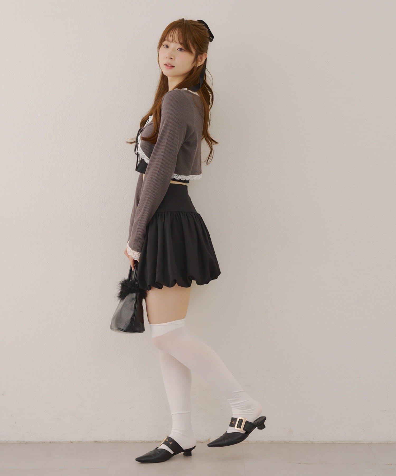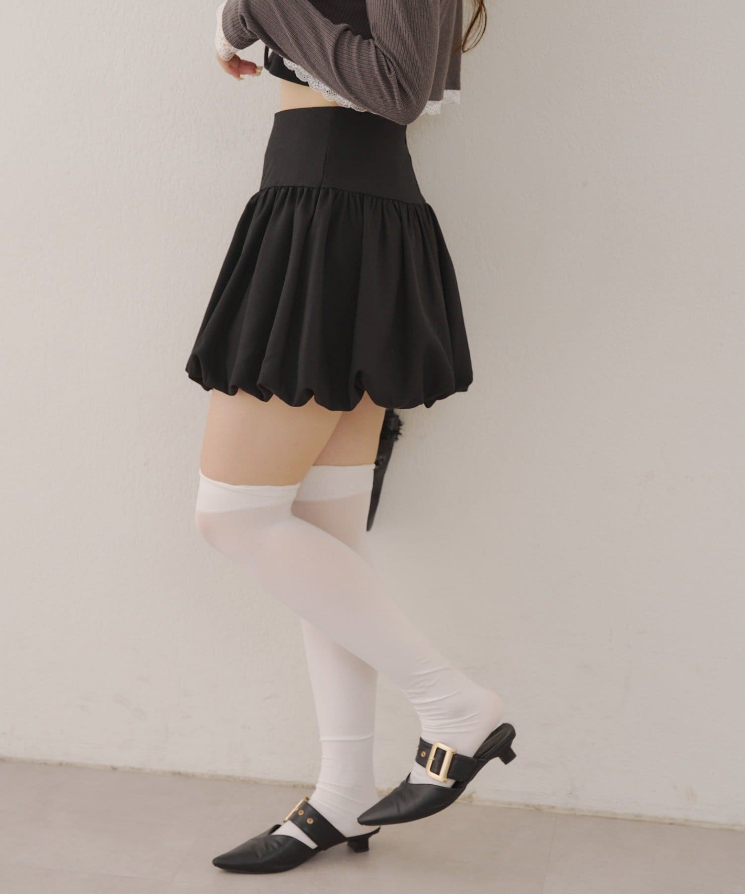 ・ニーハイにパンプスのガーリーな組み合わせでまとめるのが◎