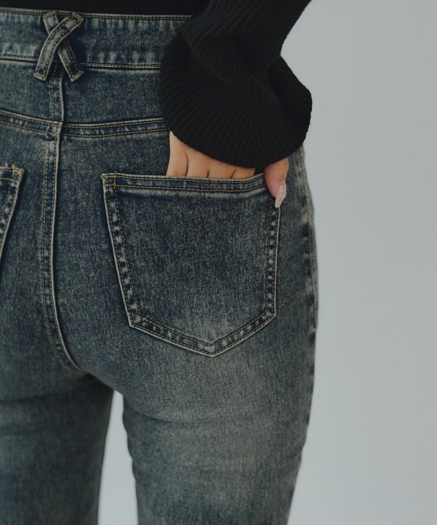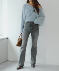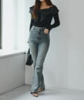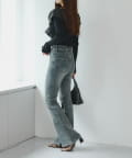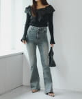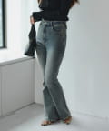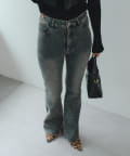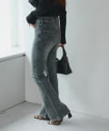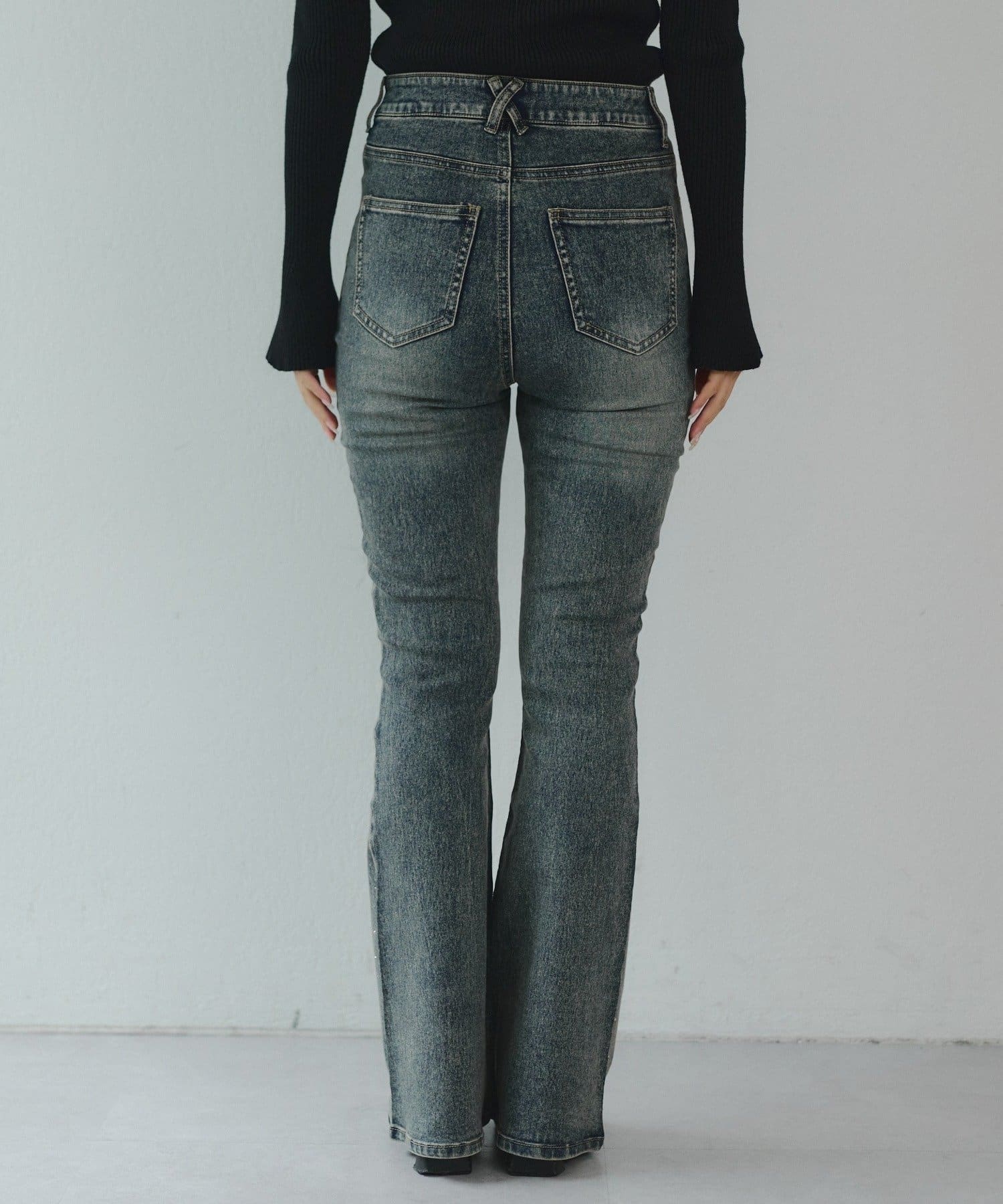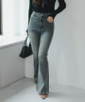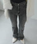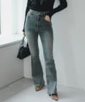 伸縮性◎美シルエット【RMAF】キラキラストレッチセミフレアデニム