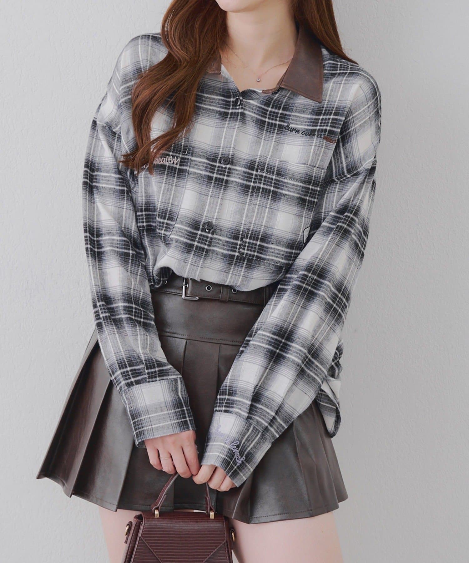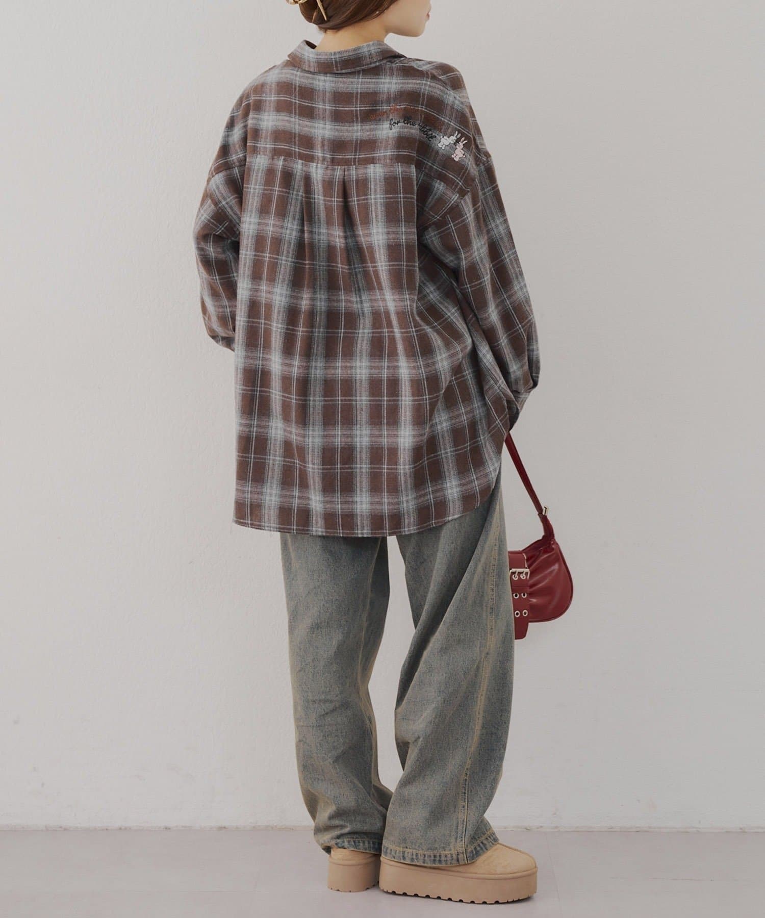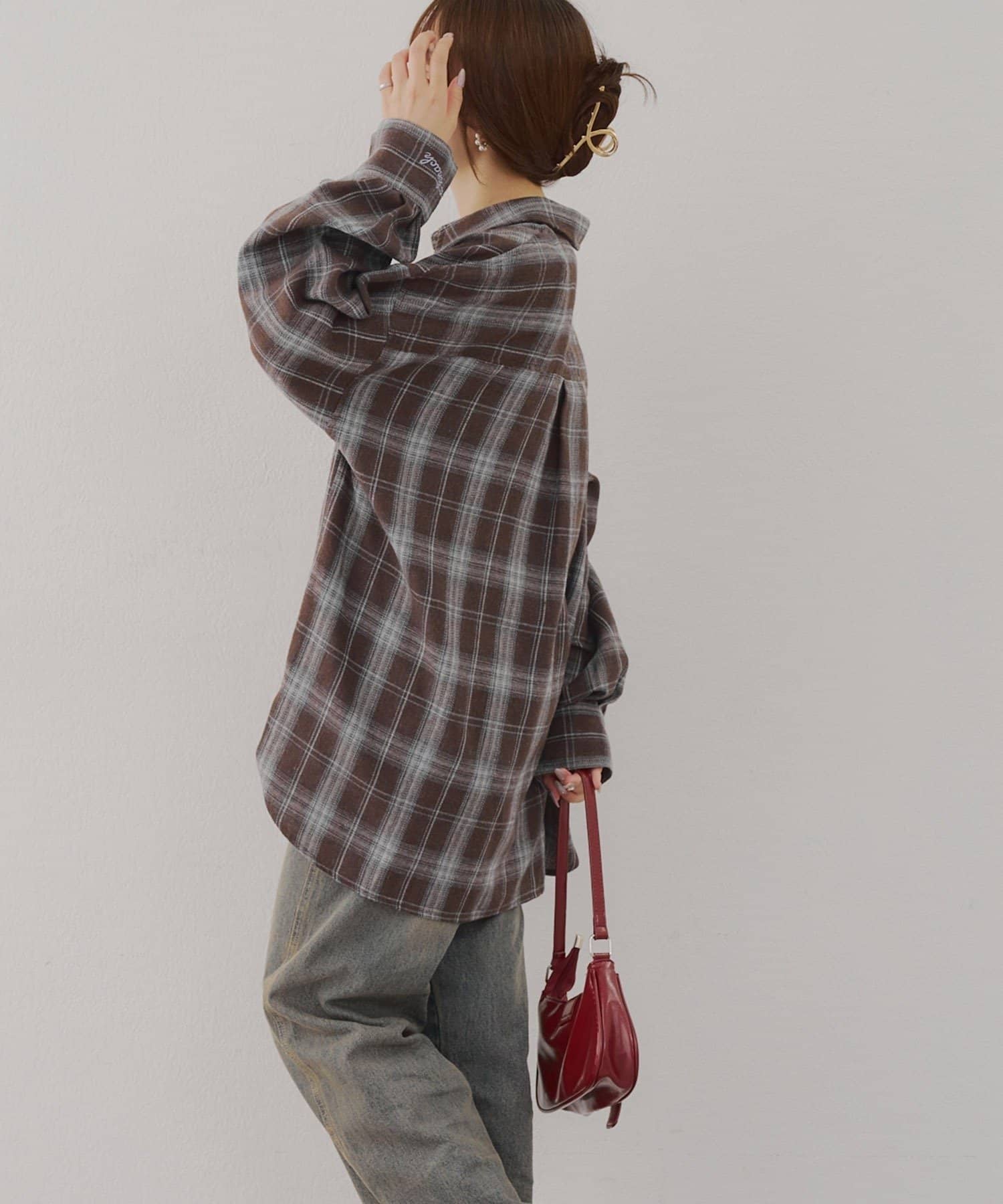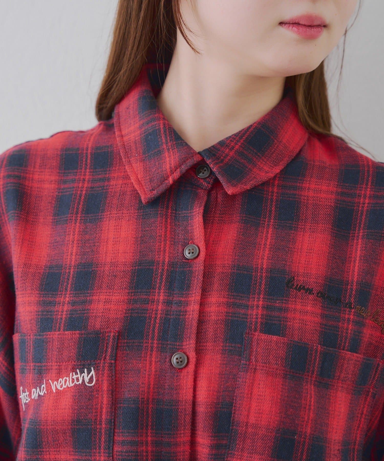 【RMAF】衿合皮刺繍入りチェックシャツ