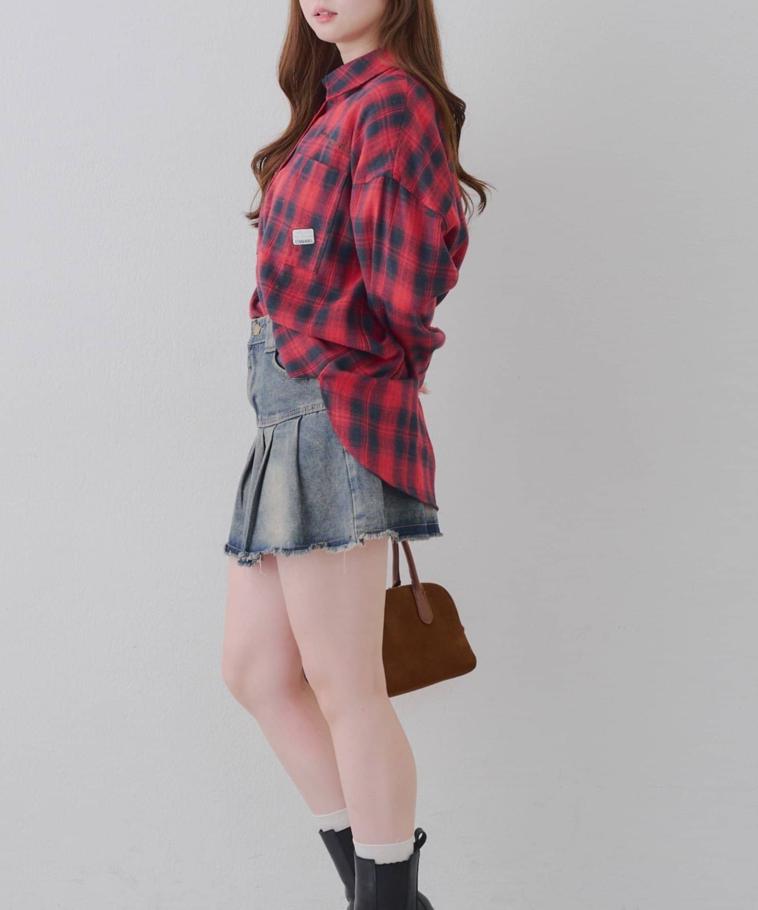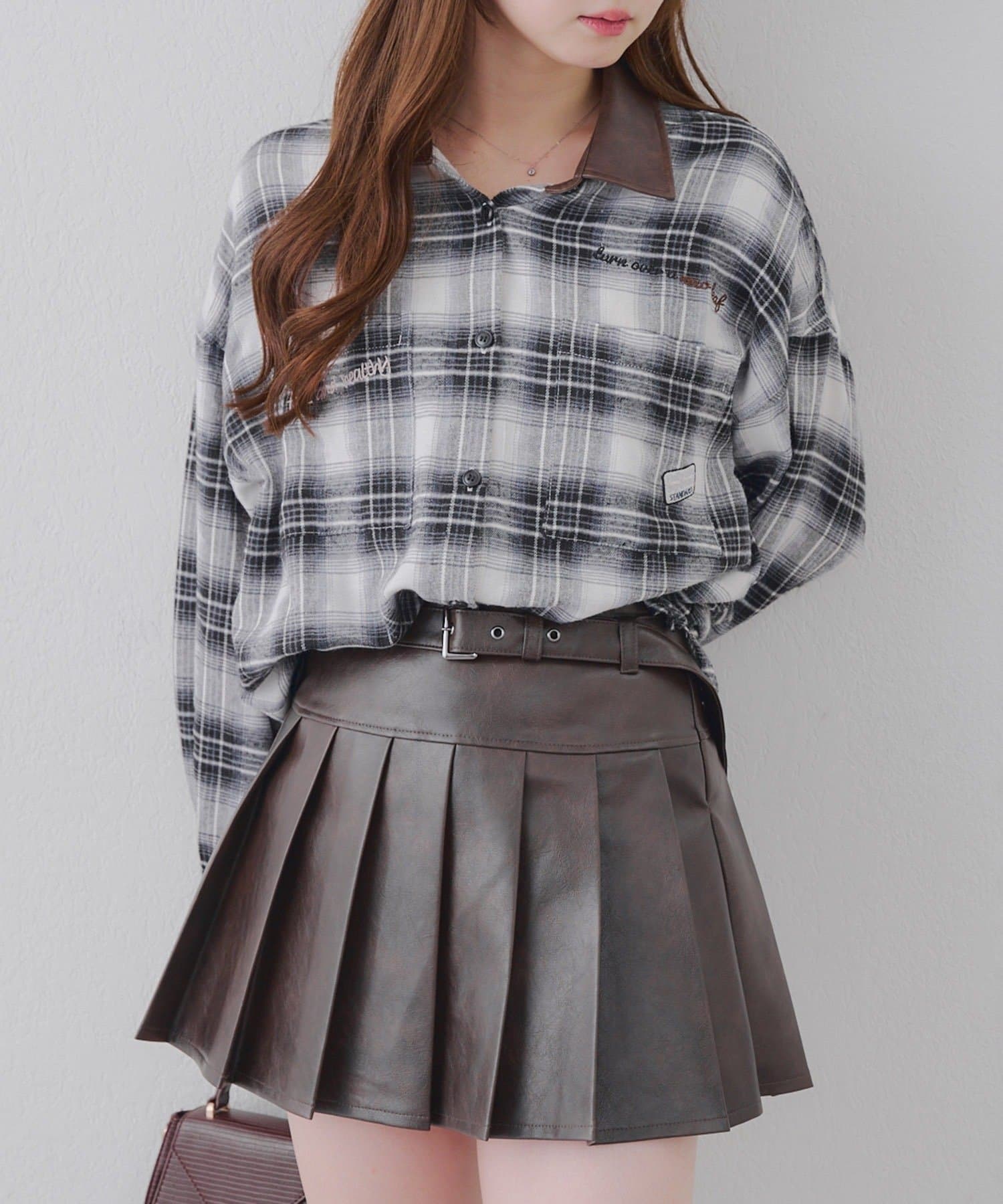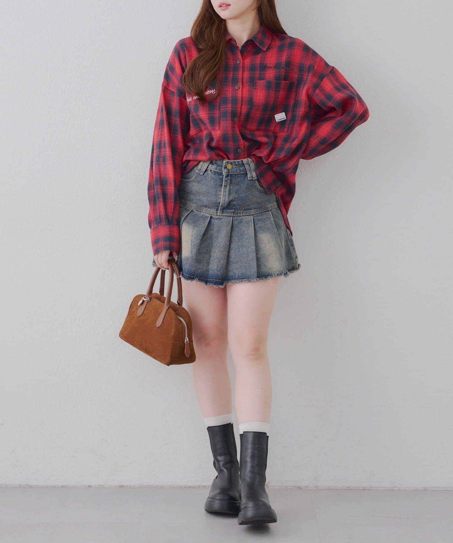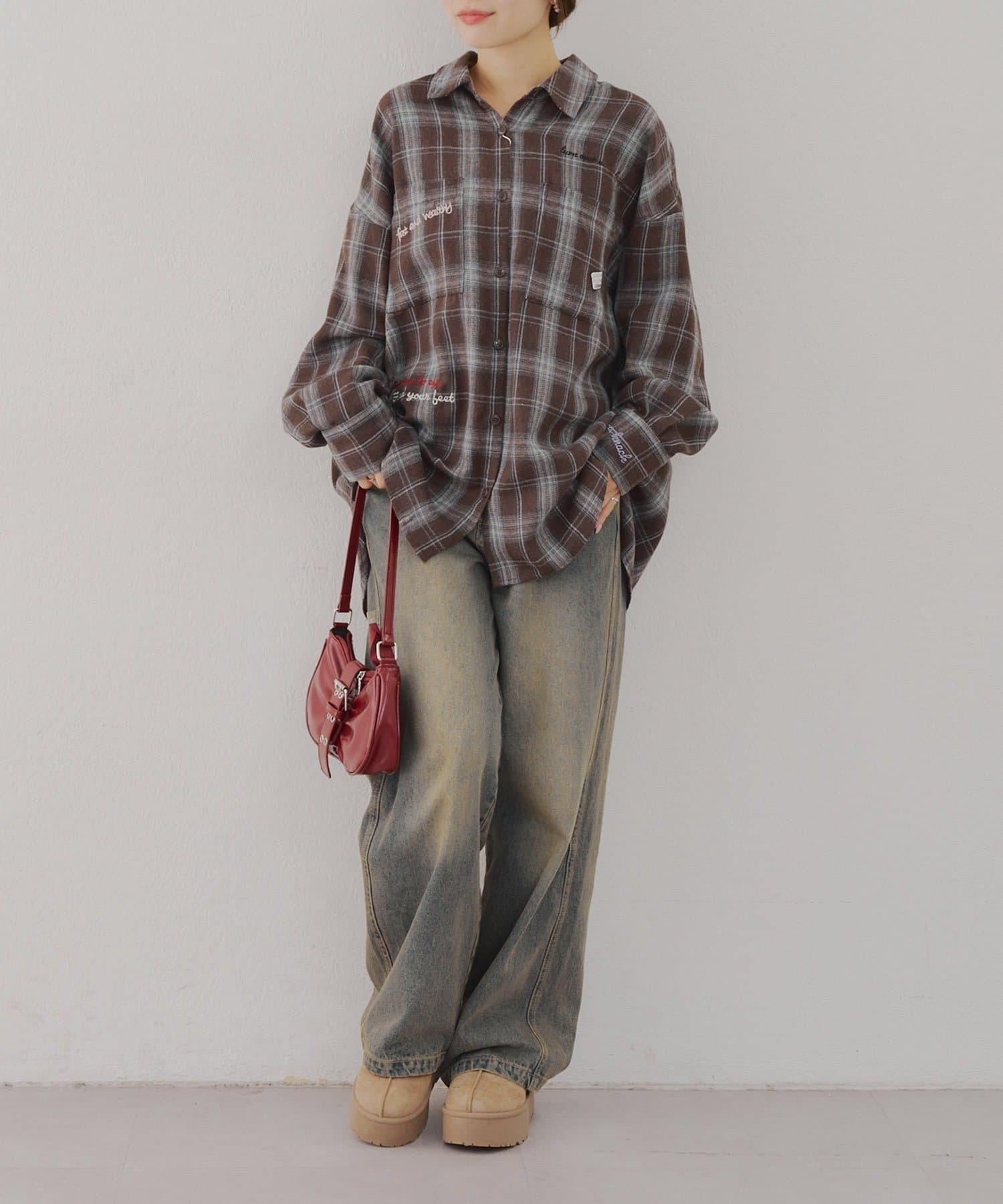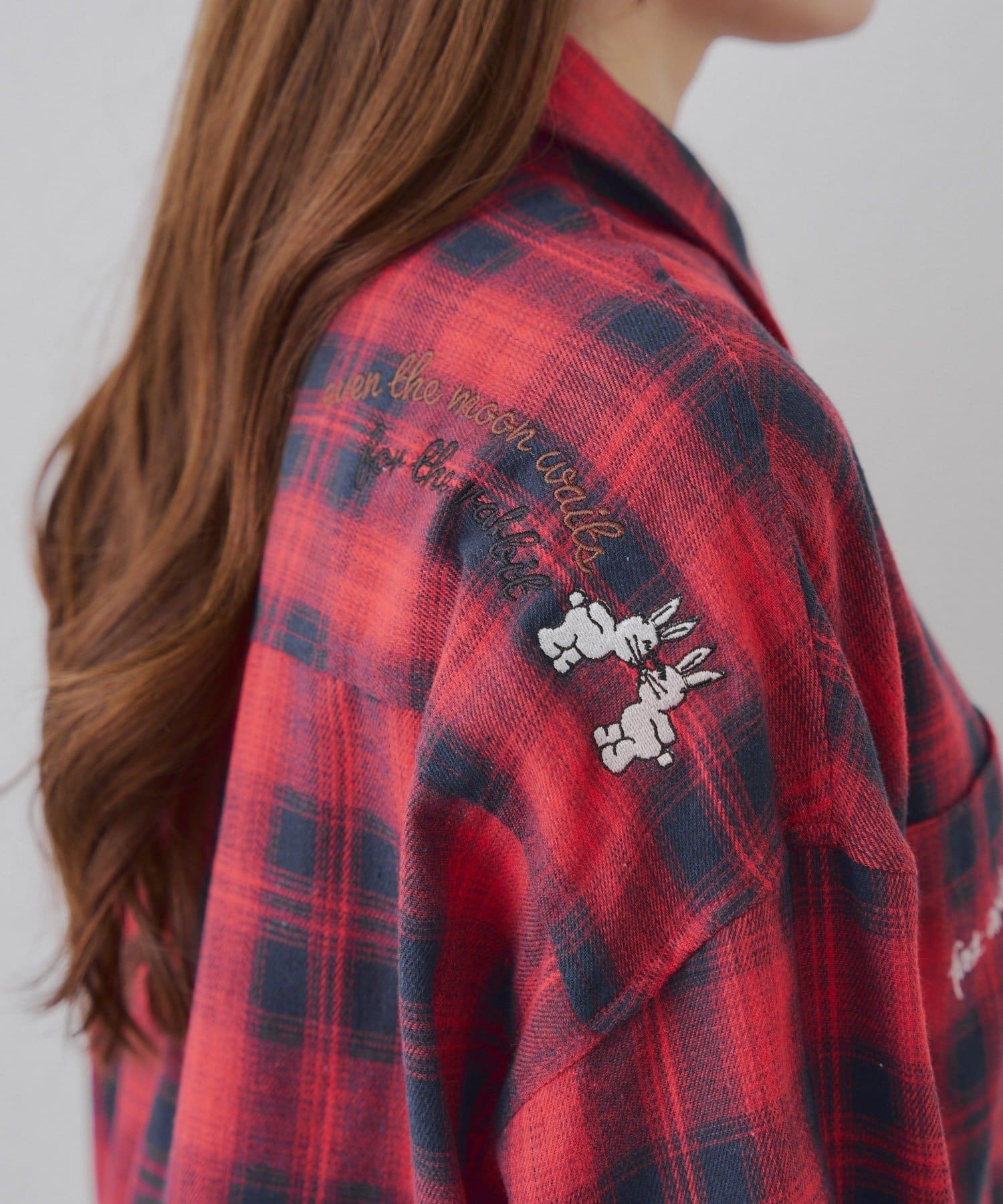 【RMAF】衿合皮刺繍入りチェックシャツ