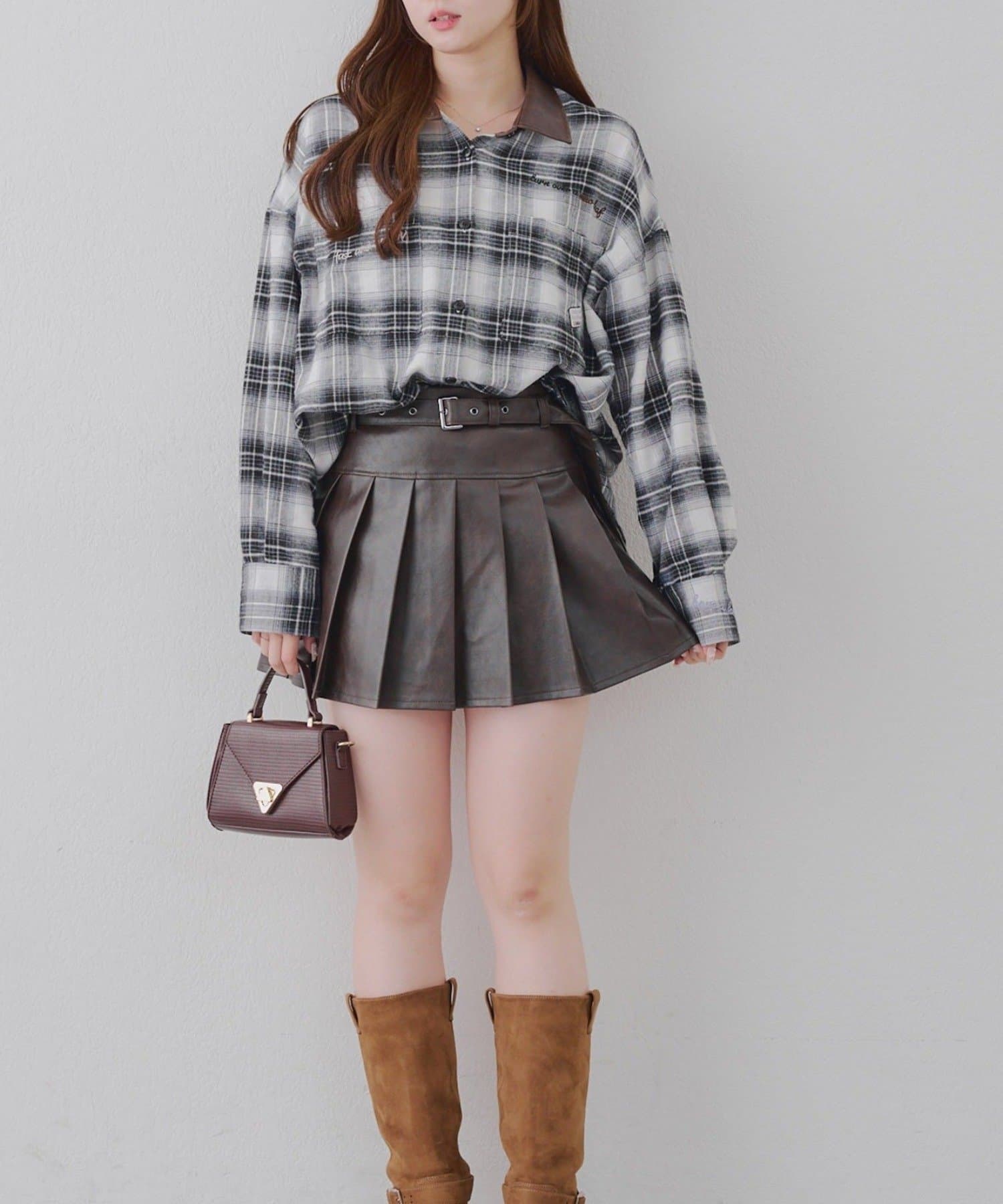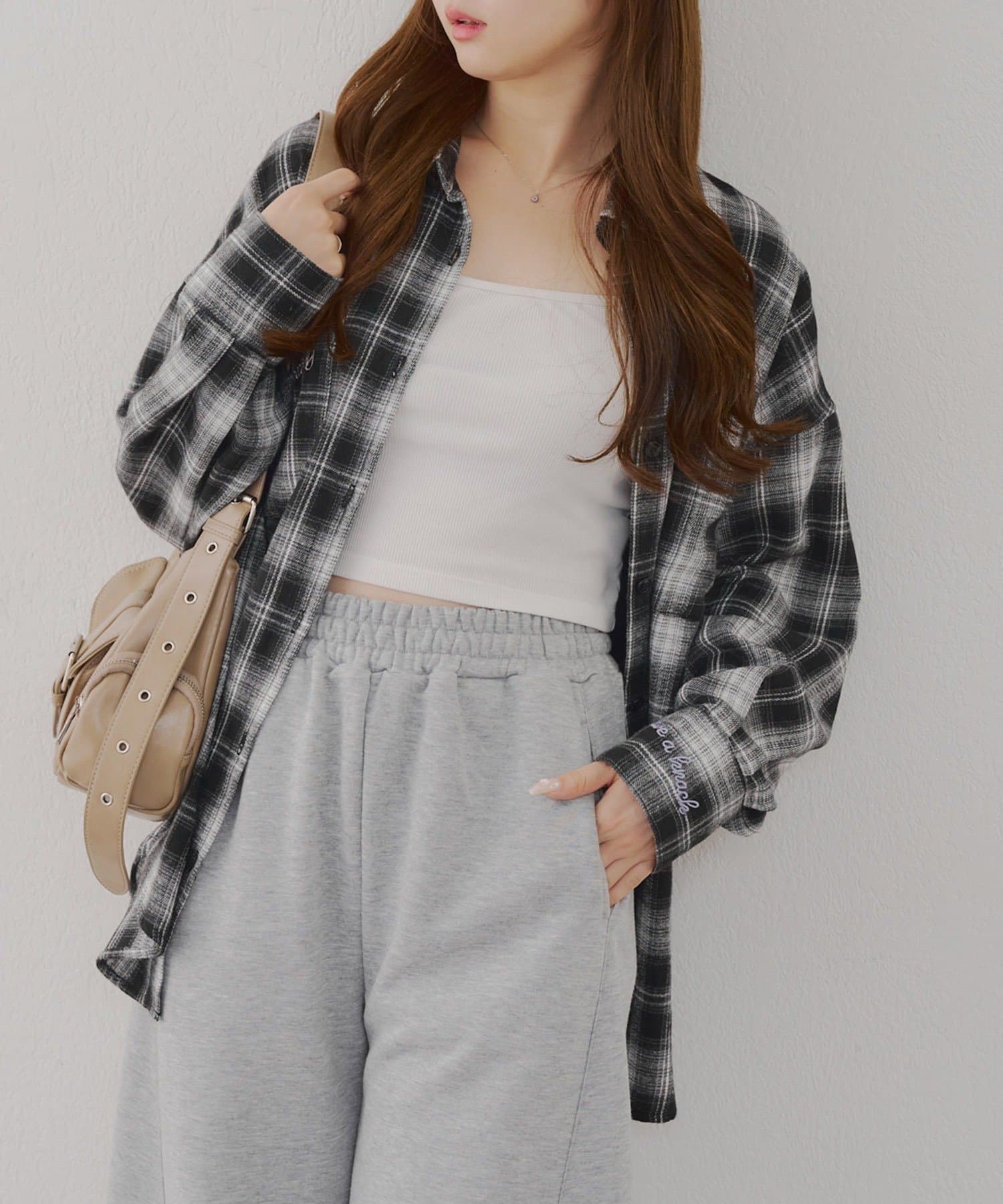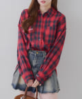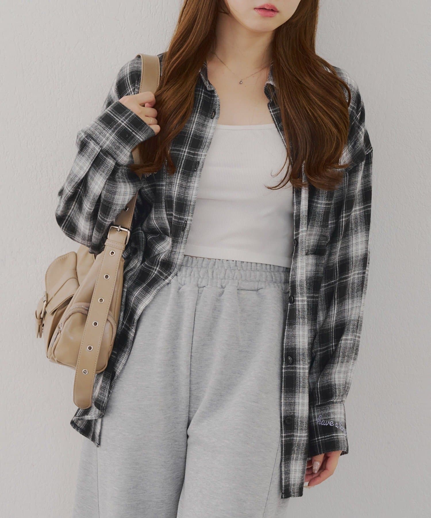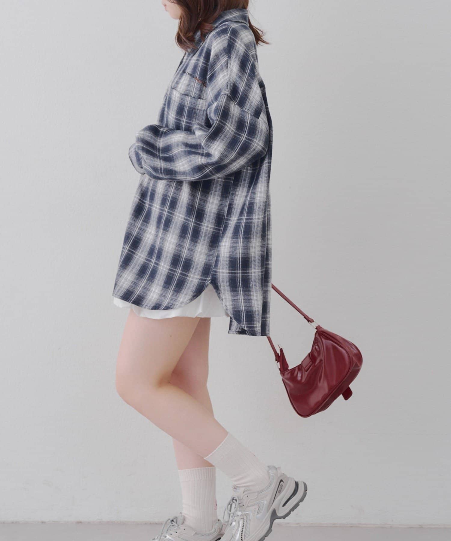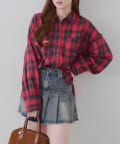 【RMAF】衿合皮刺繍入りチェックシャツ