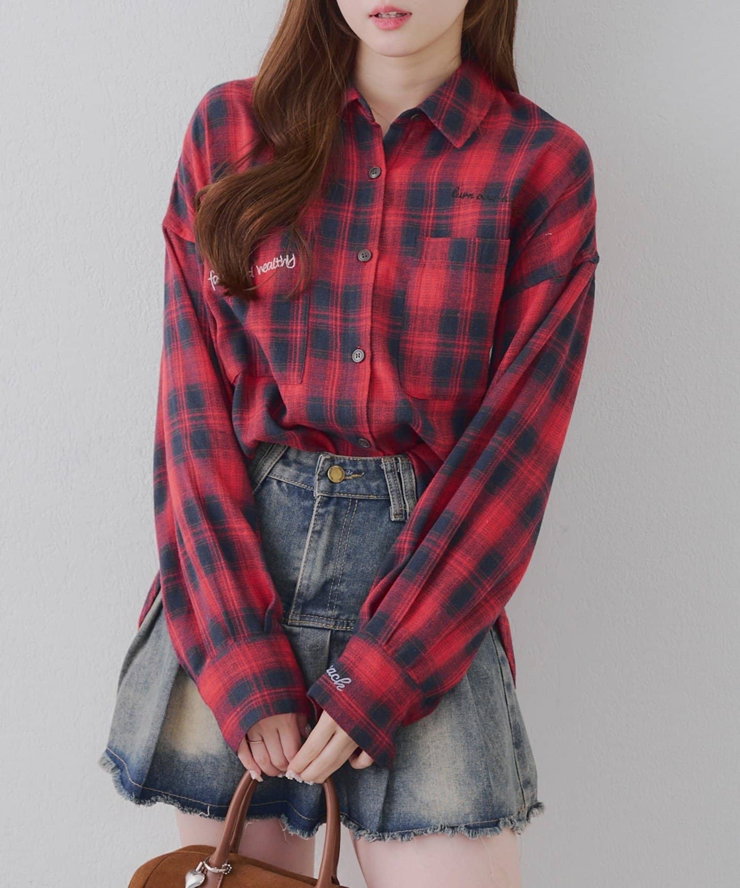 【ネイビー,レッド,ブラウン,ブラック】本体ポリエステル75% コットン25% 刺繍糸ポリエステル100%原産国 中国 サイズ FREE カテゴリ トップス > シャツ/ブラウス(ボタン) タイプ レディース ギフト ラッピング 可 取り扱い - アイテムサイズ