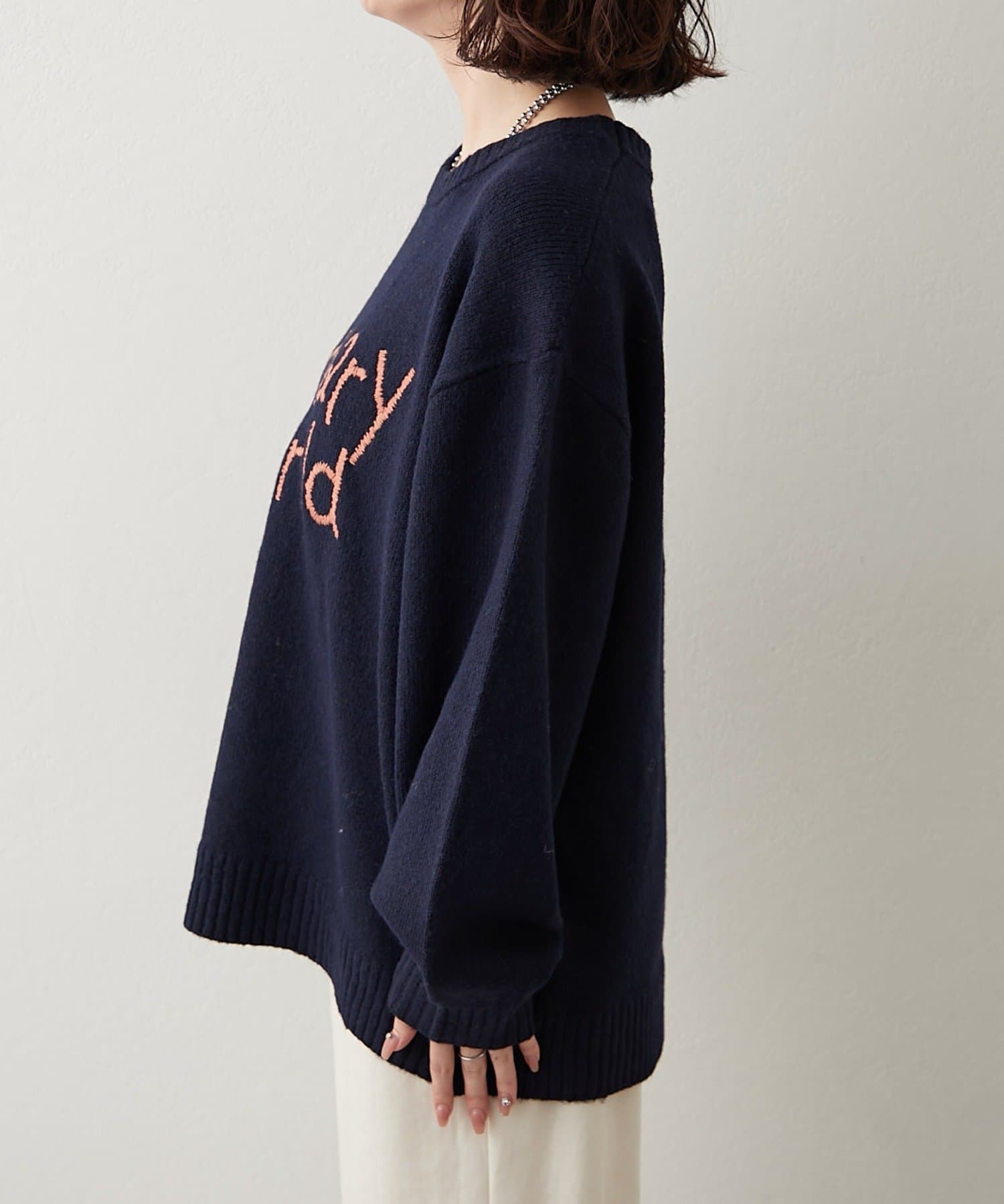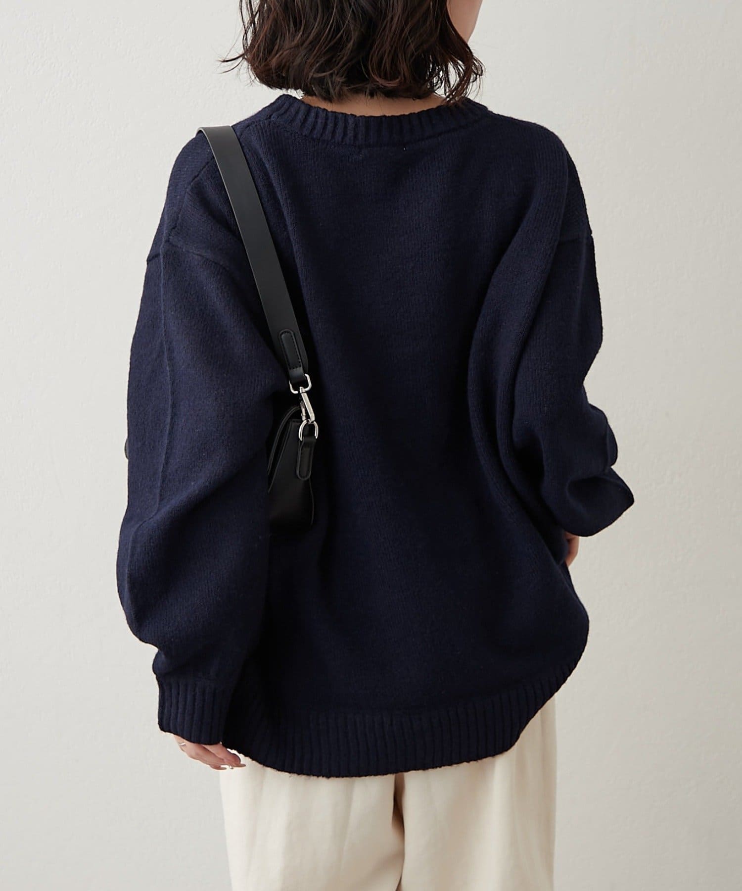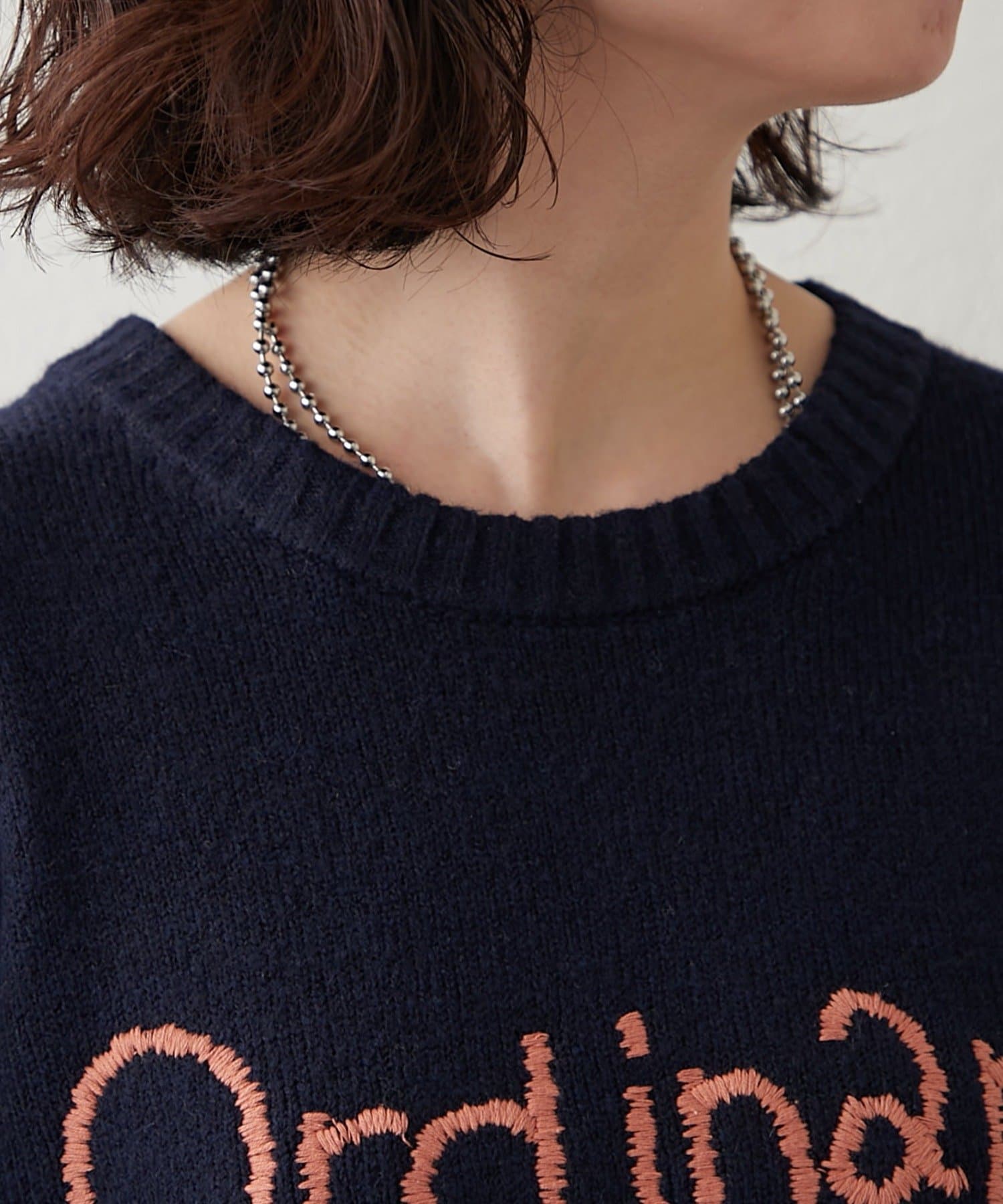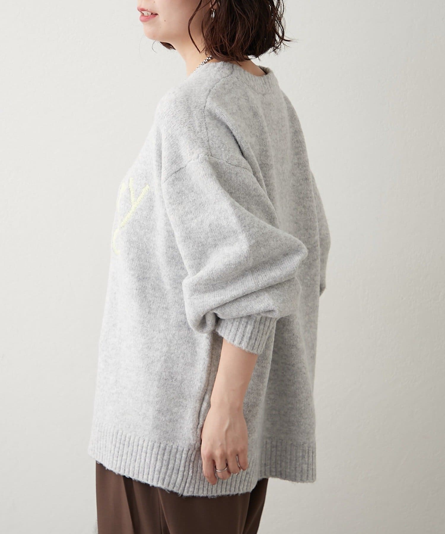 ・配色がおしゃれな刺繍ロゴニットプルオーバー
