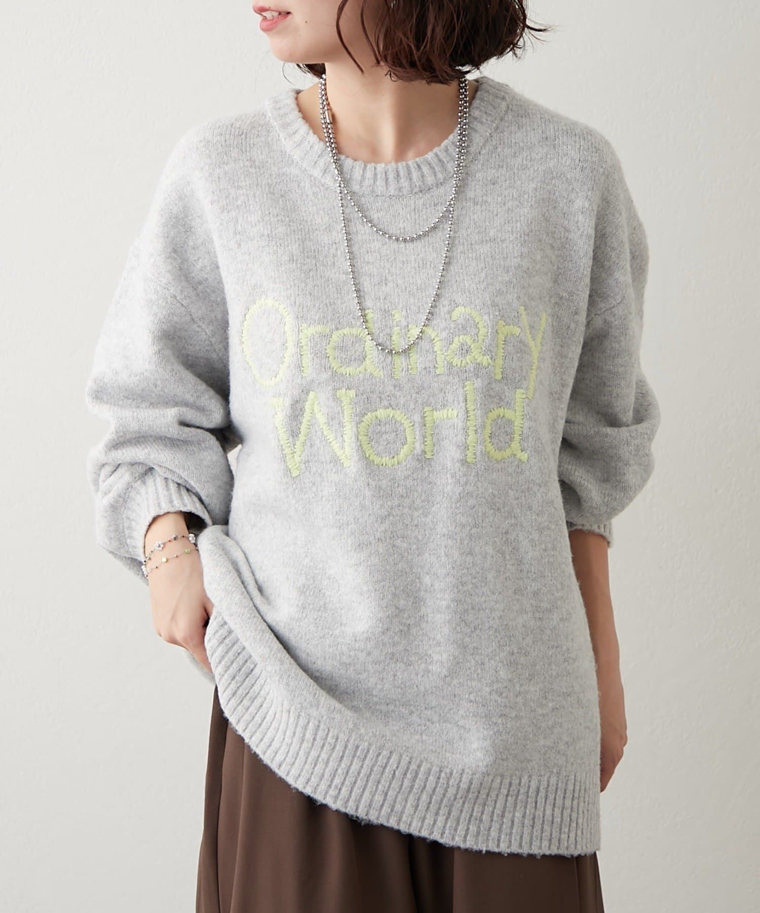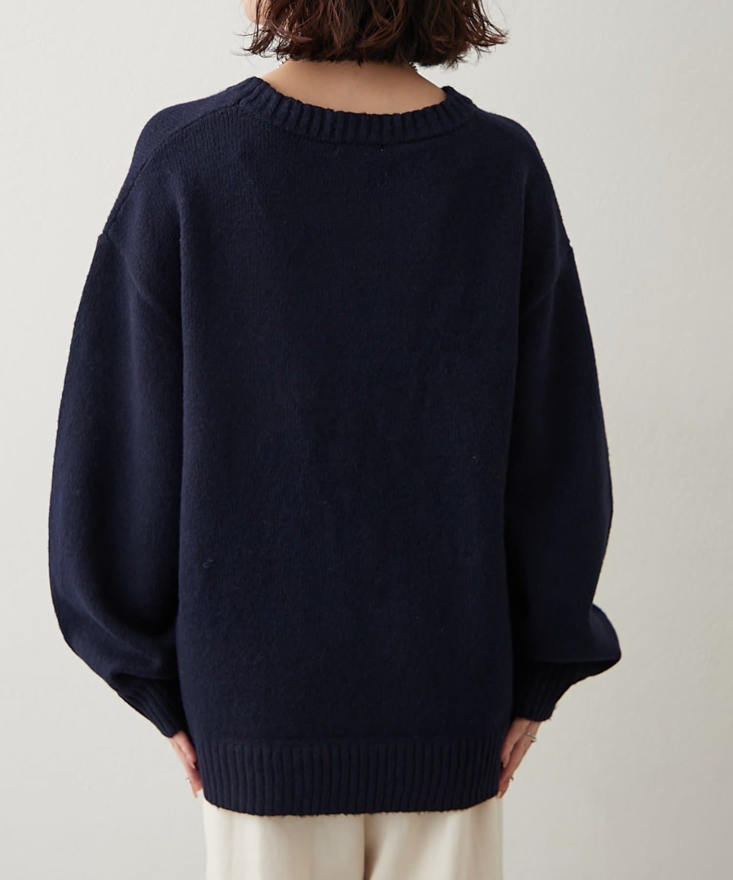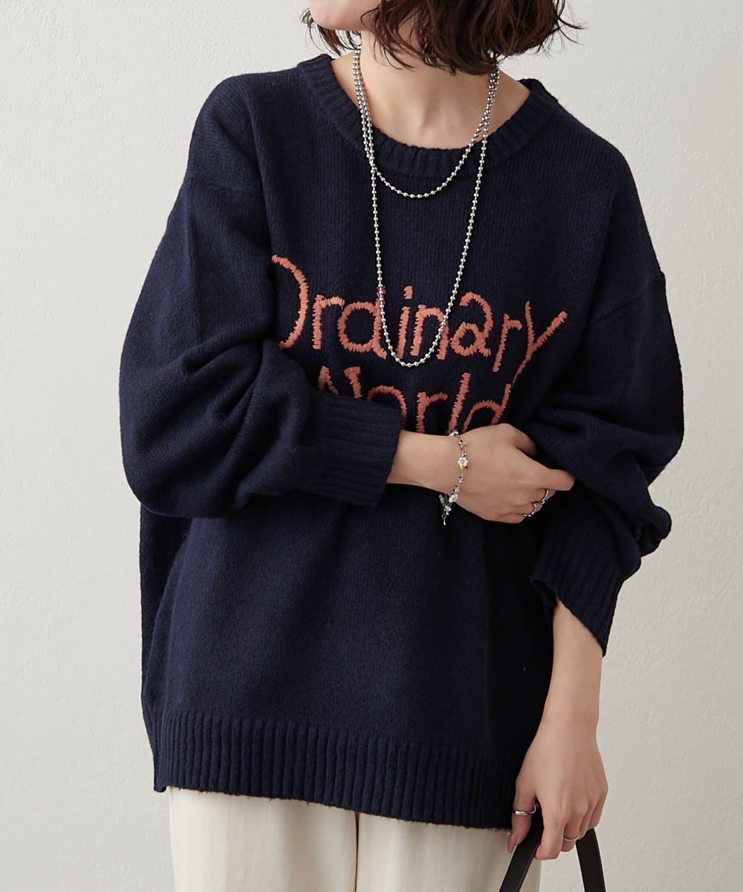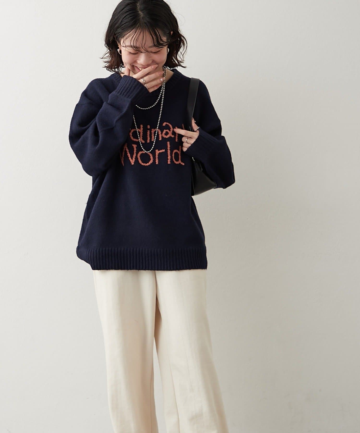 ・配色がおしゃれな刺繍ロゴニットプルオーバー