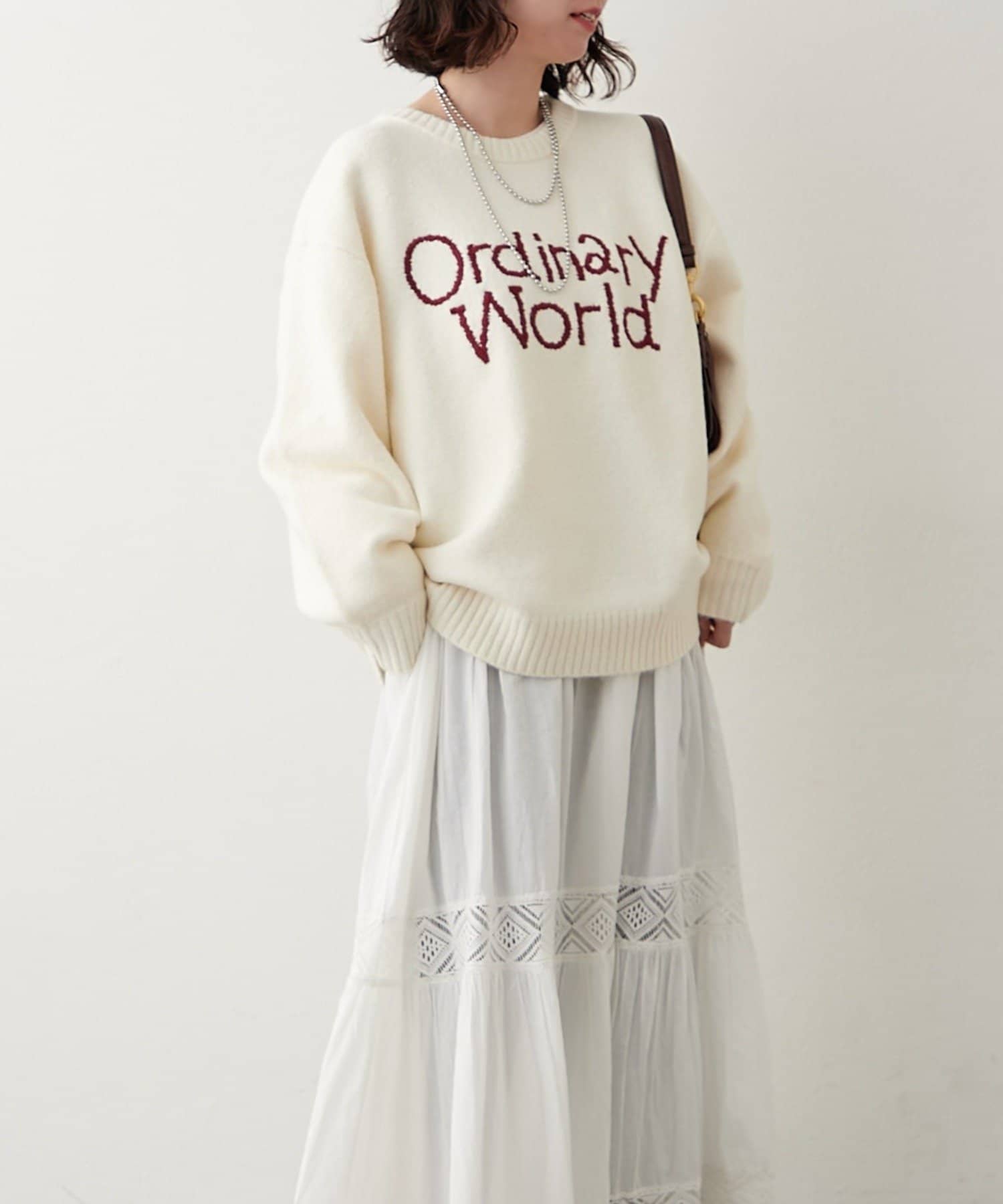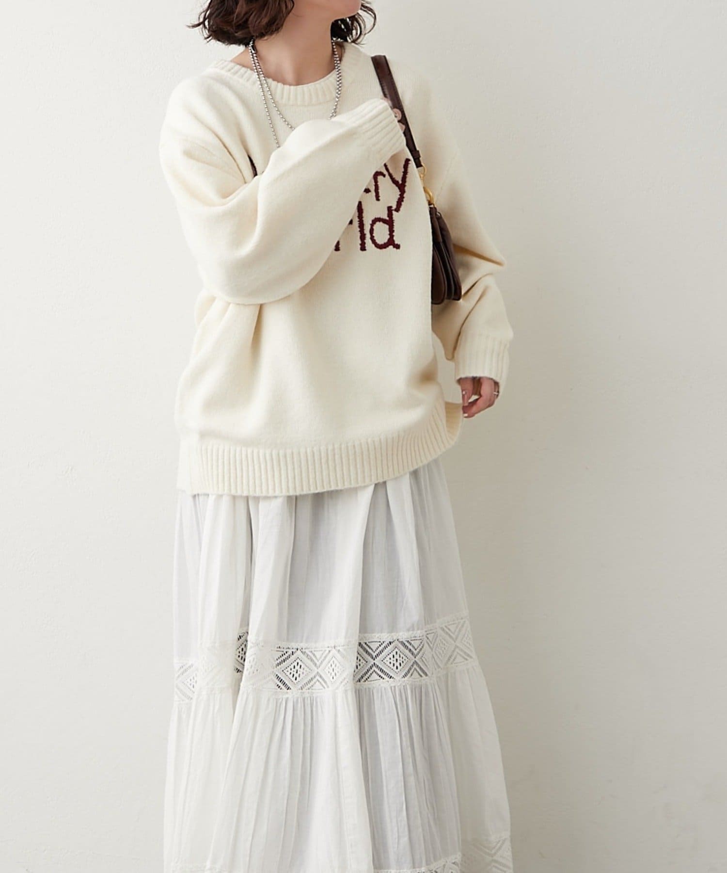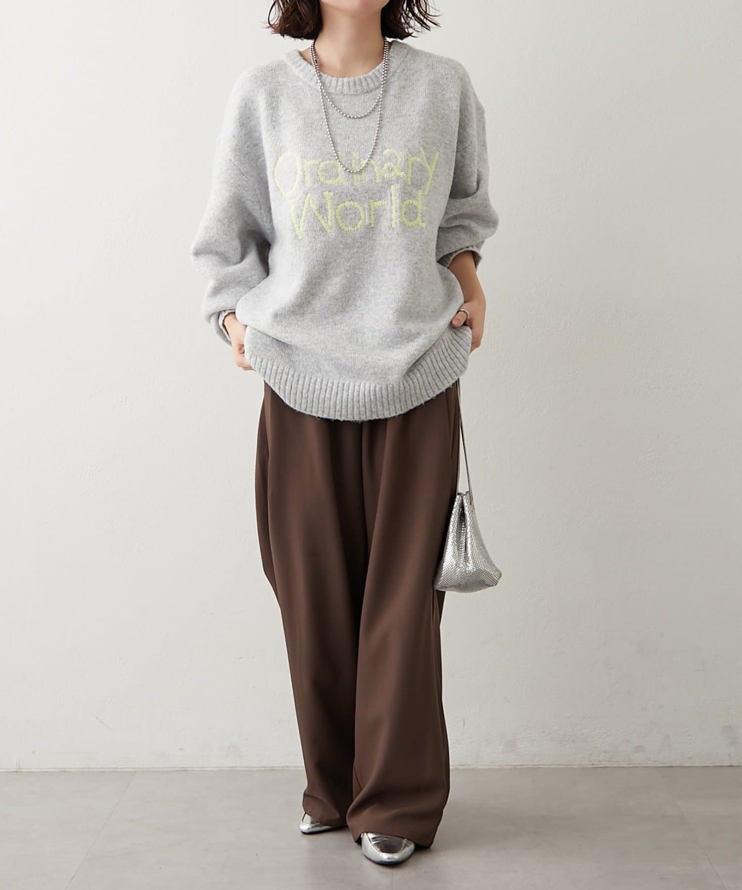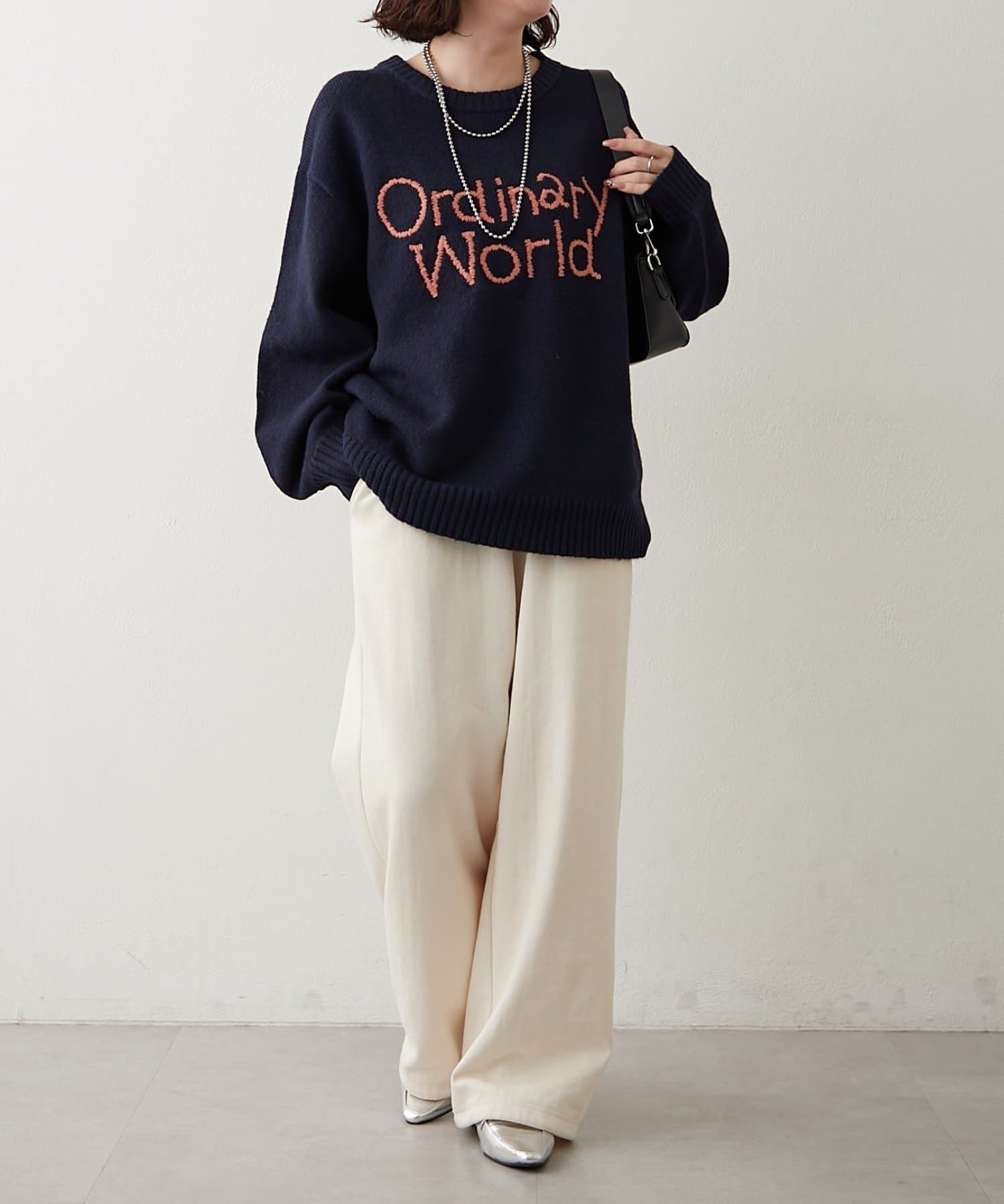 ・配色がおしゃれな刺繍ロゴニットプルオーバー